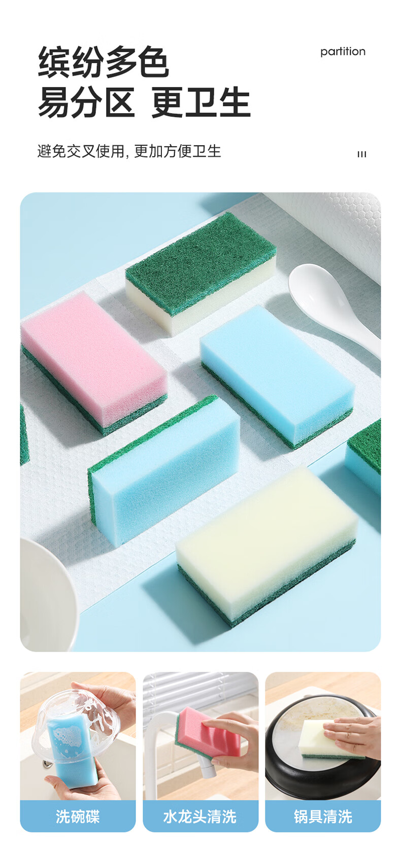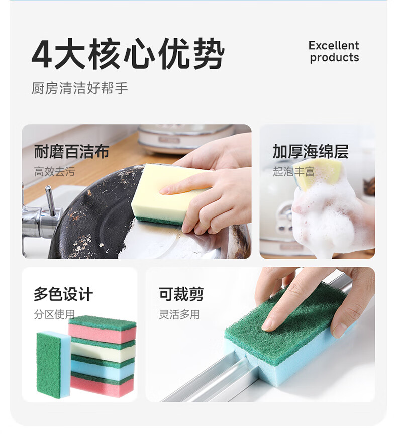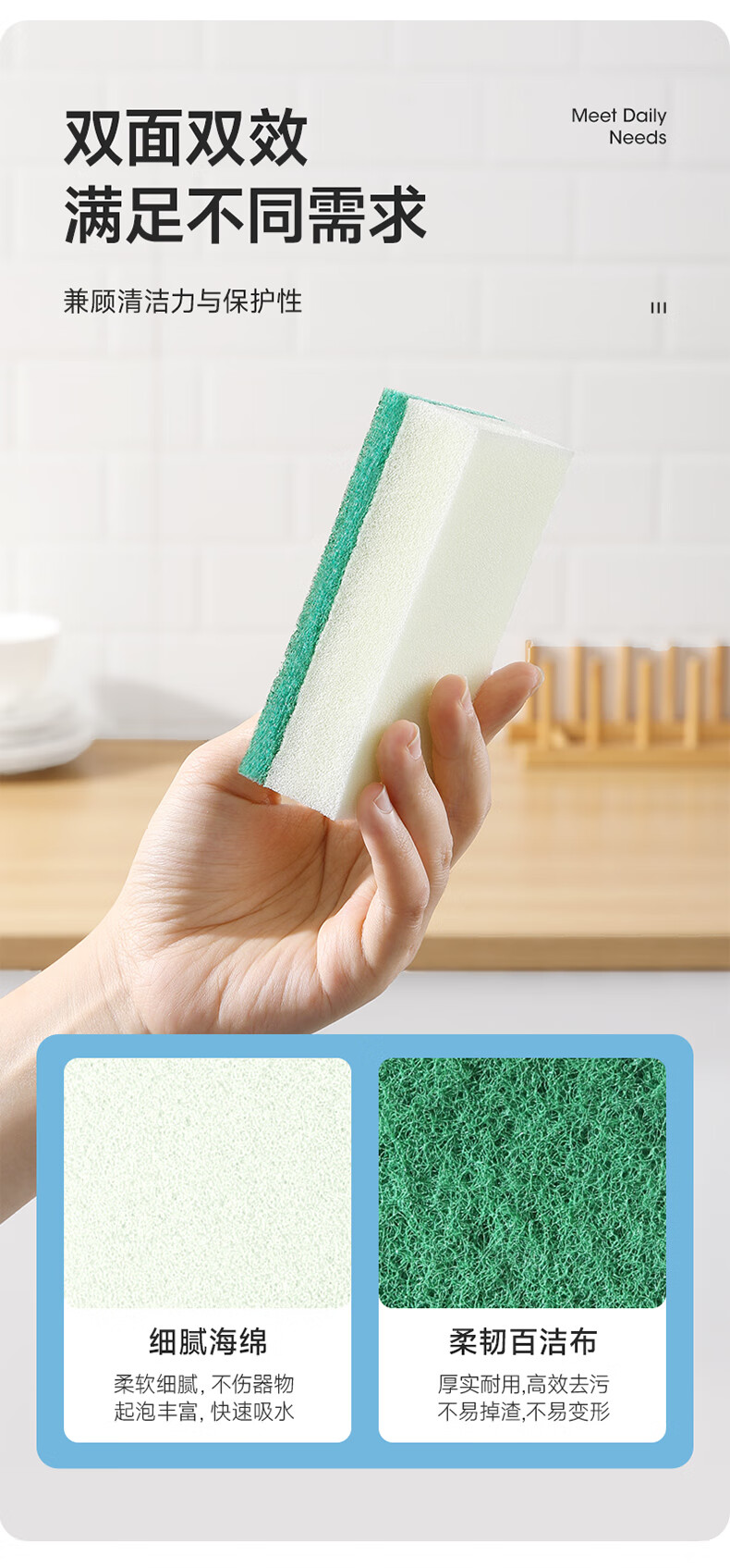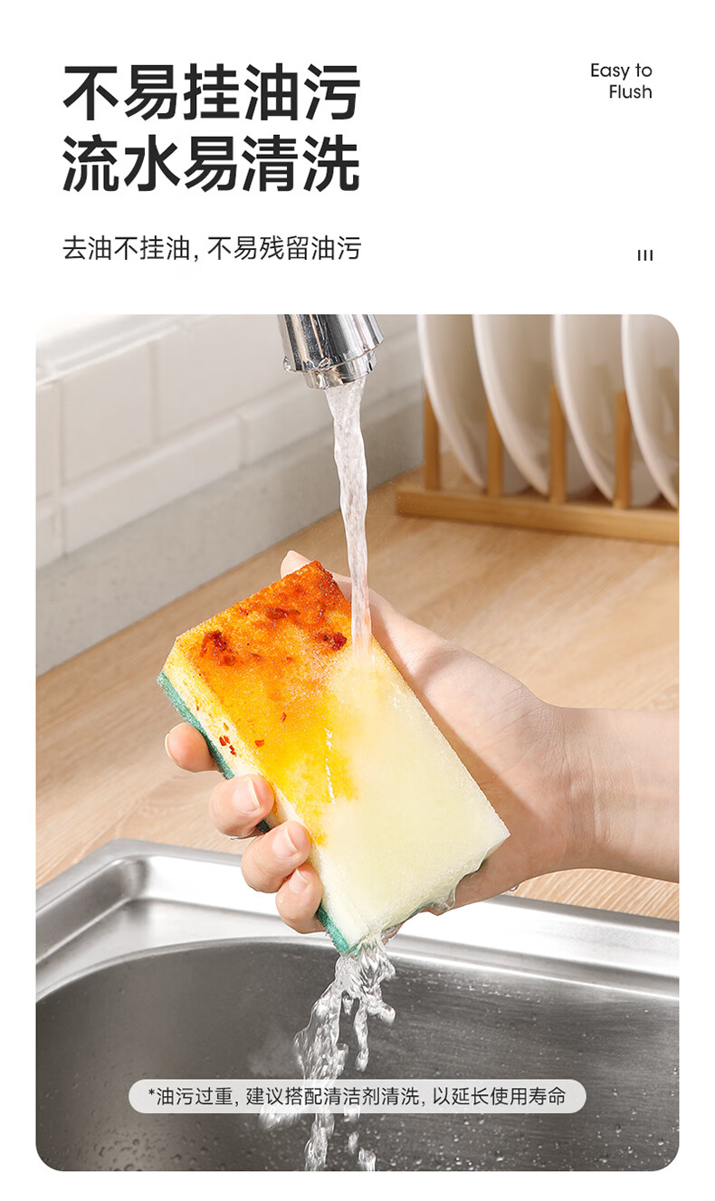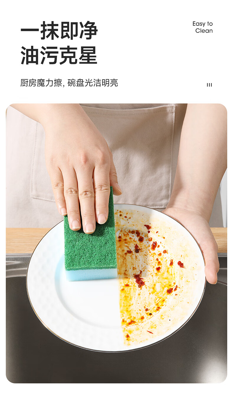 美丽雅 海绵百洁布 双面去油污抹布厨房洗碗海绵擦吸水清洁抹布 5片装
