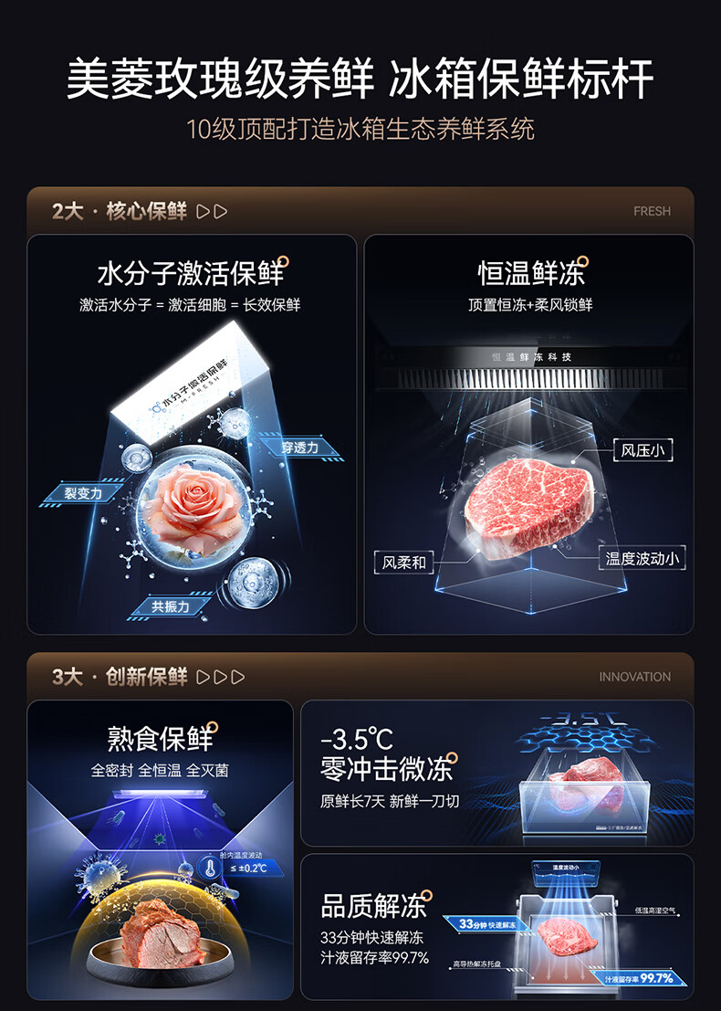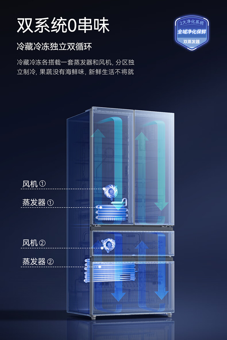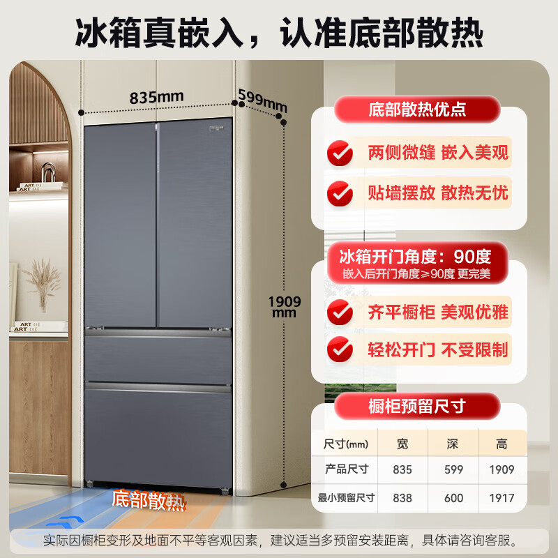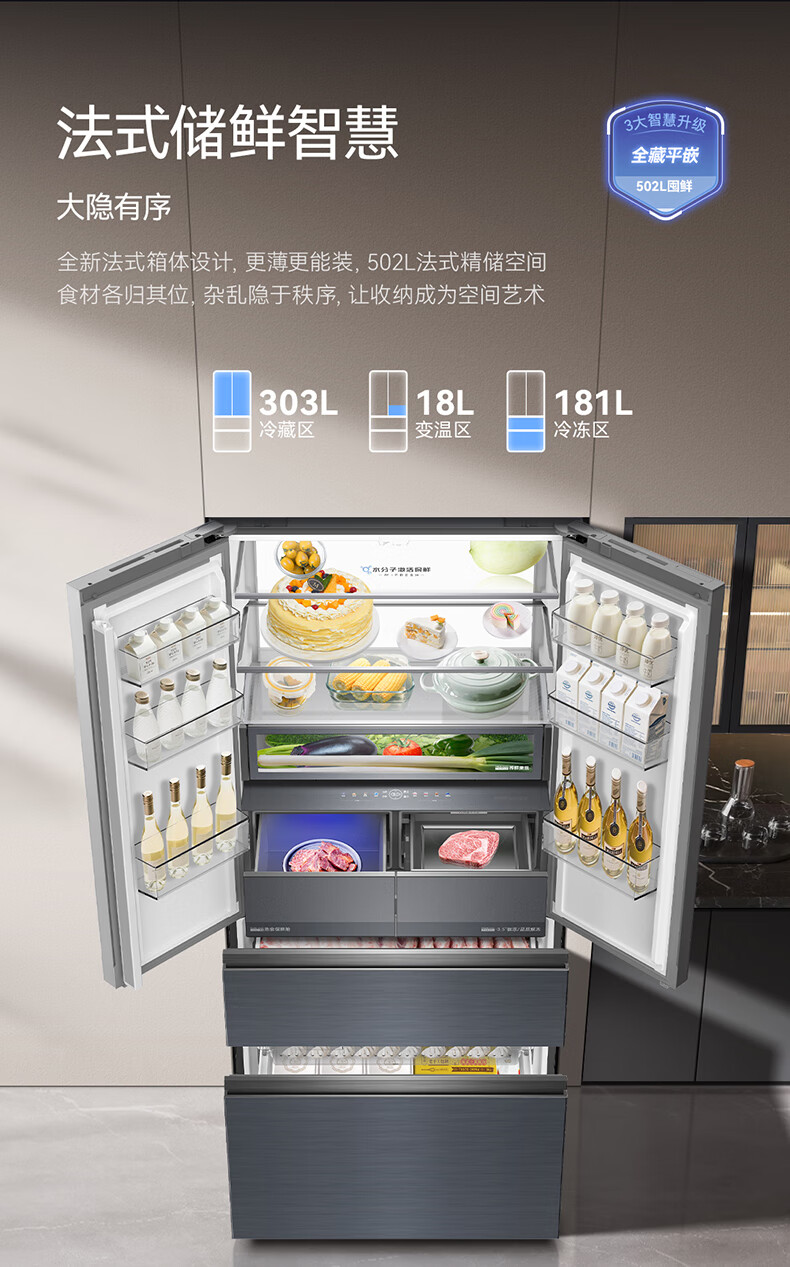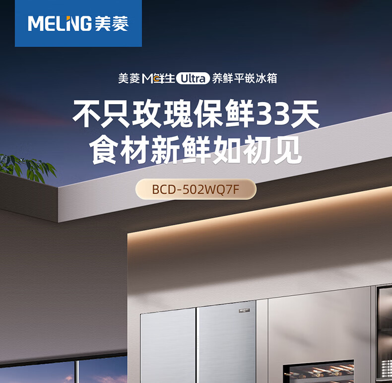 美菱(MeiLing)M鲜生502升法式多门冰箱恒温鲜冻嵌入式双系统底部散热玻璃面板(线下同款)BCD-502WQ7F国家补贴