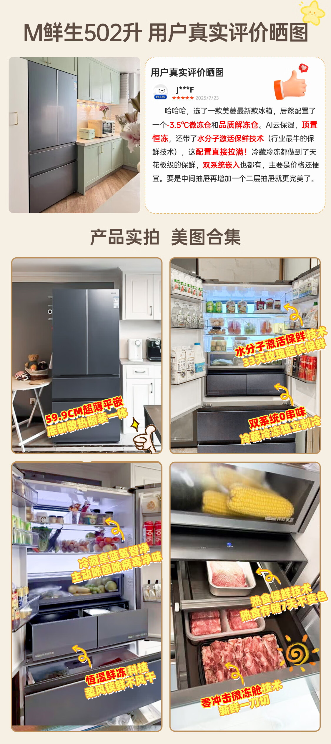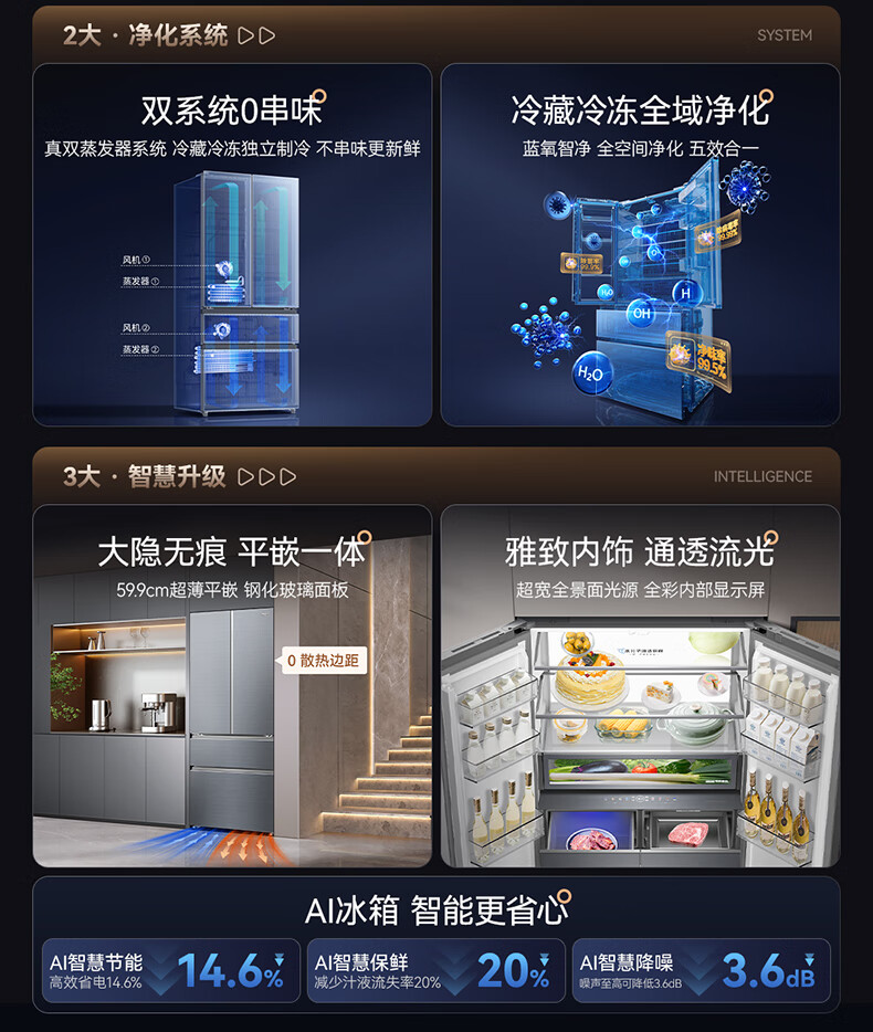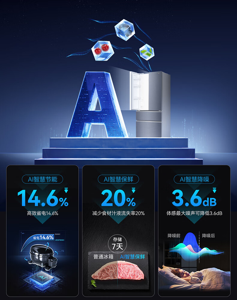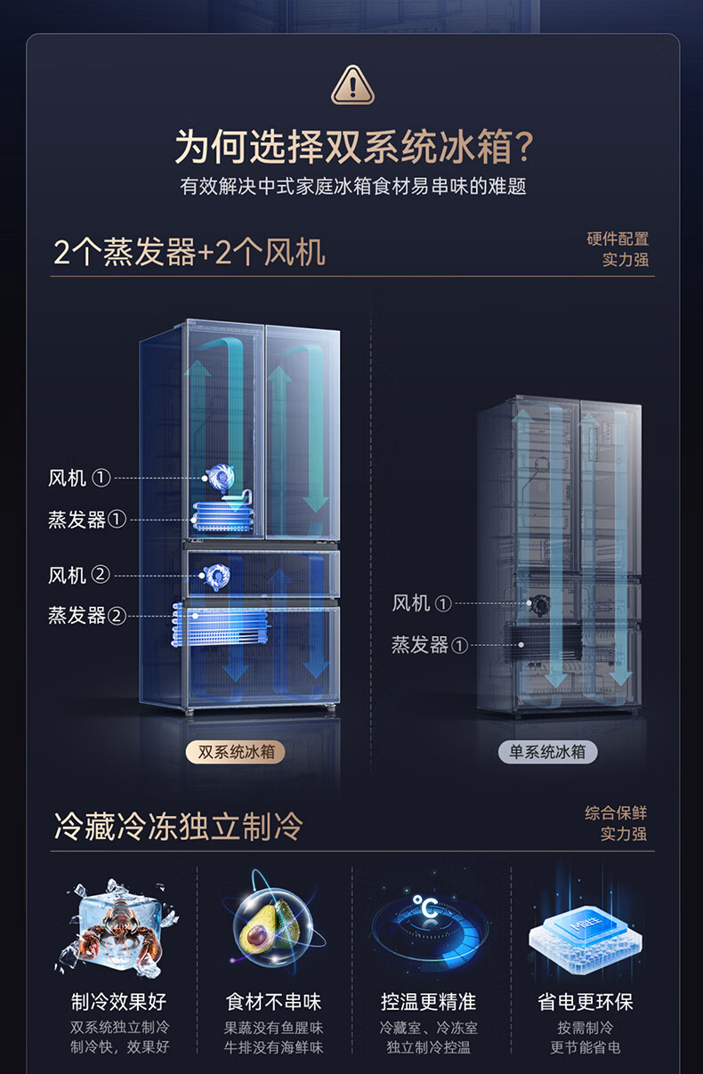 美菱(MeiLing)M鲜生502升法式多门冰箱恒温鲜冻嵌入式双系统底部散热玻璃面板(线下同款)BCD-502WQ7F国家补贴