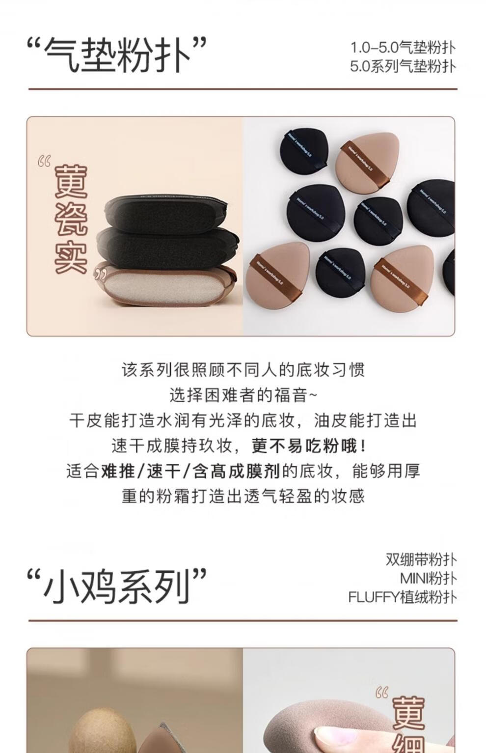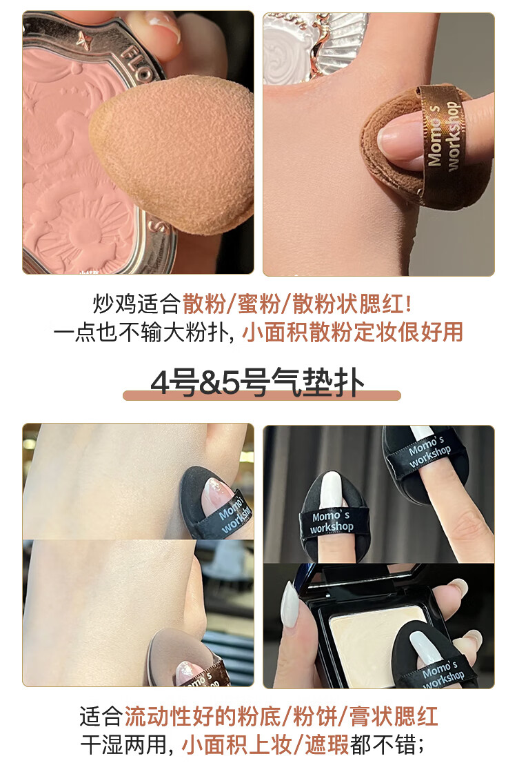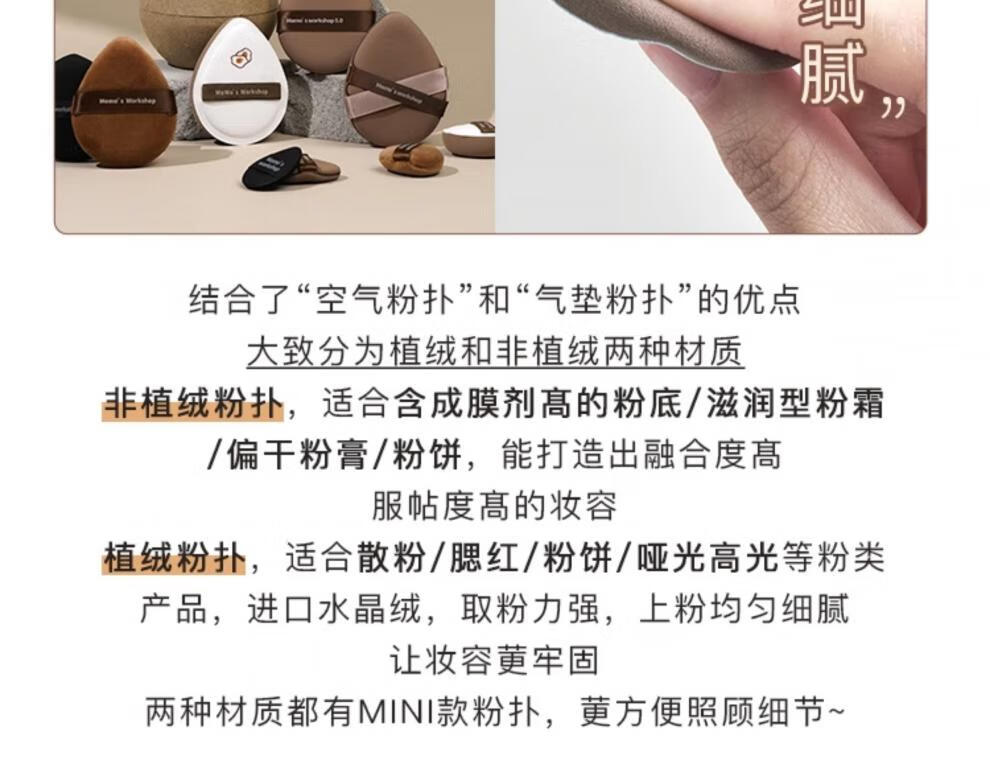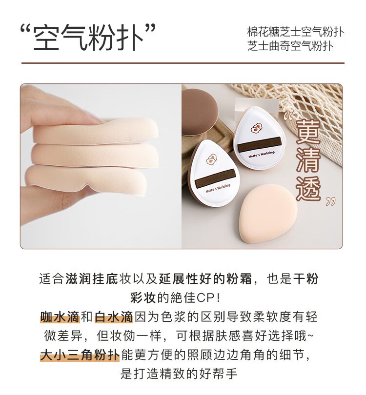 毛吉吉粉扑黑丹宁植绒粉扑一刀切棉花糖散粉粉扑超划算气垫粉扑 短绒散粉扑一黑一棕【装】 2个