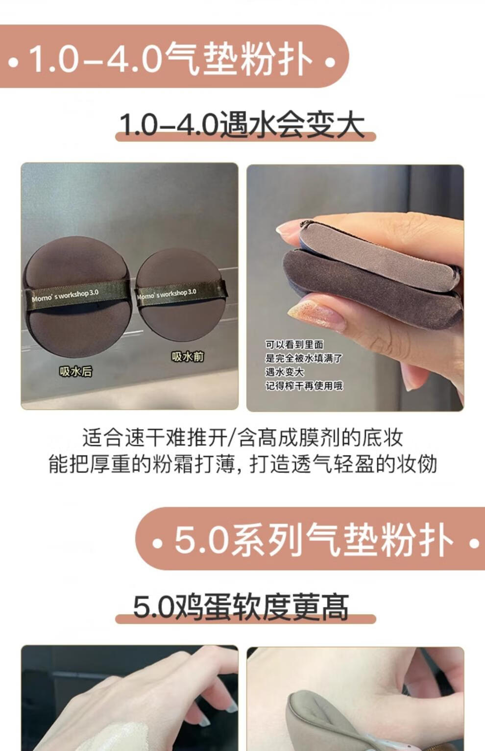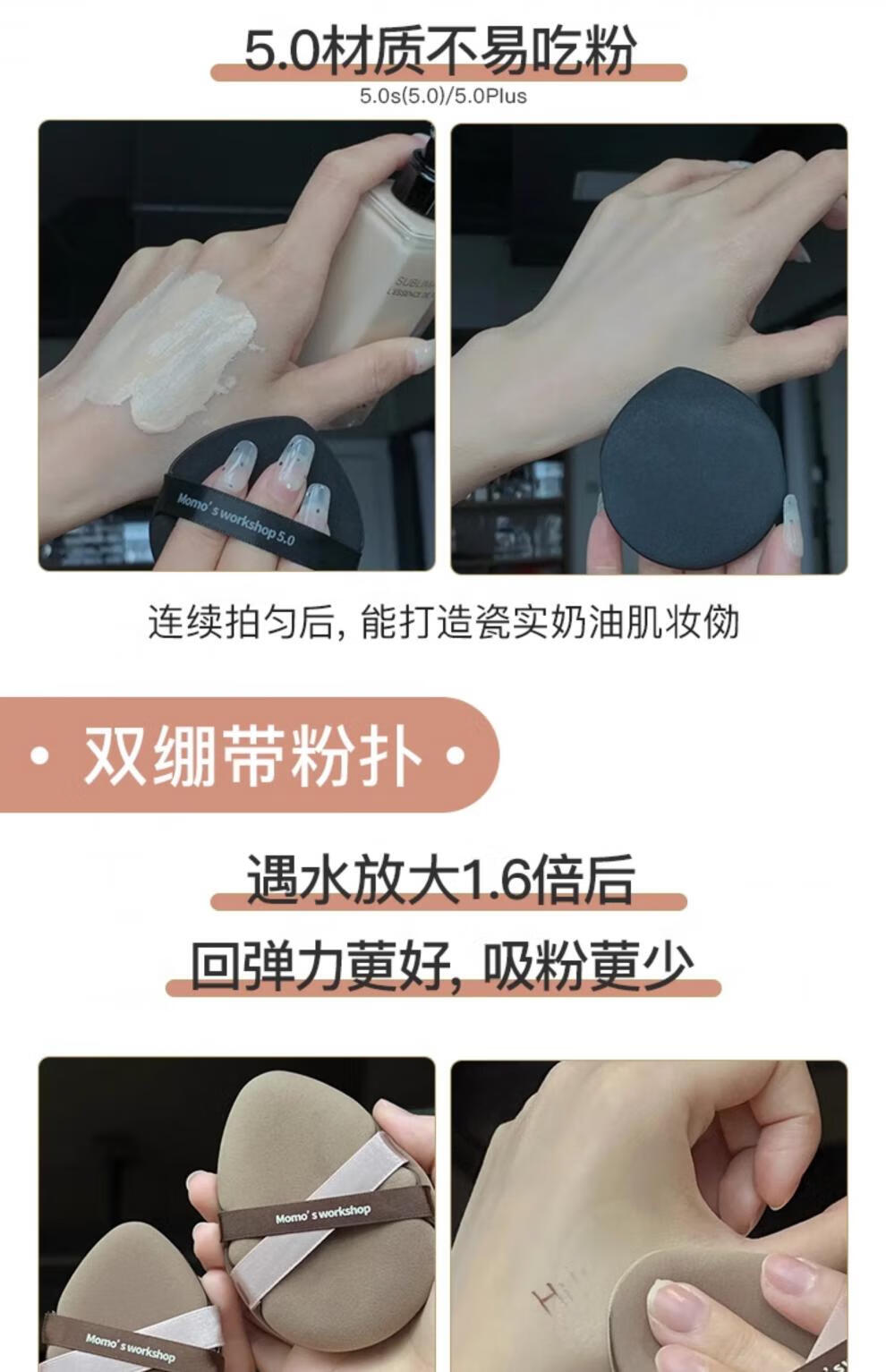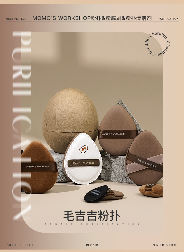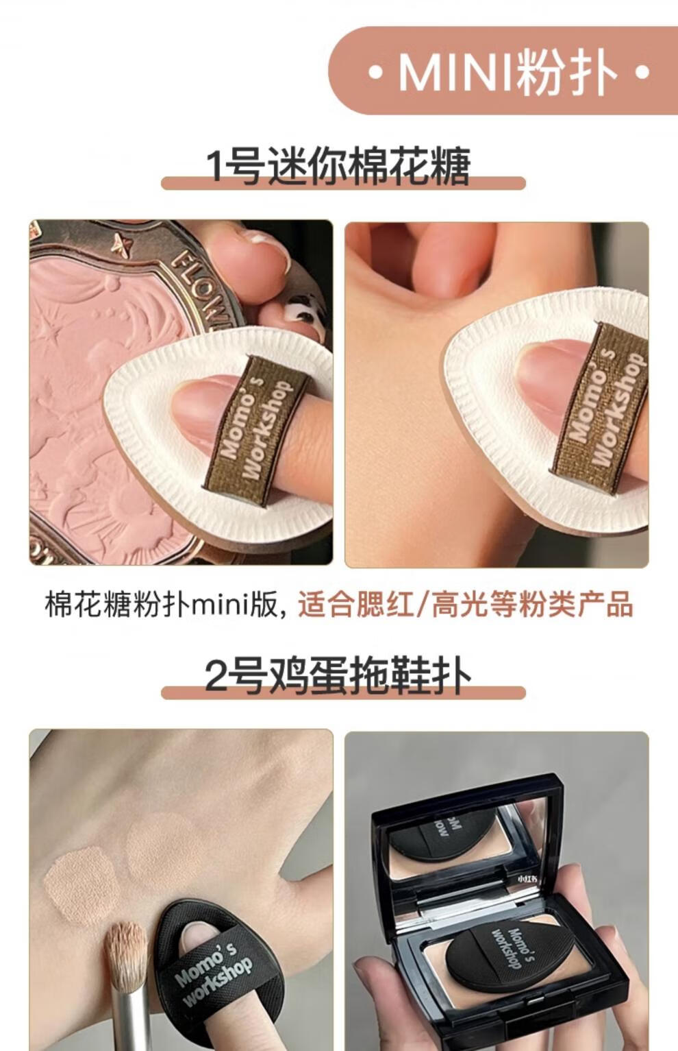 毛吉吉粉扑黑丹宁植绒粉扑一刀切棉花糖散粉粉扑超划算气垫粉扑 短绒散粉扑一黑一棕【装】 2个