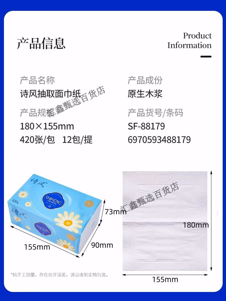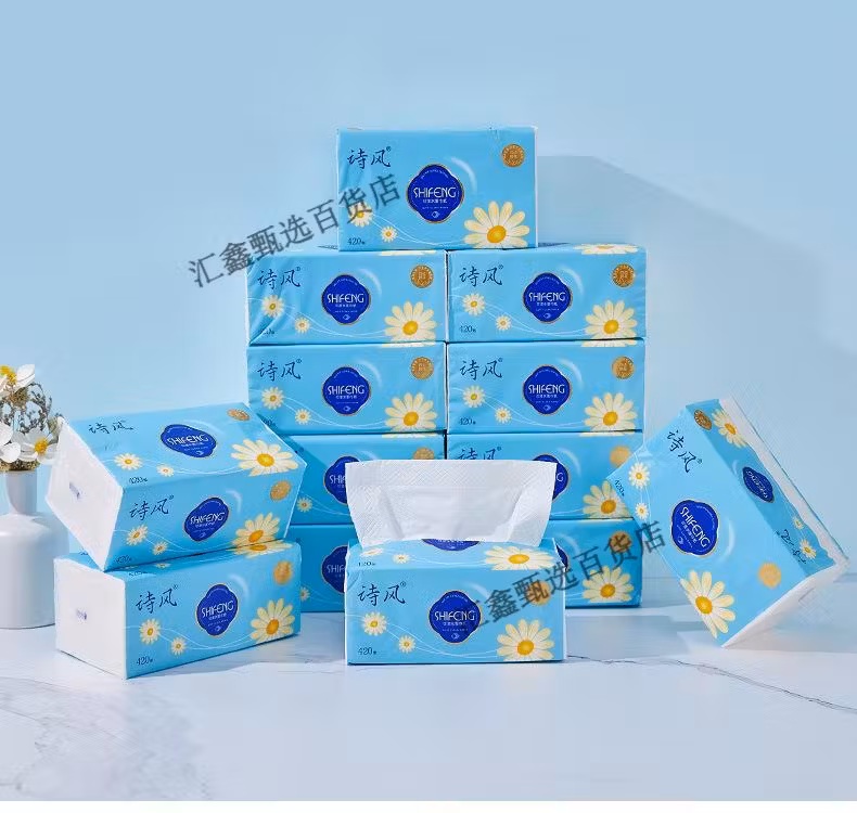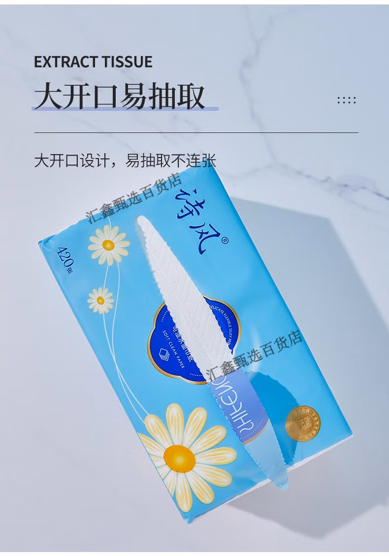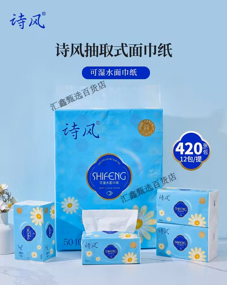 诗风抽纸纸巾整箱实惠装420张12包可湿水抽取式面巾纸加厚家用5层 默