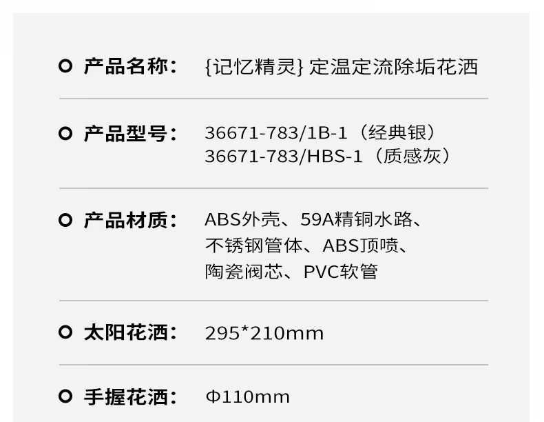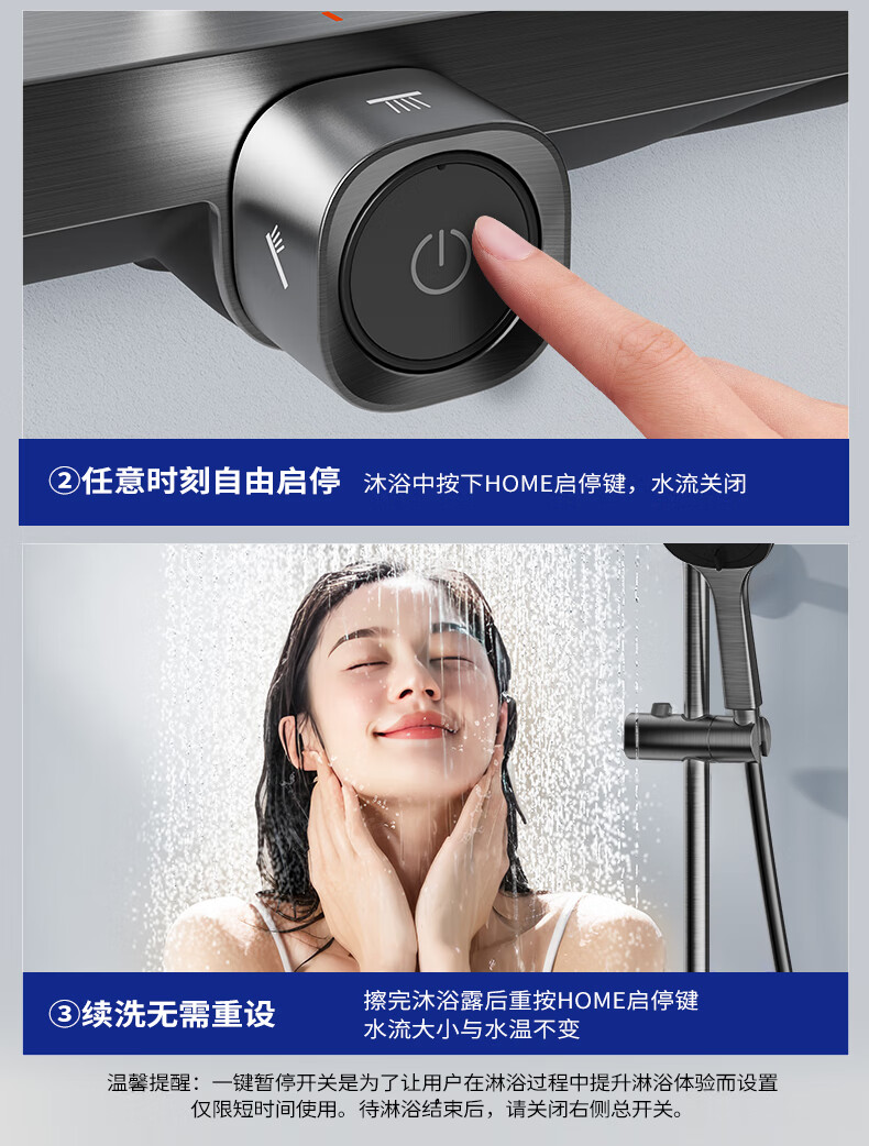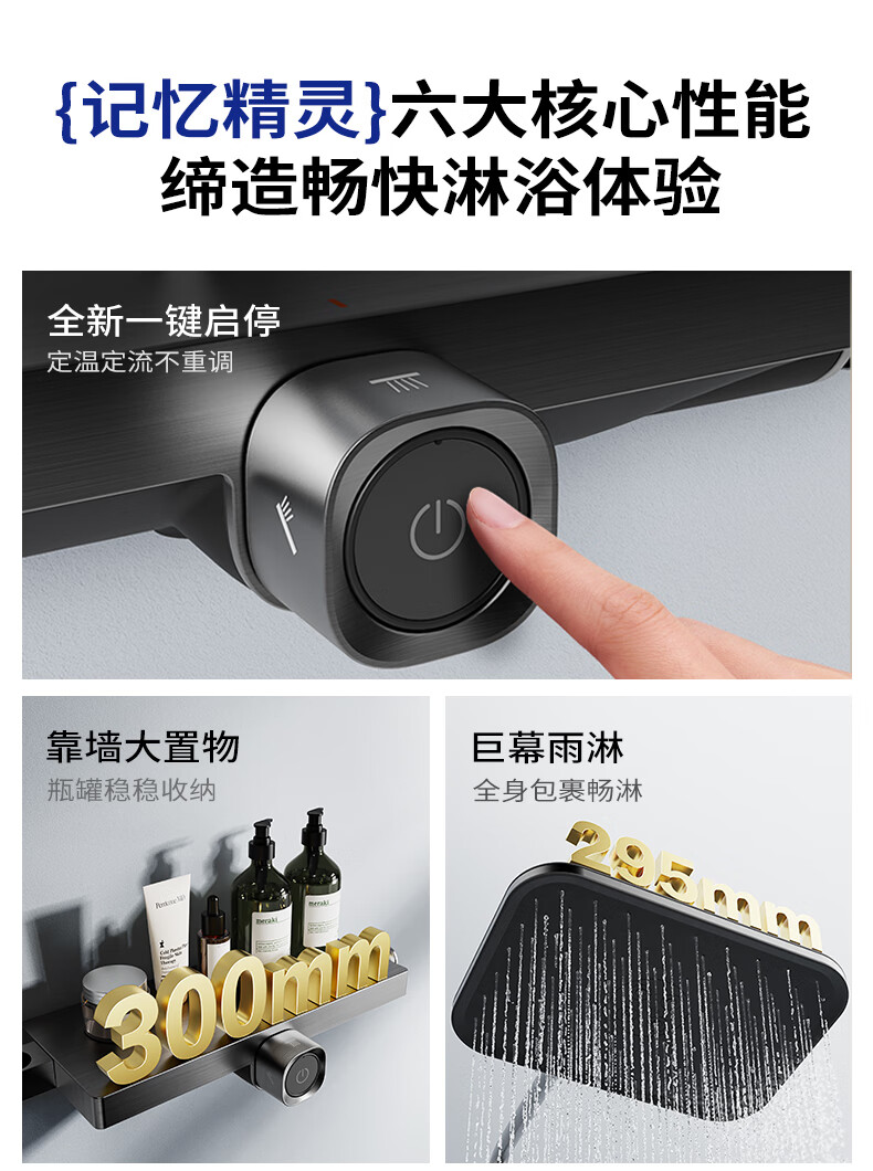 九牧(JOMOO)花洒一键启停锁温锁流自洁顶喷记忆精灵淋浴器36671-783/HBS-1