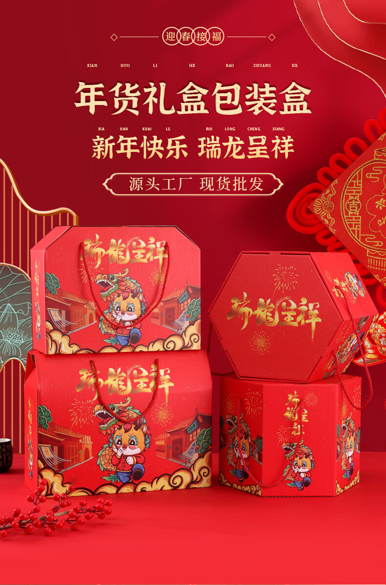 2026新款礼盒现货特产零食干果包装盒坚果熟食大礼包空盒批发 瑞龙呈祥平顶盒;1个