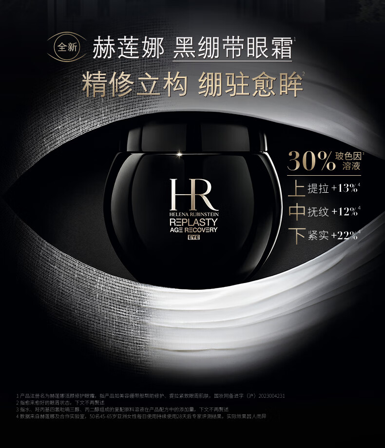 赫莲娜HR黑绷带50+眼霜+小露珠面霜精华水护肤品套装礼盒新年礼物送女友
