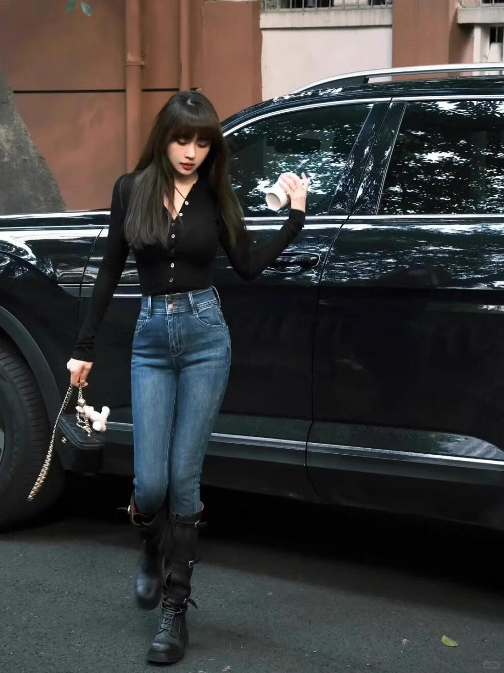 MODX香港女装美式复古高腰牛仔裤女2025秋冬显瘦紧身弹力铅笔裤 覆古蓝【长裤】单裤 25 (建议75-85斤)