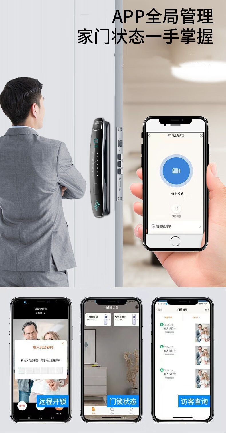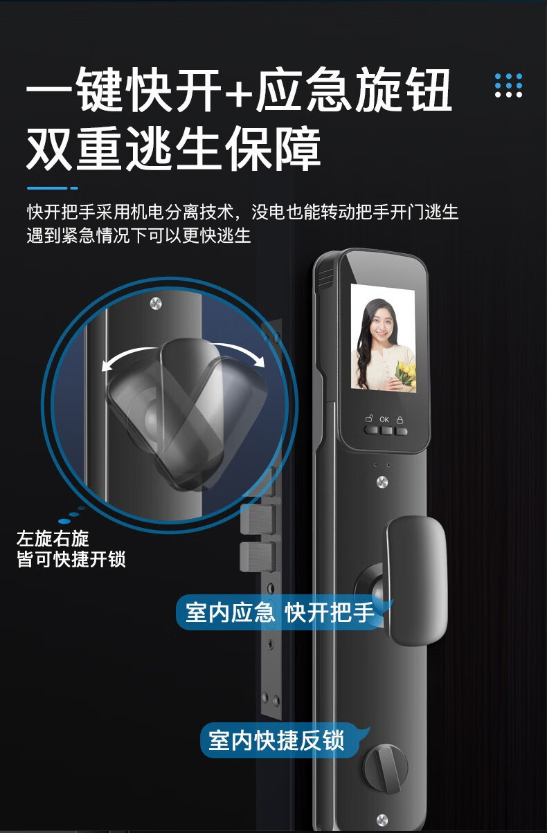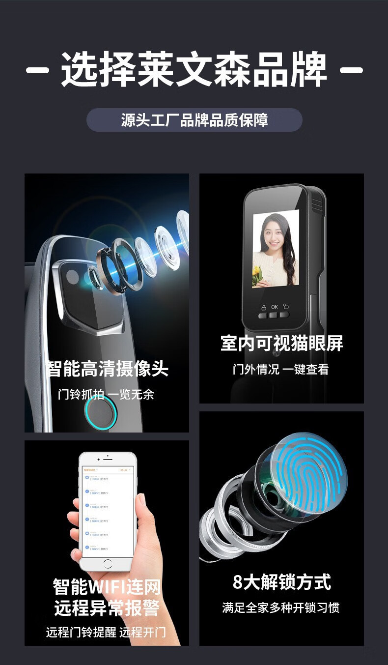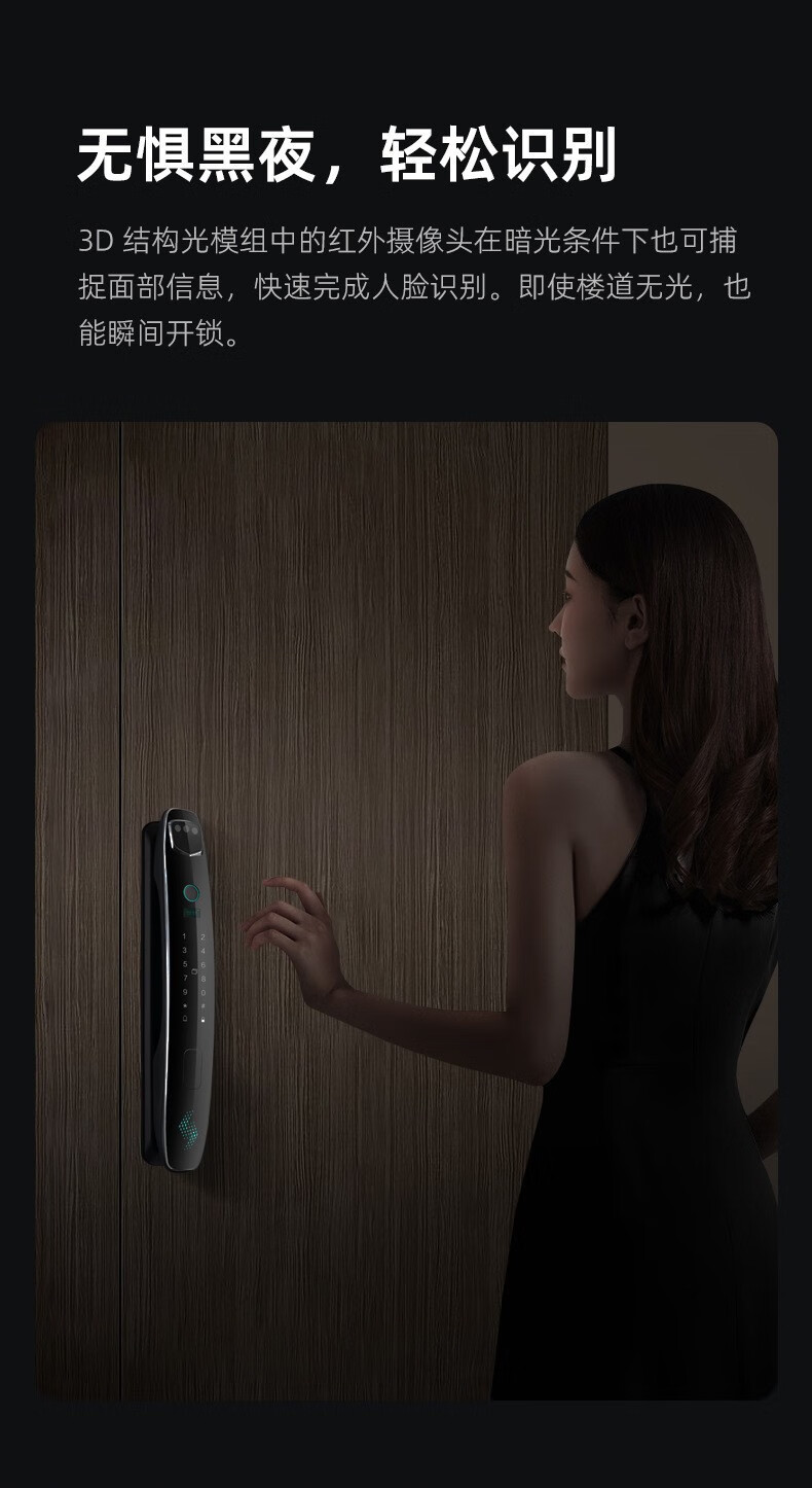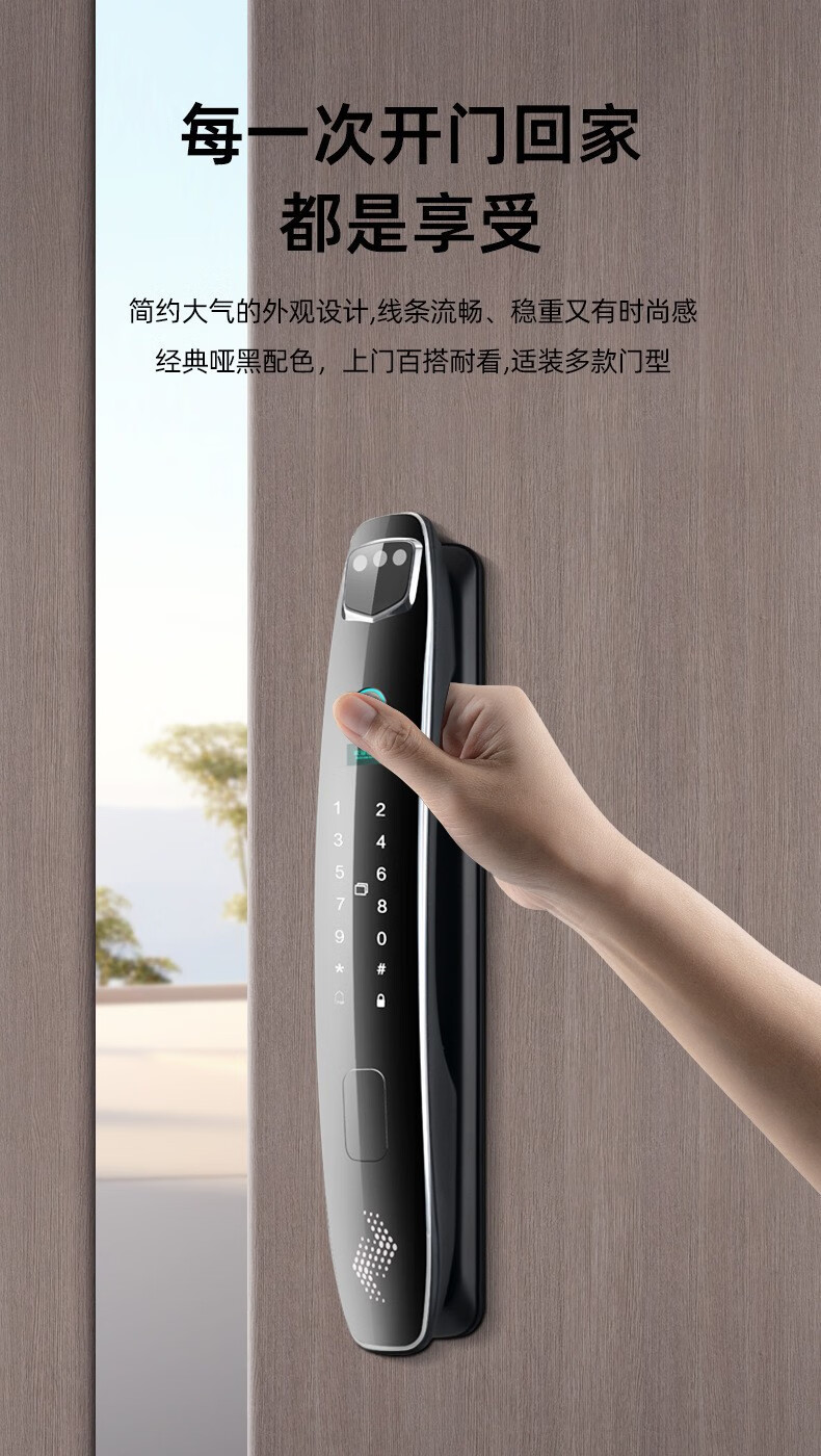 耐久3D人脸识别指纹锁全自动密码锁带钥匙远程密码智能门锁猫眼 CS7单机款