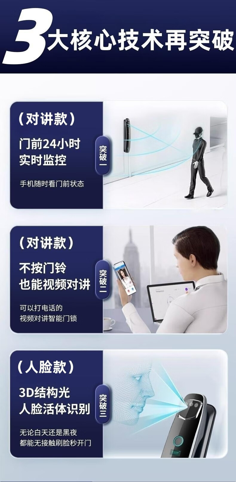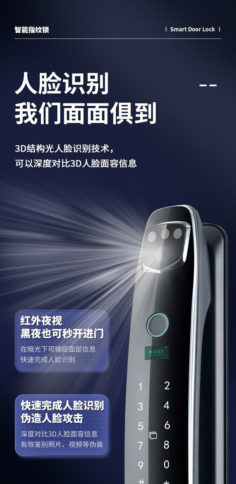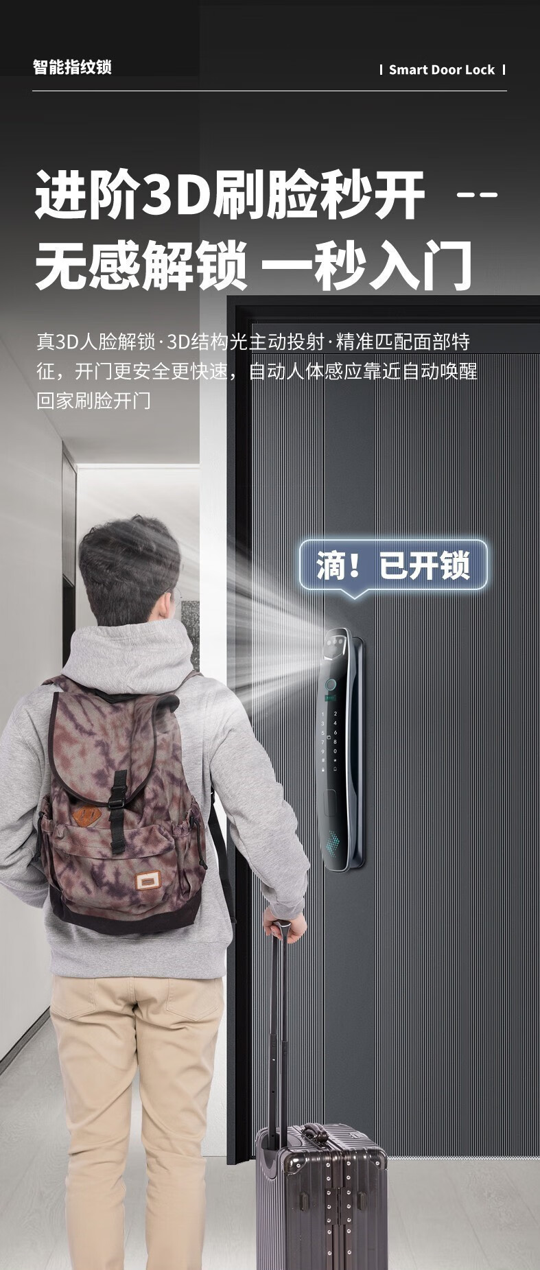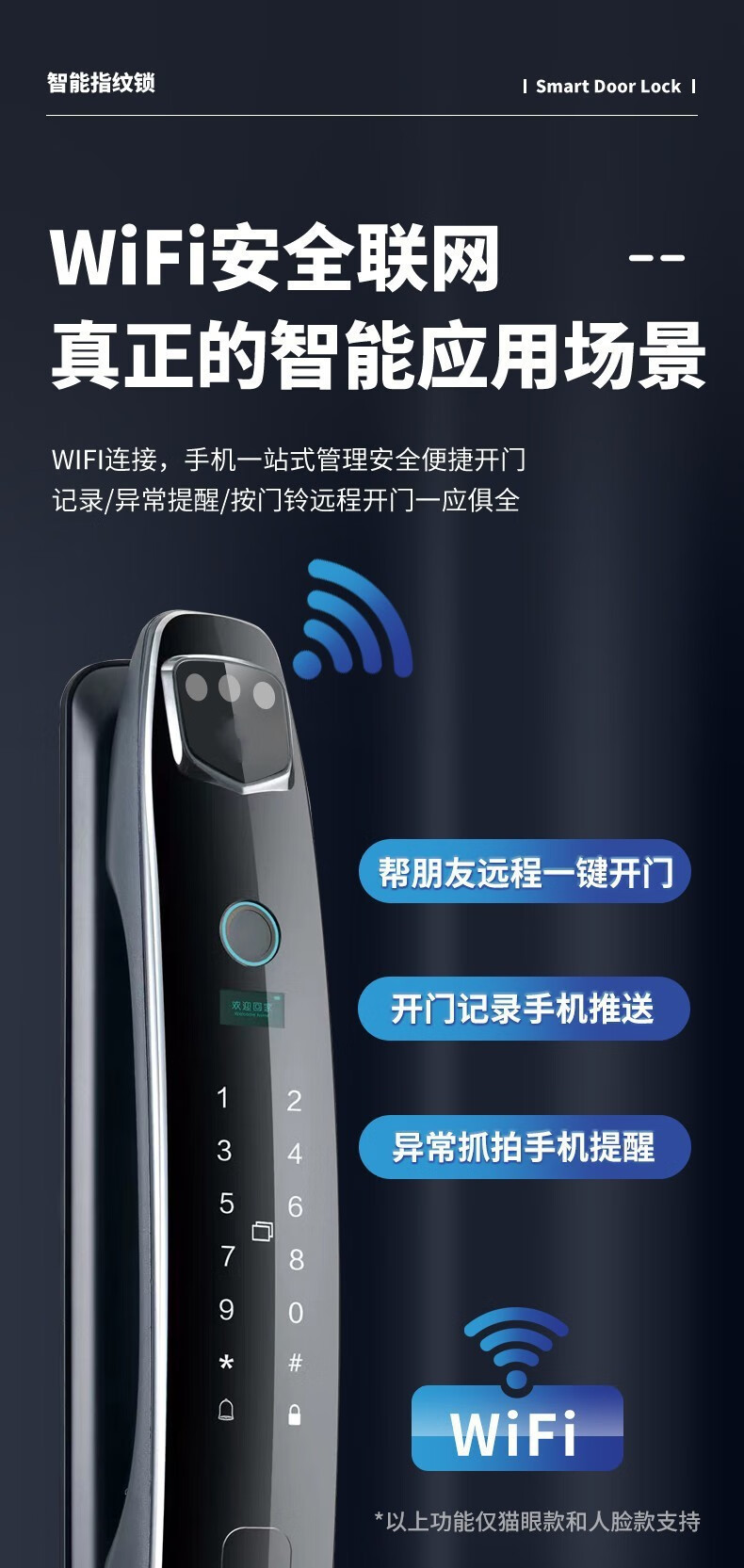 耐久3D人脸识别指纹锁全自动密码锁带钥匙远程密码智能门锁猫眼 CS7单机款