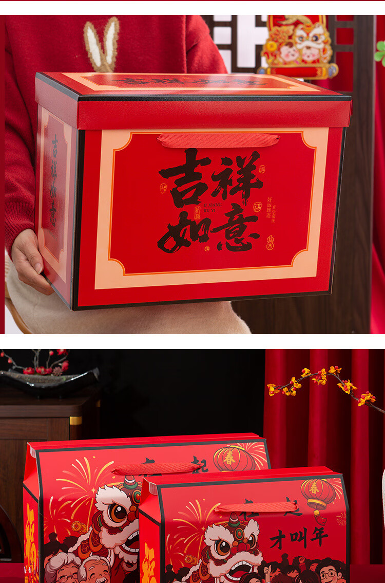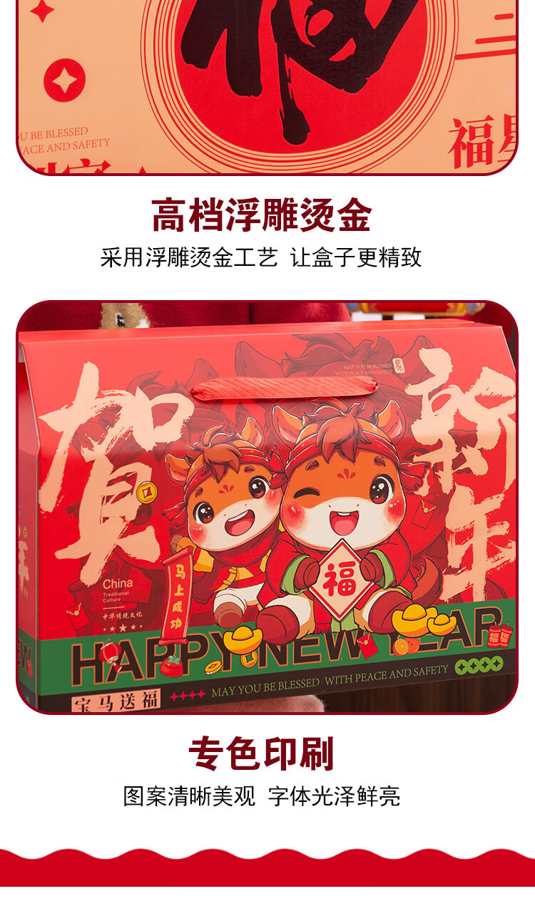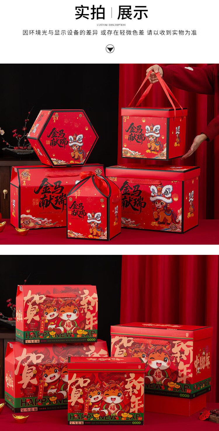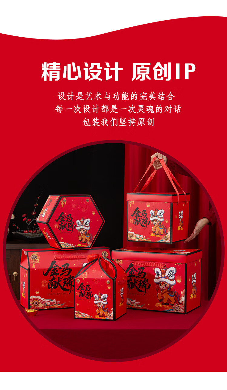 桔梗缘2026马年国潮年货礼盒包装盒空盒子新年熟食土特产外包装手提礼盒 【手提盒大号】金马献瑞 45*18*29cm 空盒 1个