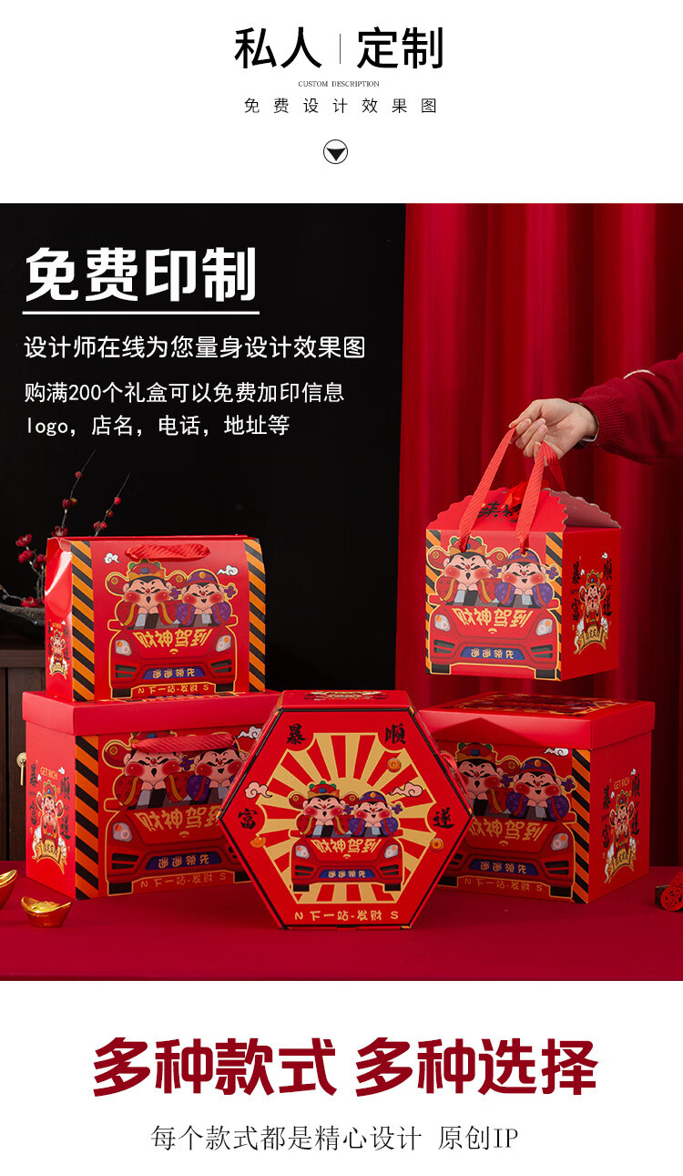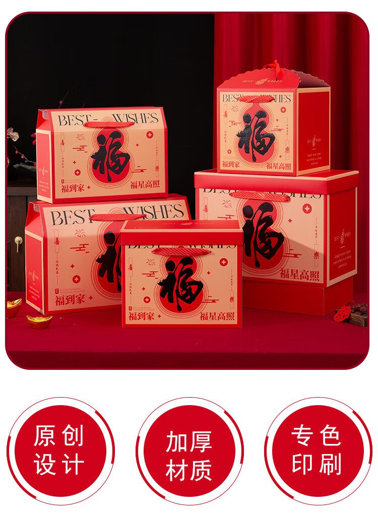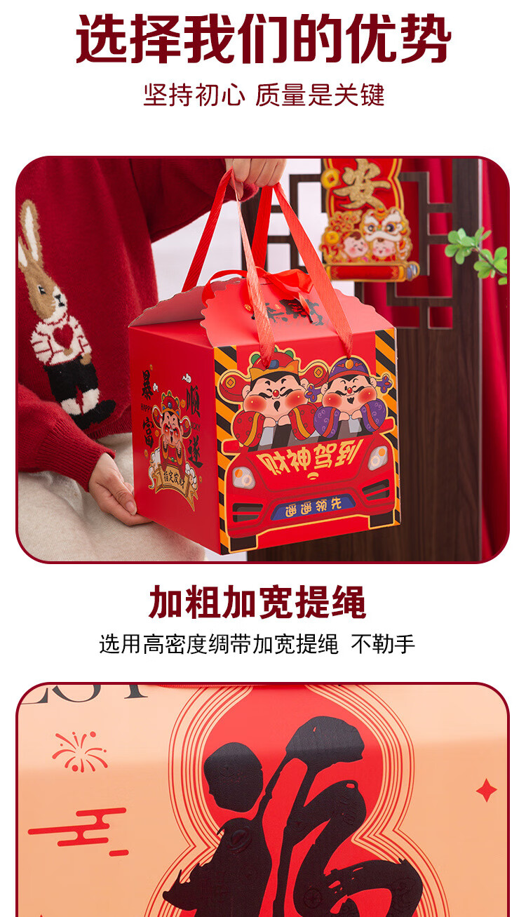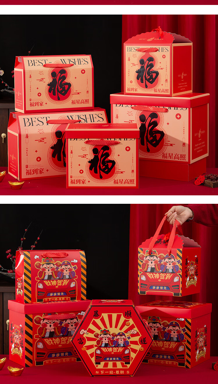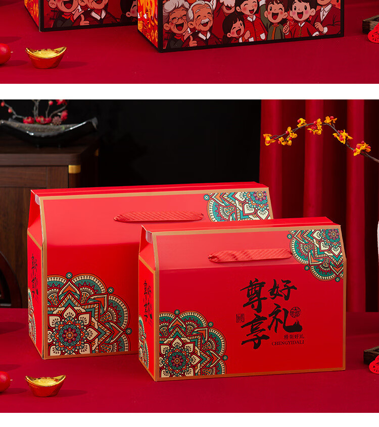 桔梗缘2026马年国潮年货礼盒包装盒空盒子新年熟食土特产外包装手提礼盒 【手提盒大号】金马献瑞 45*18*29cm 空盒 1个
