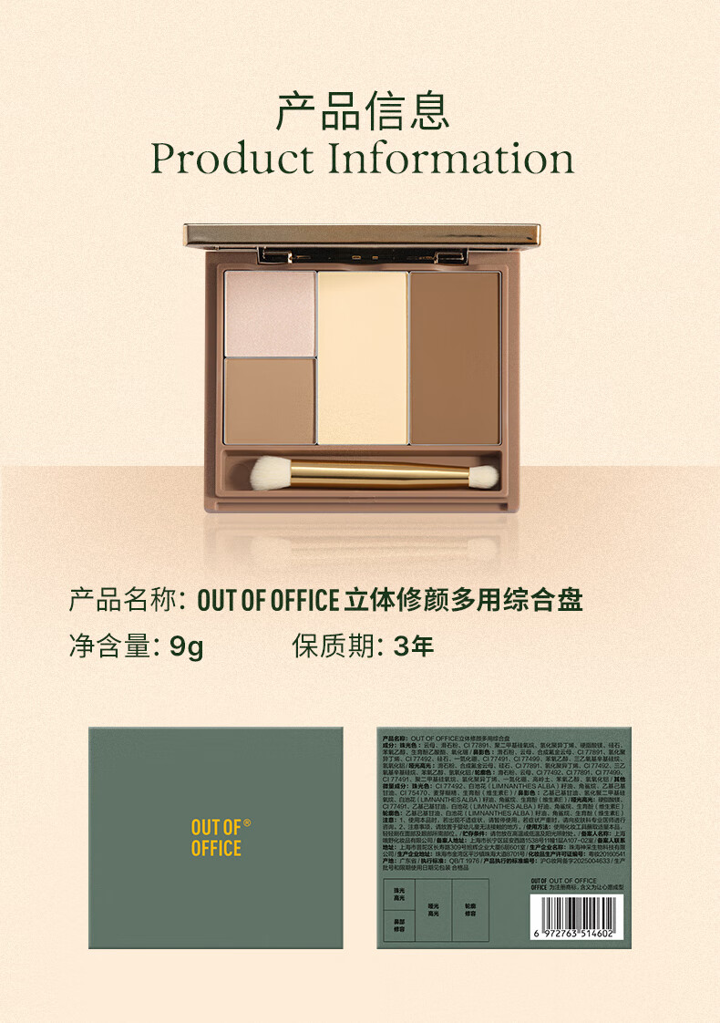 OUT-OF-OFFICE 立体修容盘四色修容提亮高光一体盘鼻侧阴影OOO修容盘新年礼物