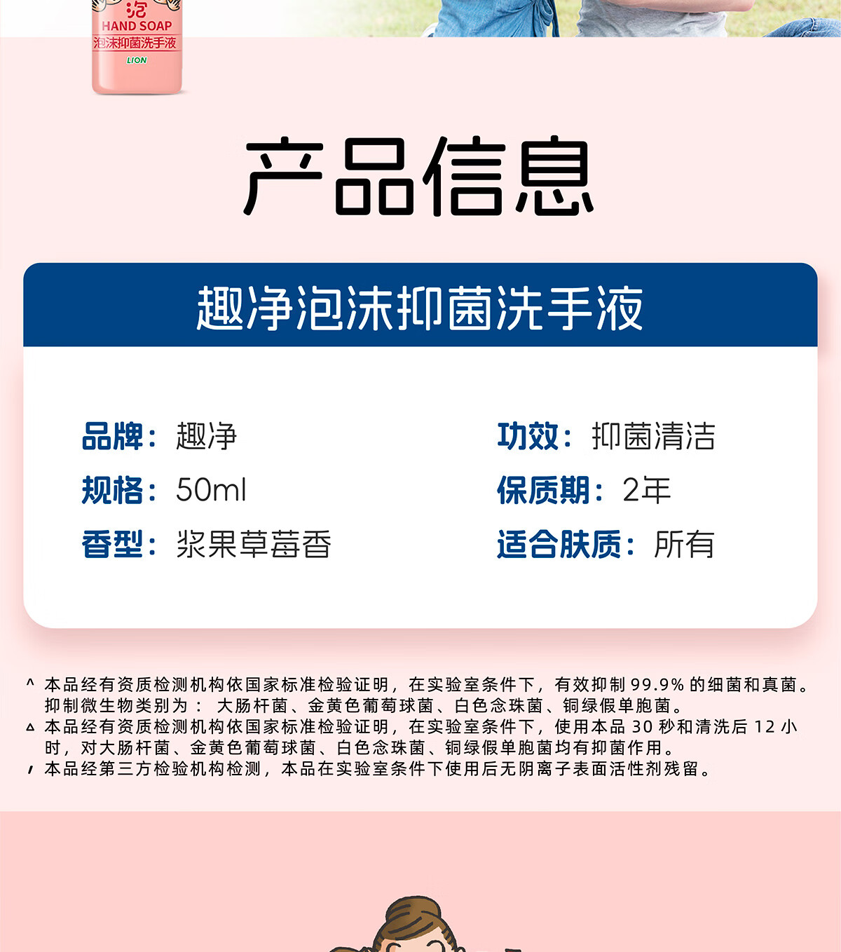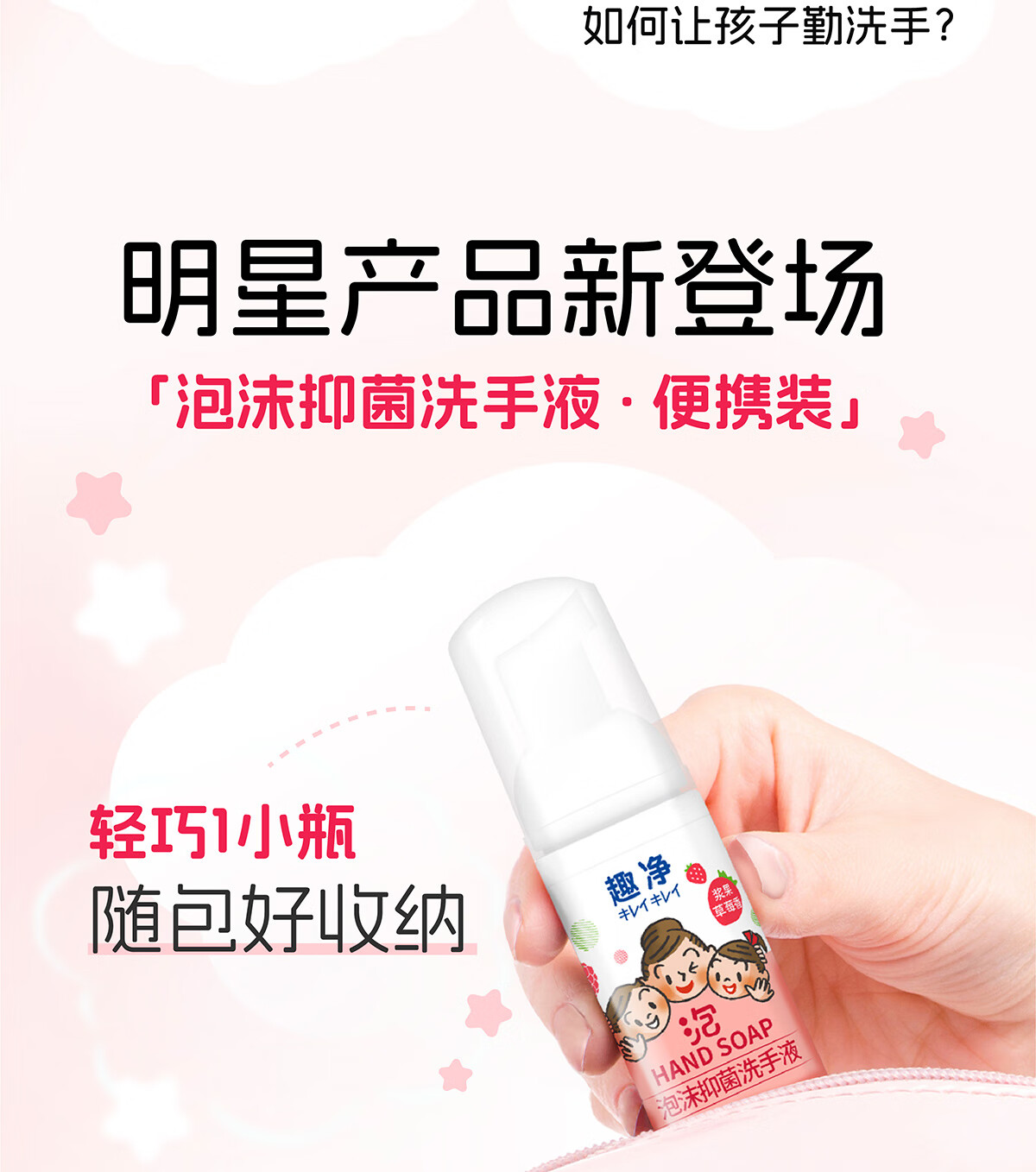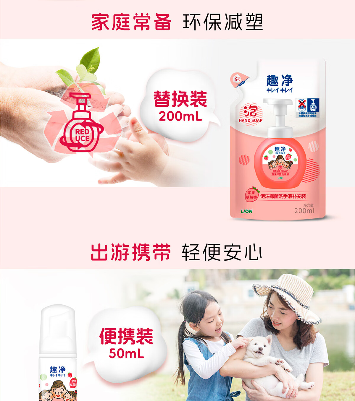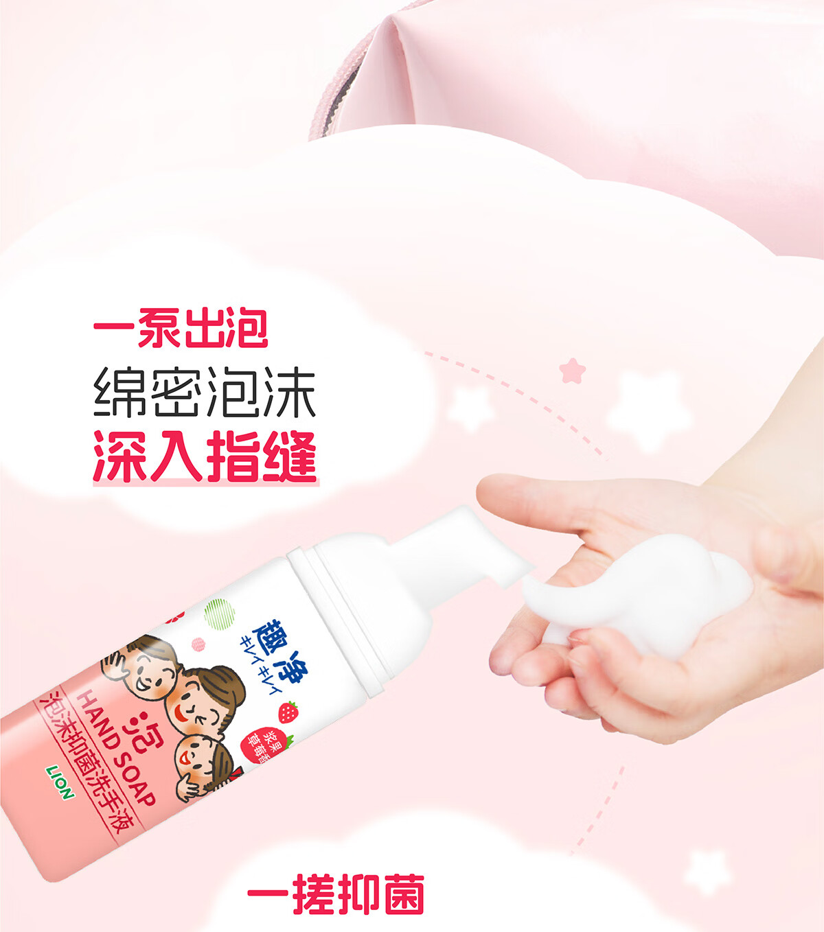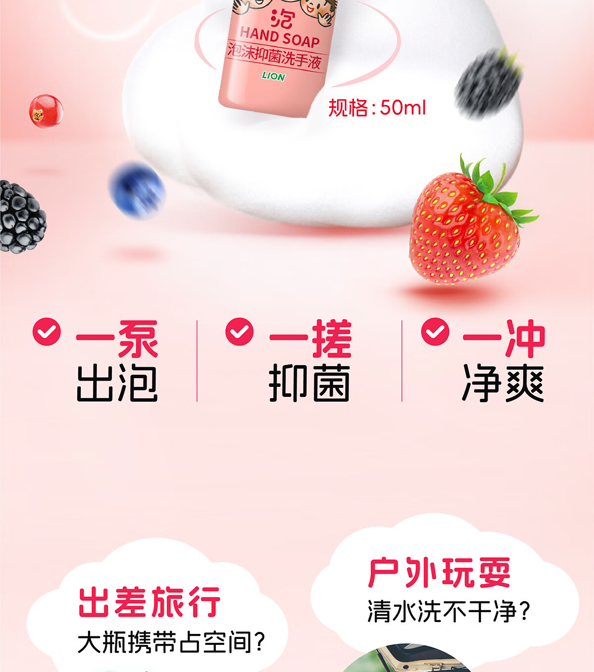 狮王(Lion)趣净泡沫抑菌洗手液浆果草莓香50ml便携旅行装全家适用
