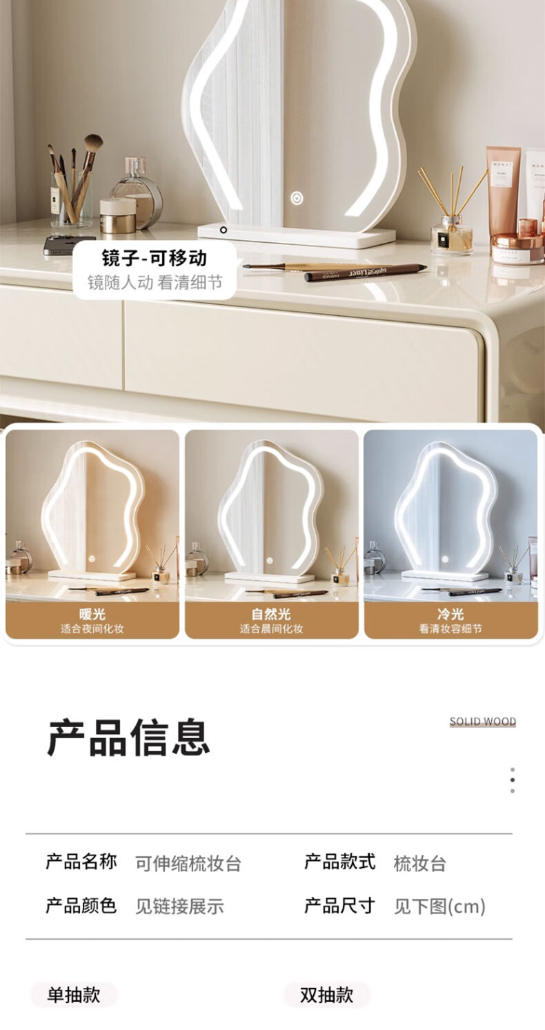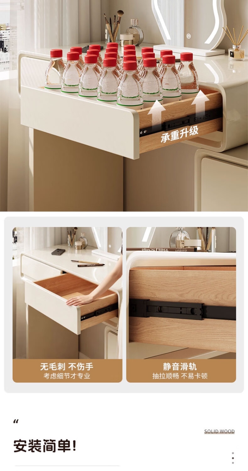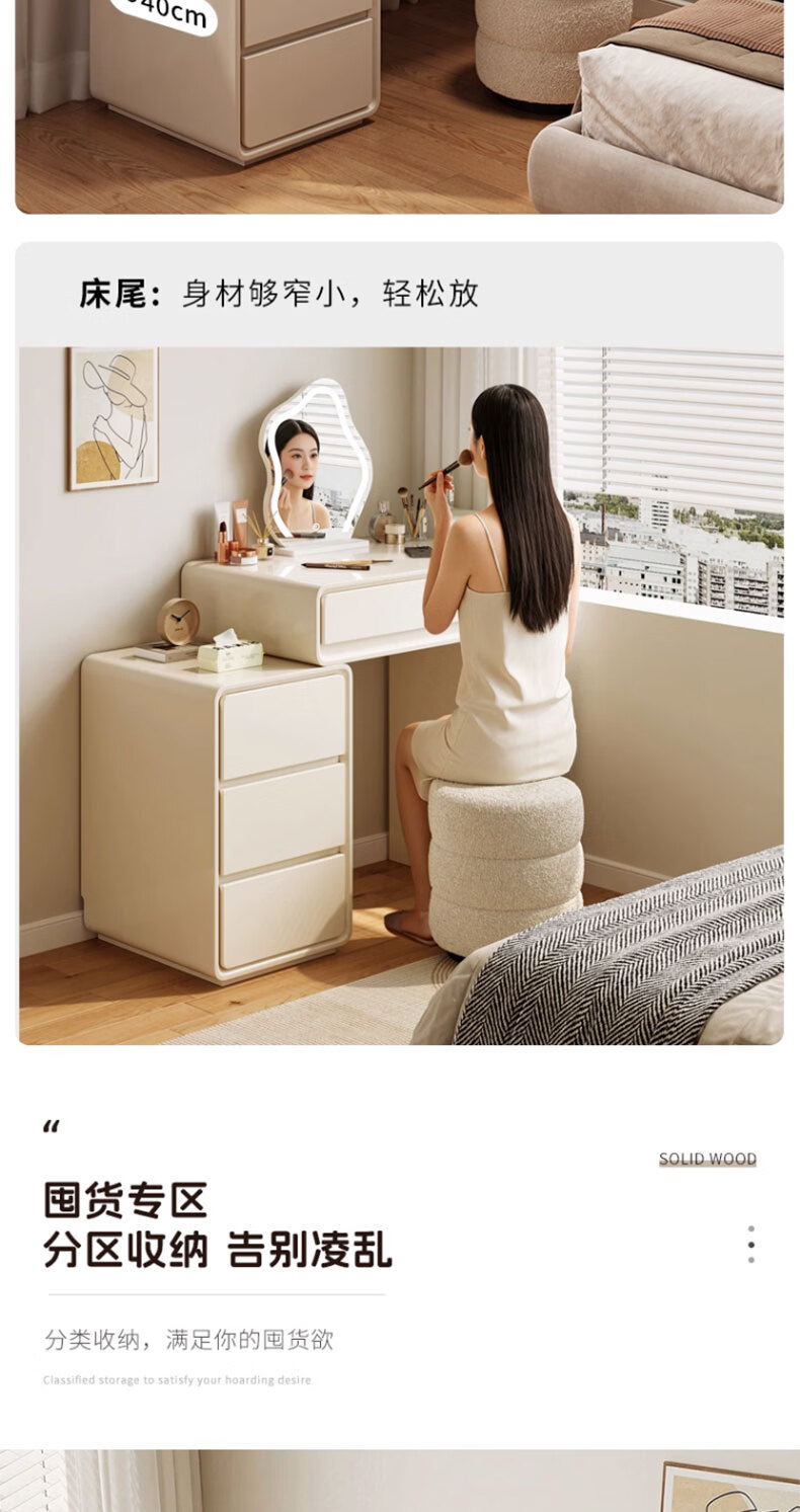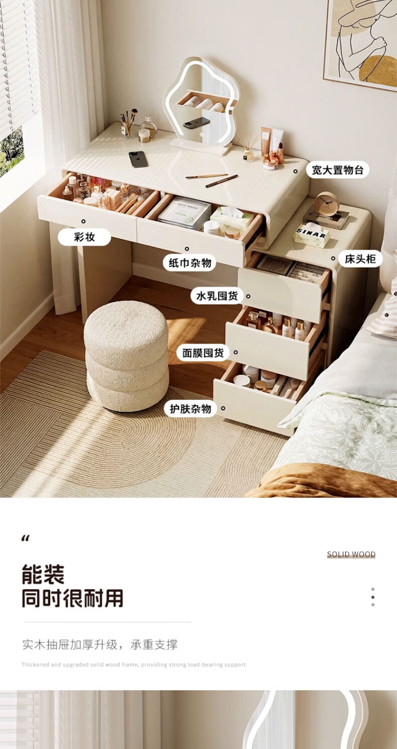 富禾实木梳妆台卧室2025新款斗柜一体化妆桌简约奶油风化妆台梳妆桌子 值;【ENF级实木板芯】云朵镜+60cm桌+边柜