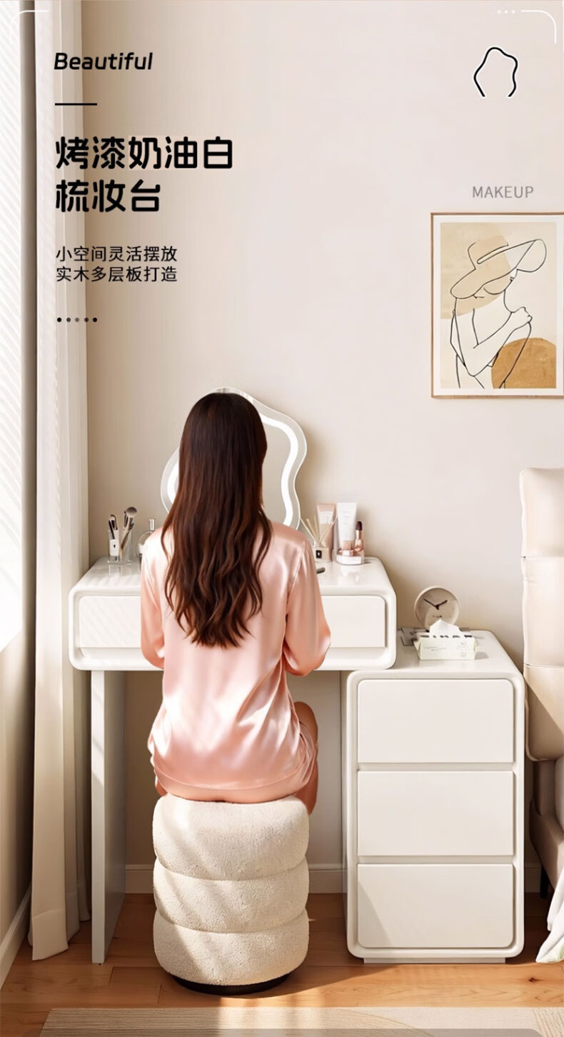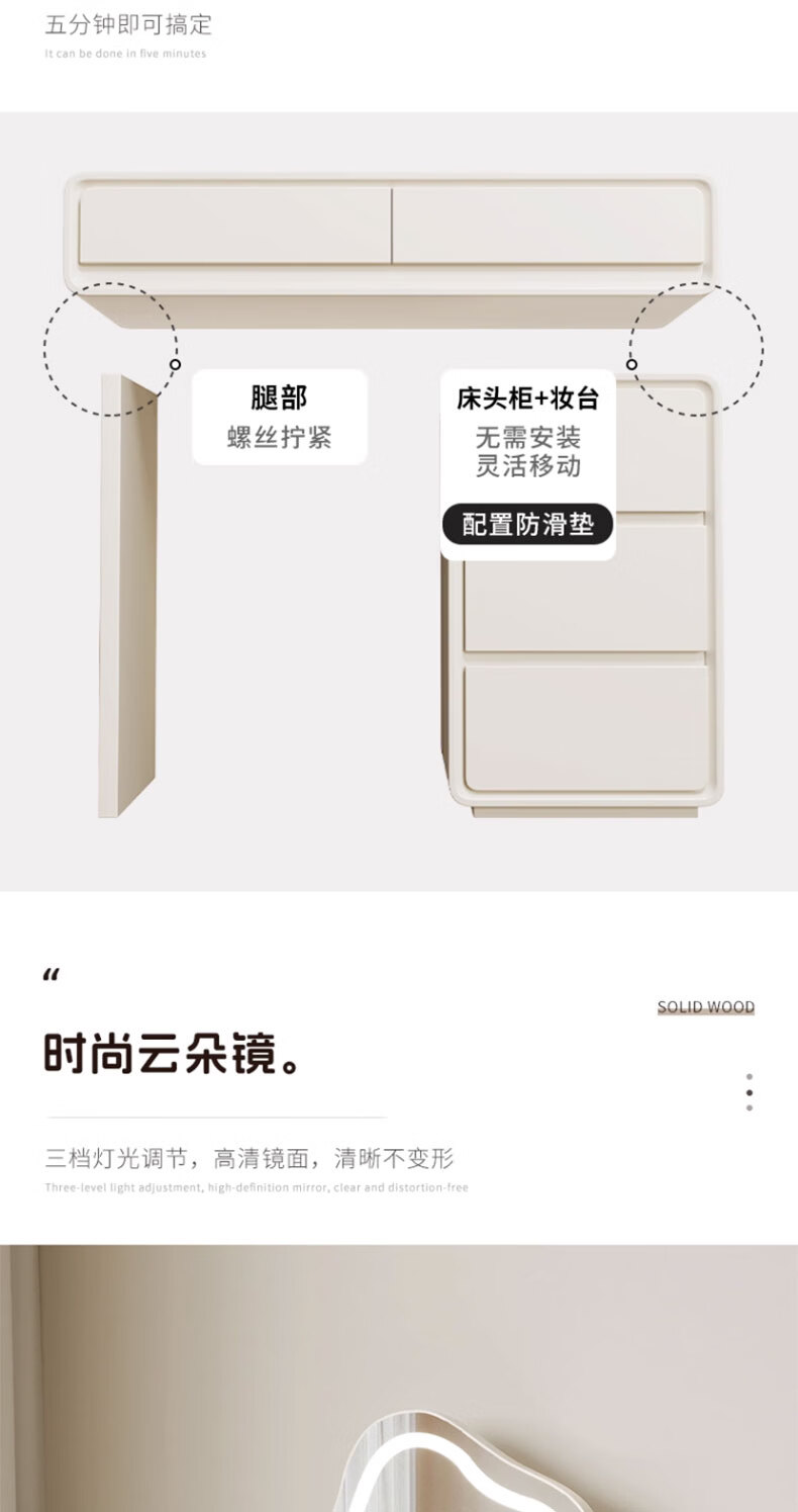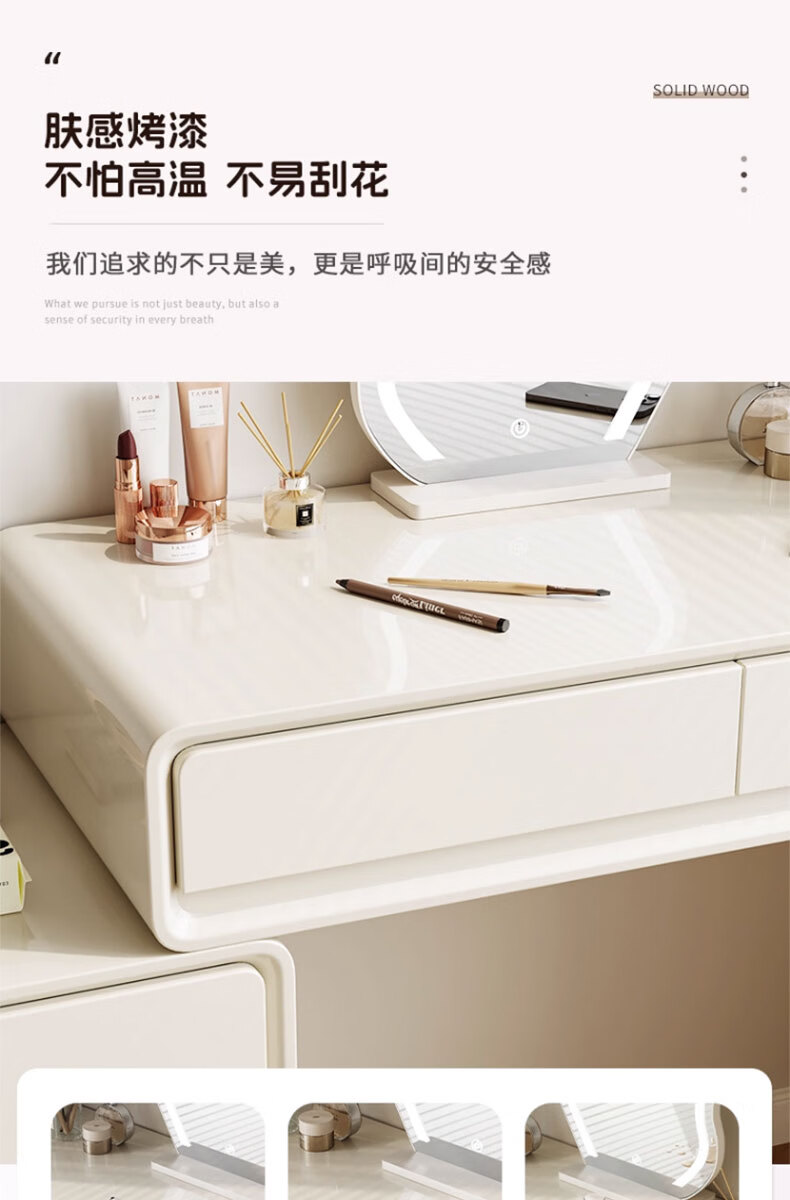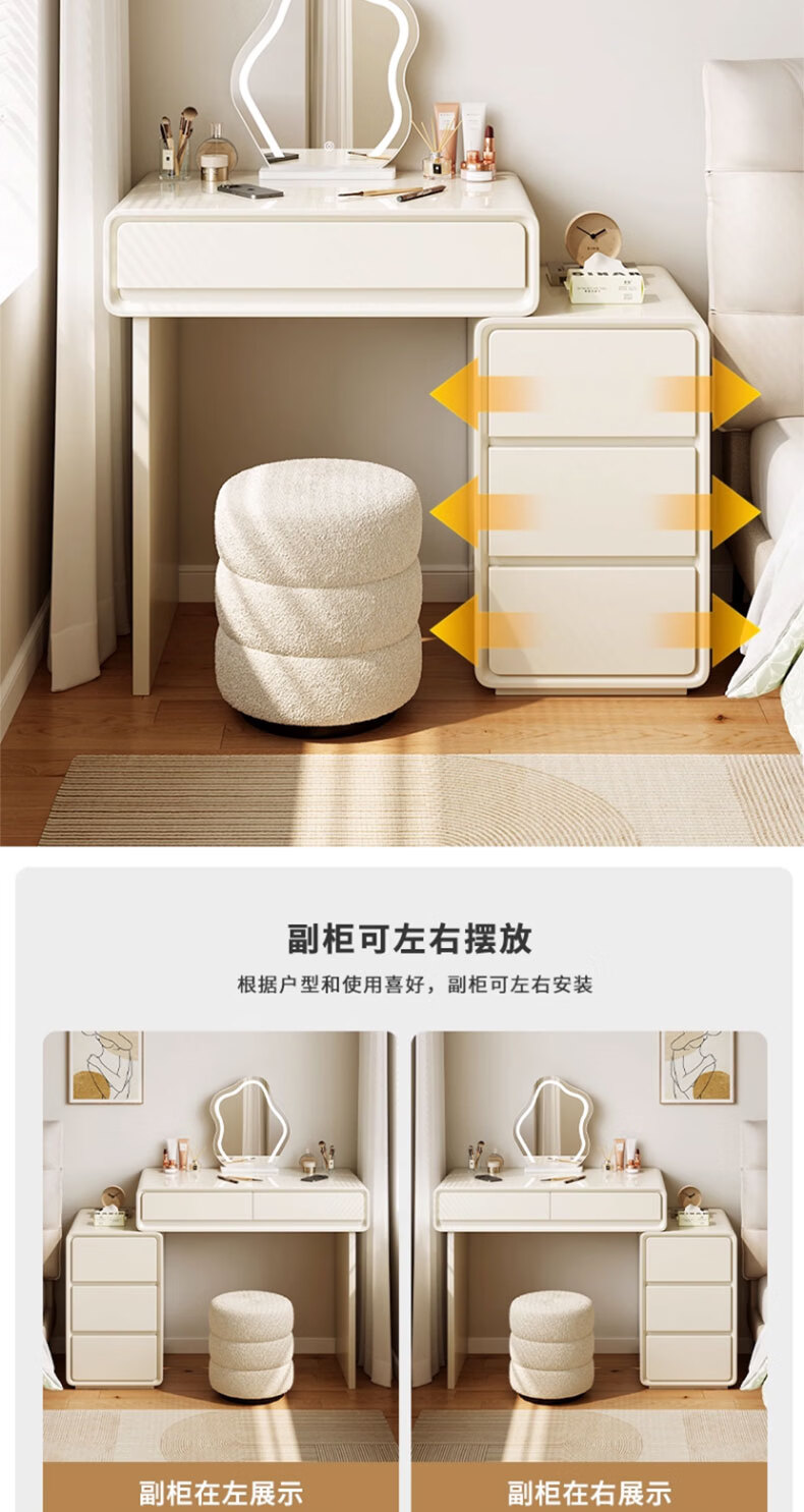 富禾实木梳妆台卧室2025新款斗柜一体化妆桌简约奶油风化妆台梳妆桌子 值;【ENF级实木板芯】云朵镜+60cm桌+边柜