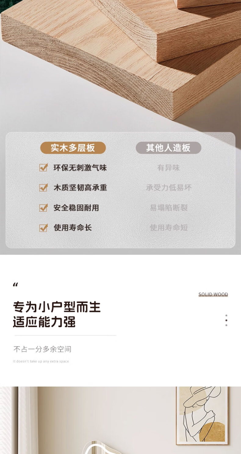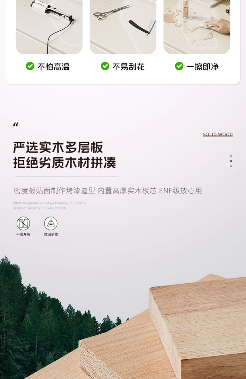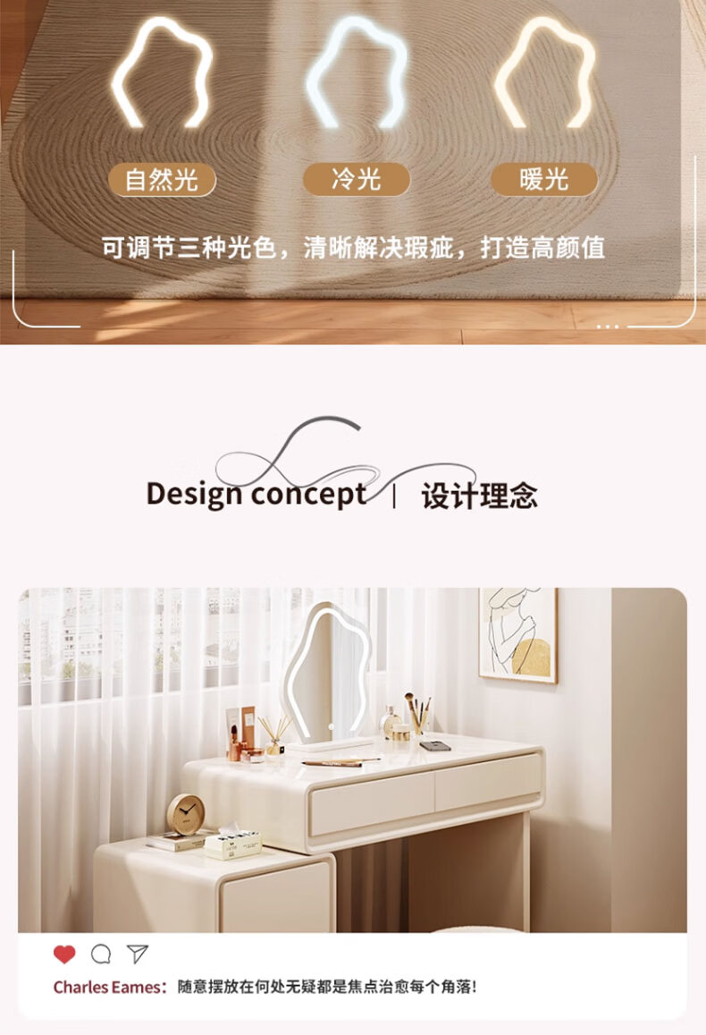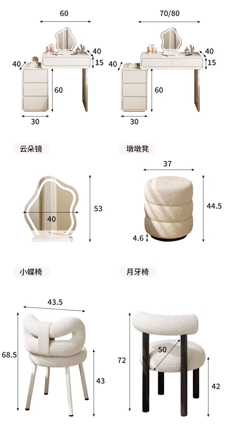 富禾实木梳妆台卧室2025新款斗柜一体化妆桌简约奶油风化妆台梳妆桌子 值;【ENF级实木板芯】云朵镜+60cm桌+边柜