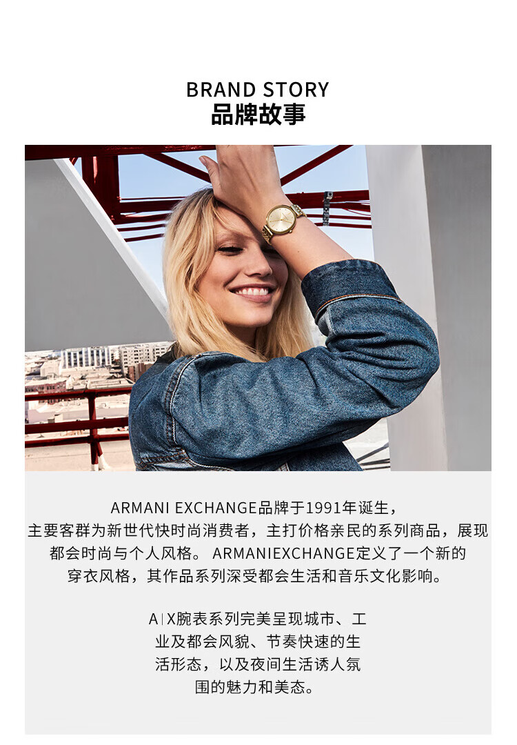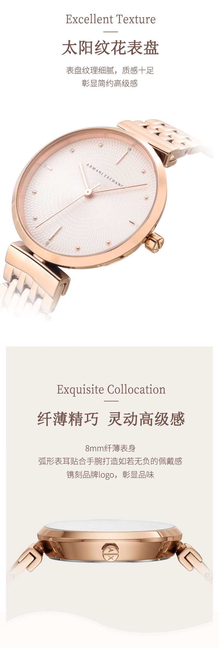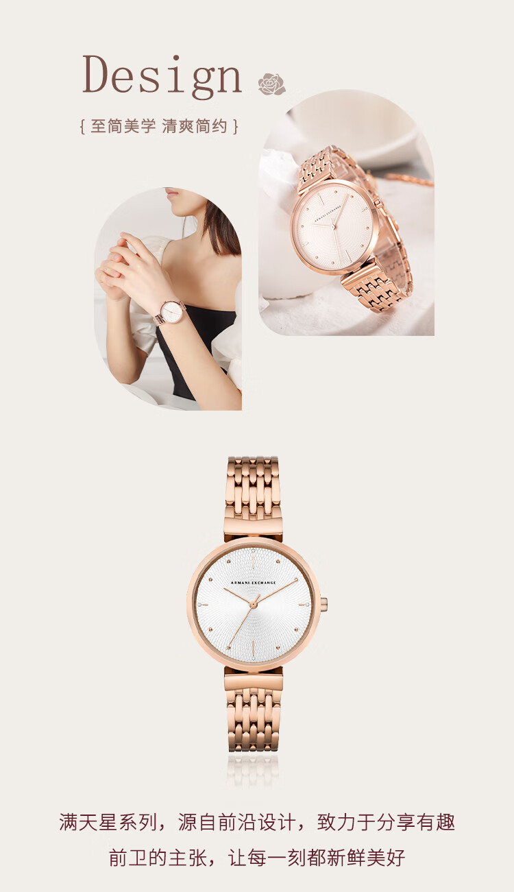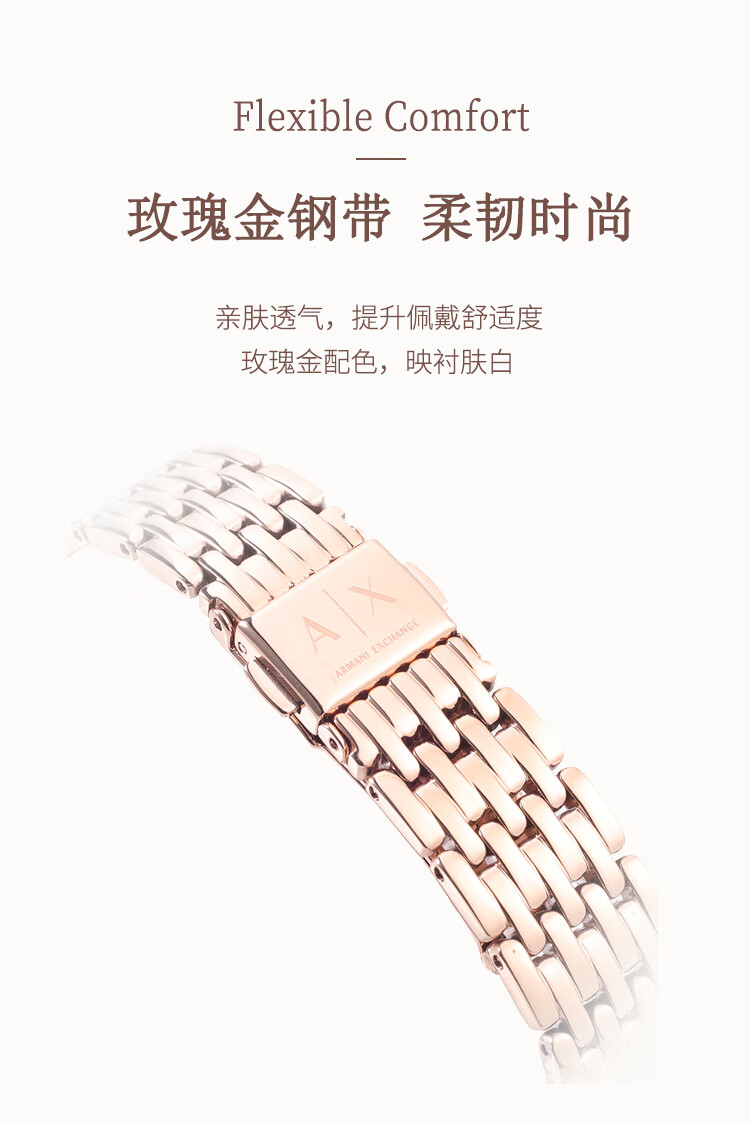 阿玛尼(ARMANI EXCHANGE)手表女士满天星镶钻钢带石英欧美腕表生日新年礼物送女生AX5901
