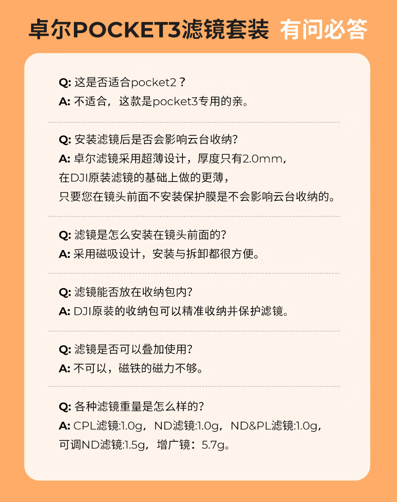 卓尔4件套 大疆pocket3滤镜运动相机滤镜套装口袋相机大疆配件磁吸安装快拆滤镜