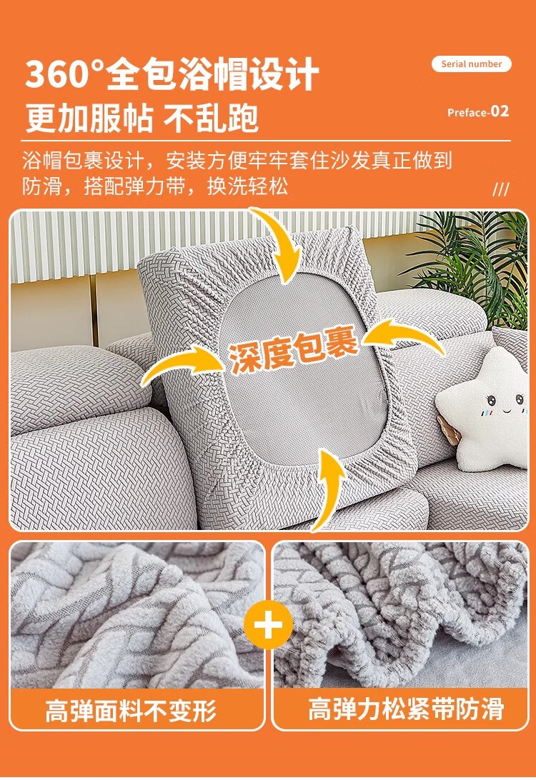 艾薇沙发套罩全包弹力沙发罩坐垫套椅套四季长85-135宽65-85斜格灰