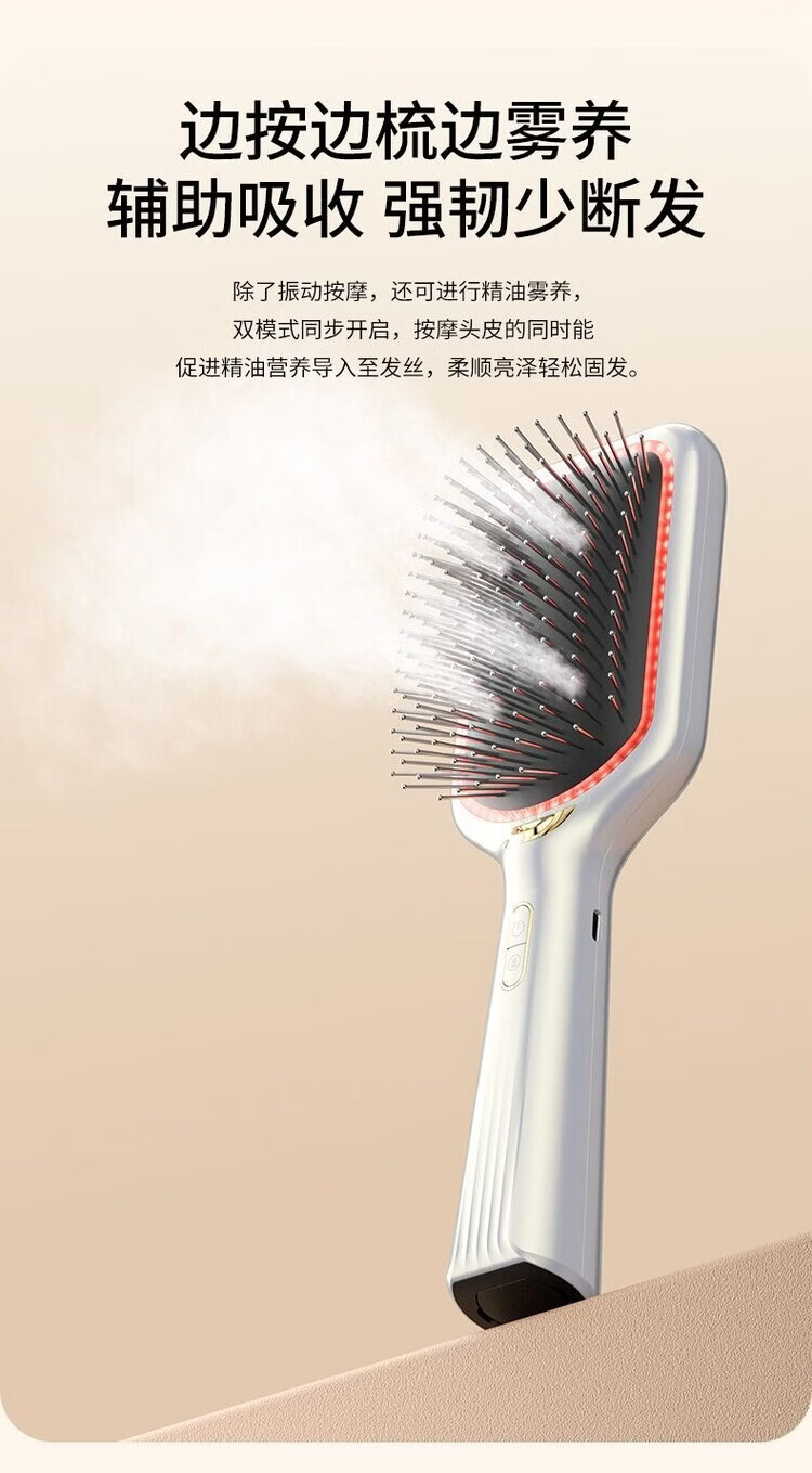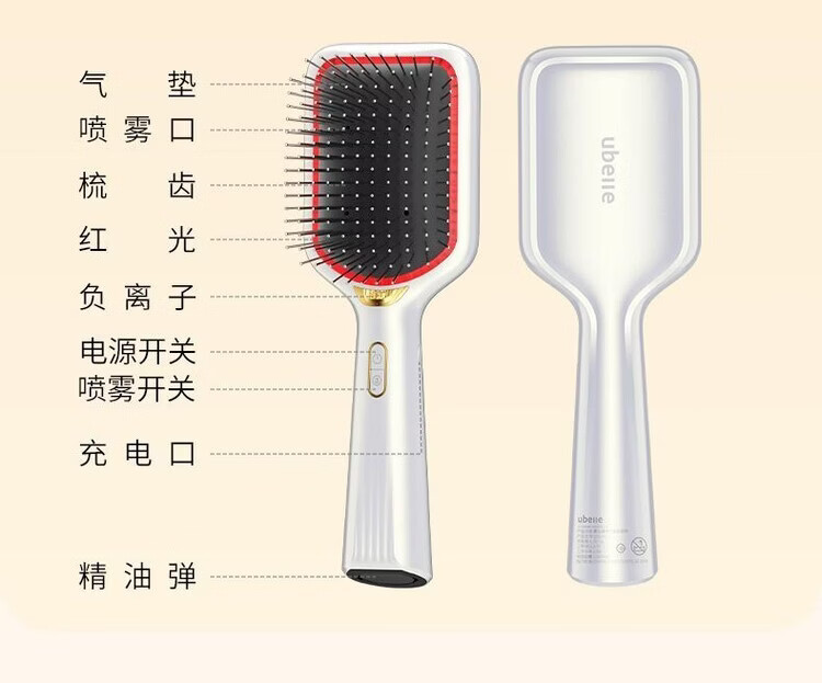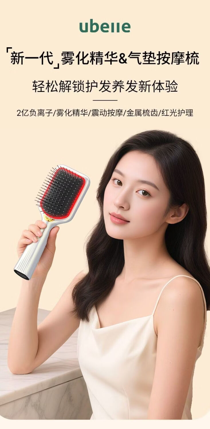 UBelle电动气垫按摩梳无线红外雾化精油头皮蓬松不伤发高弹气囊梳 冷雾白气垫梳【雾化精华+2亿负离子】