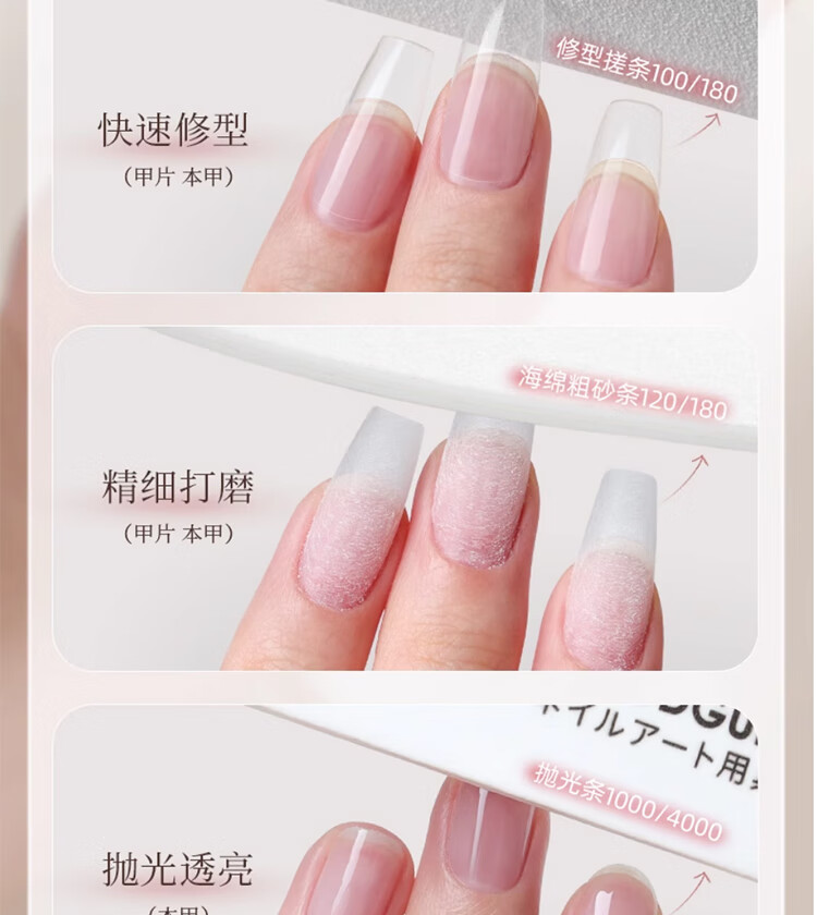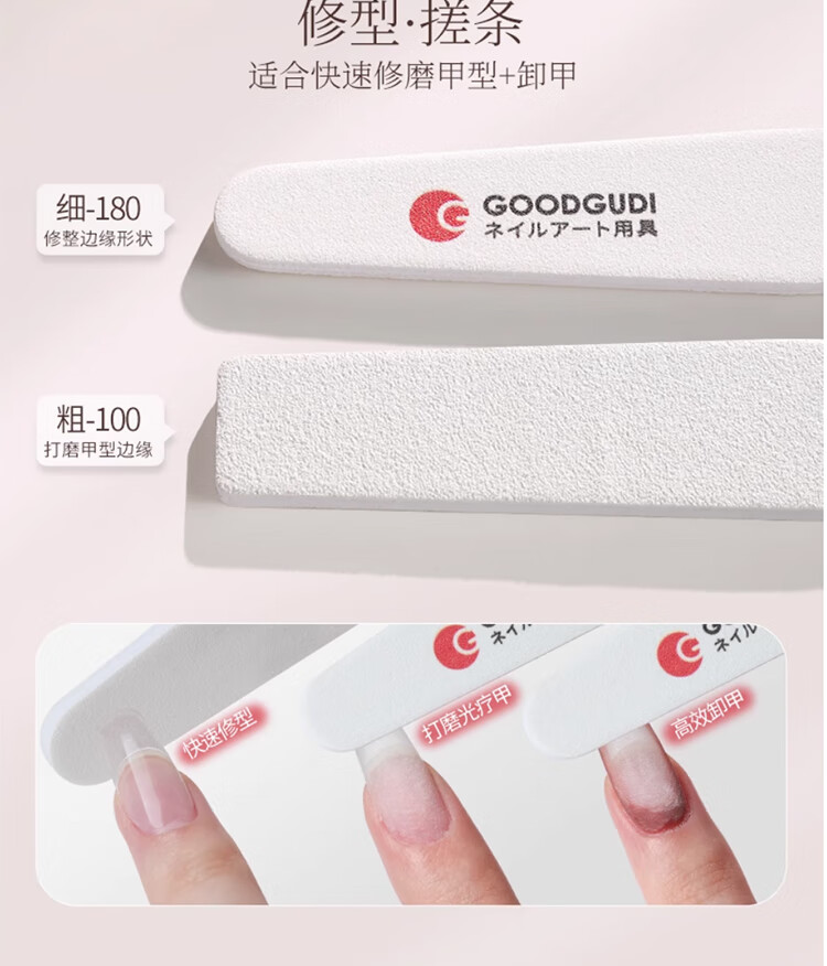 古迪3个指甲锉打磨条美甲专用双面砂条美甲店抛光搓条修指甲工具套装