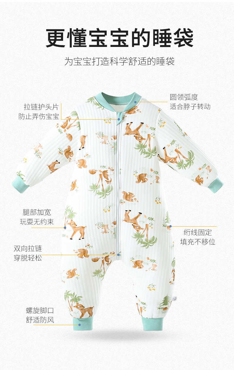 童颜婴儿睡袋秋冬季儿童防踢被竹棉宝宝睡衣空气层分腿睡袋 麋鹿 80码