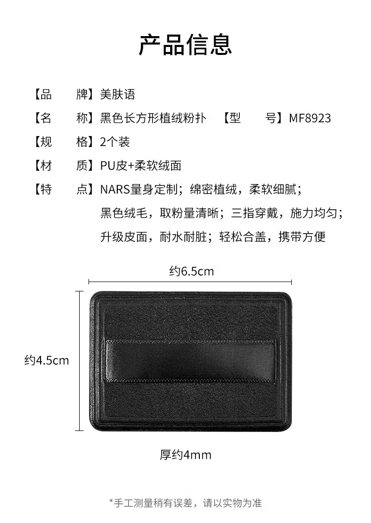 美肤语植绒粉饼粉扑(黑色长方形)2个 大白饼粉散粉扑蜜粉定妆化妆MF8923