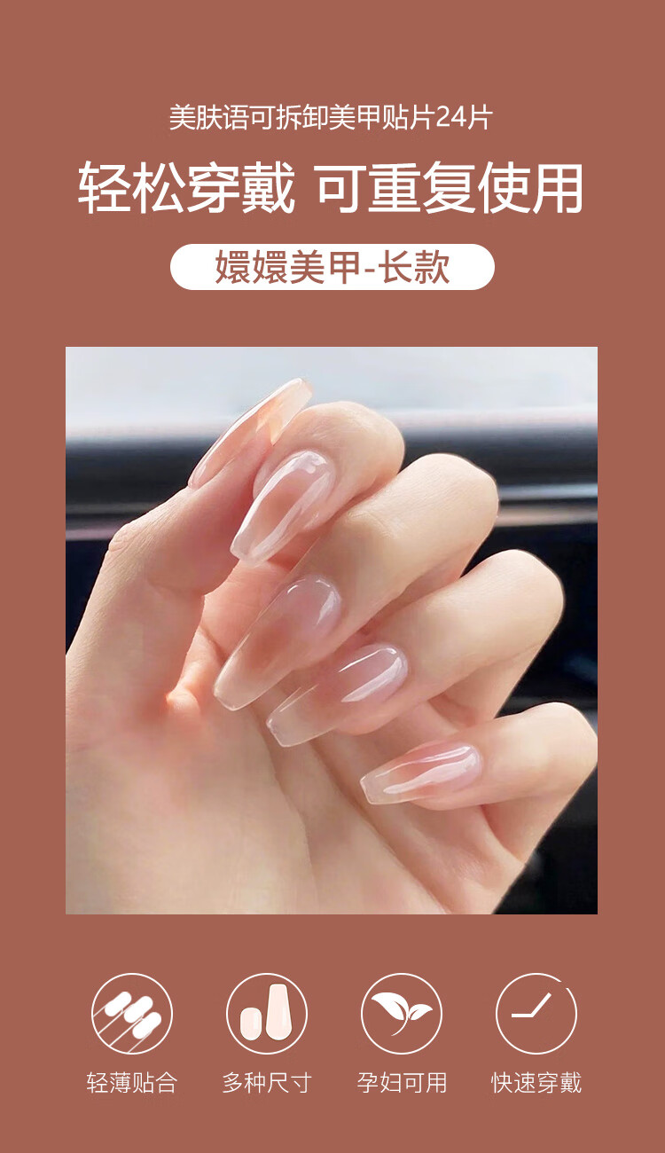 美肤语裸色美甲贴片穿戴甲(嬛嬛美甲)长款假指甲果冻胶可拆带工具MF8326
