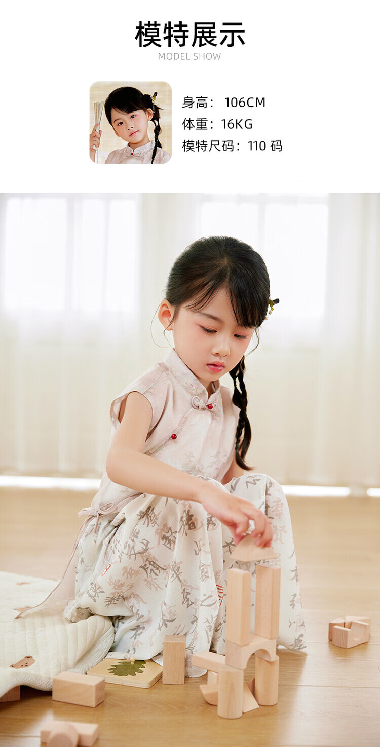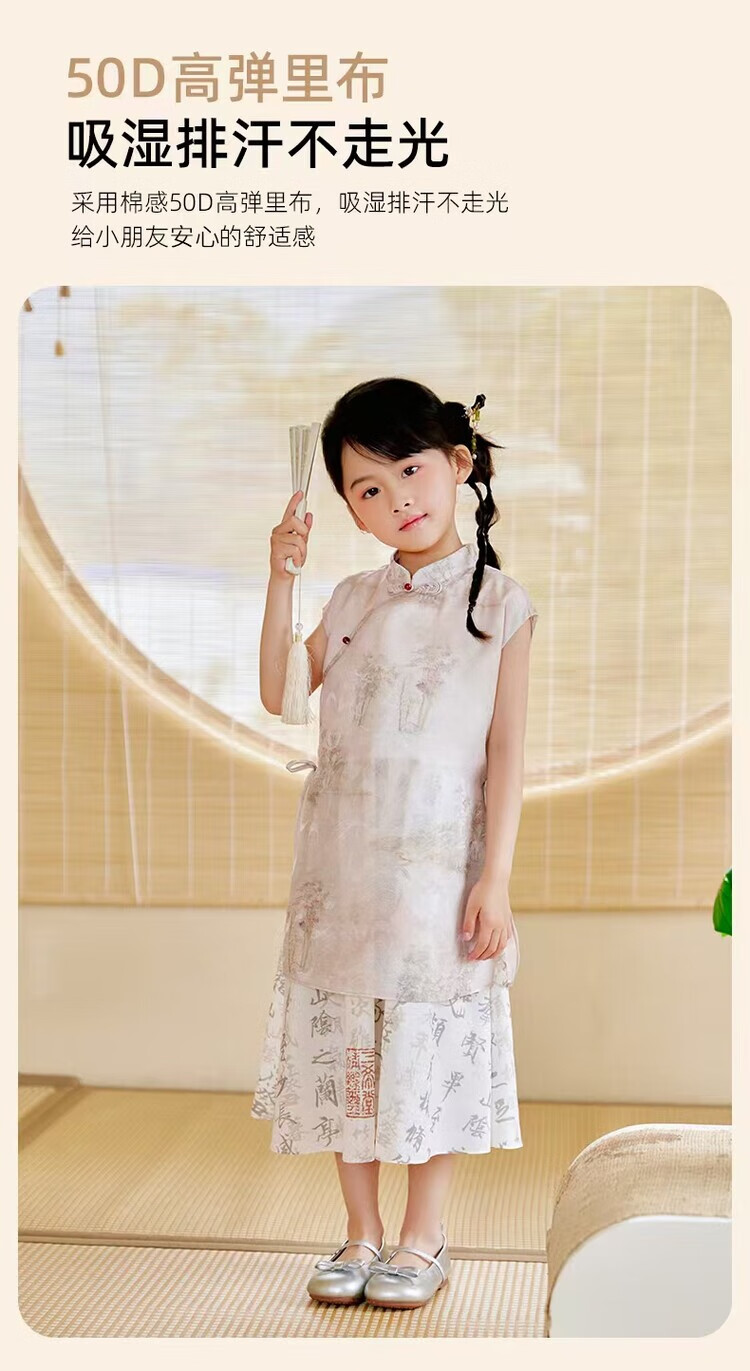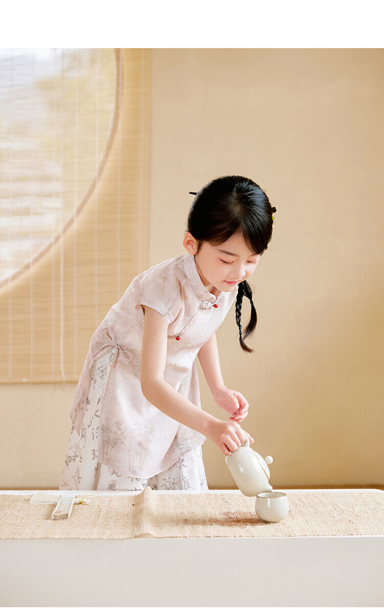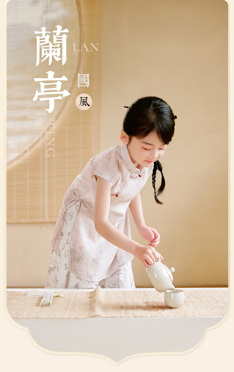 西子问【兰亭-栀年】夏季2025中国风汉服新中式女童连衣裙旗袍亲子 兰亭 110-170 110