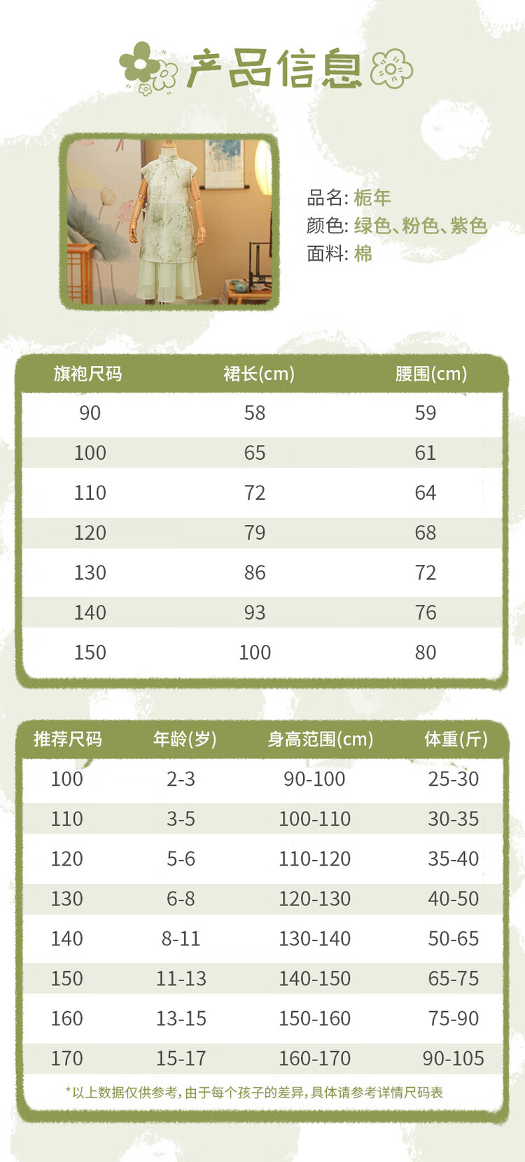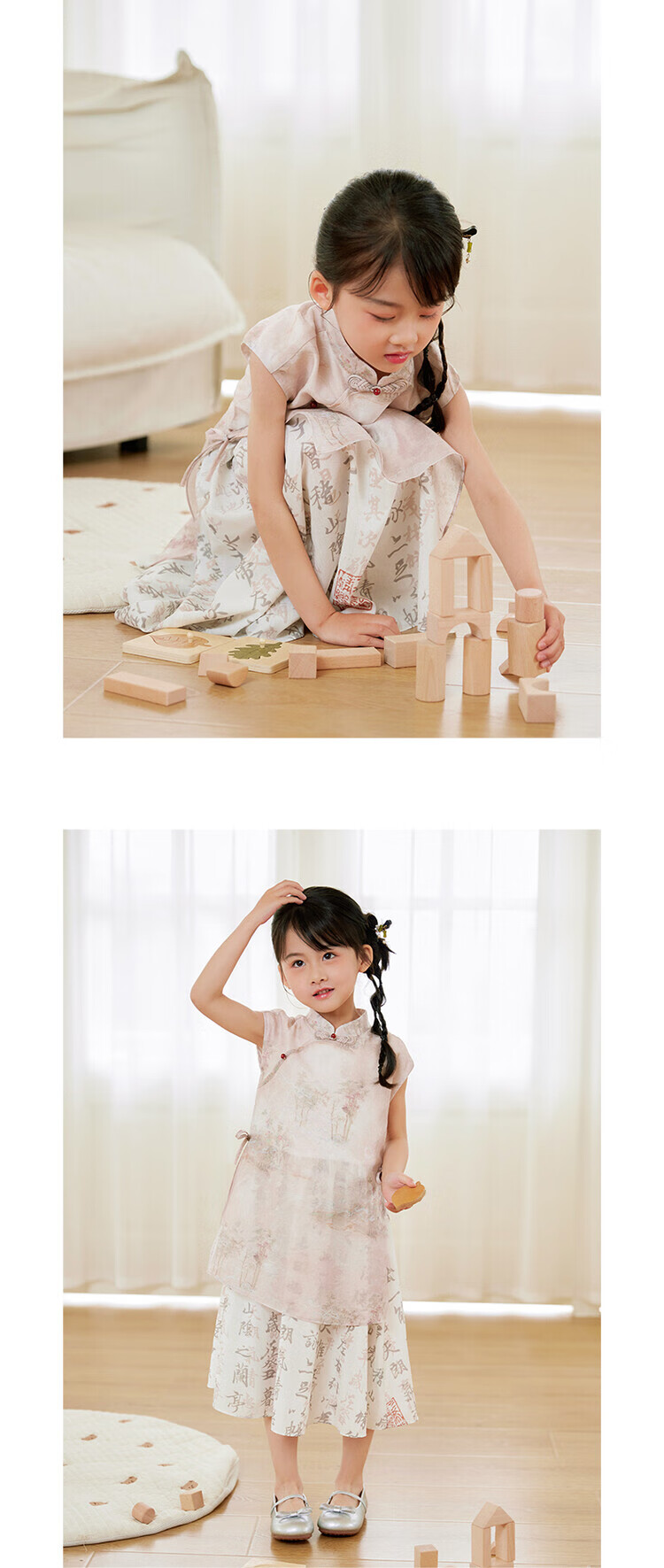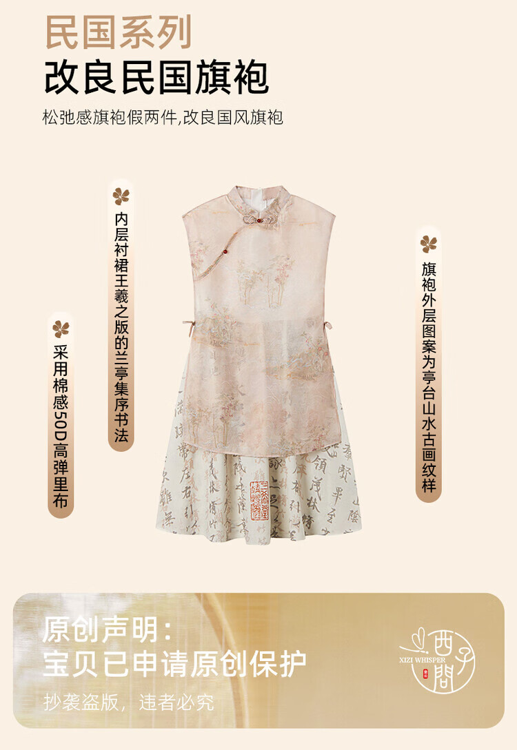 西子问【兰亭-栀年】夏季2025中国风汉服新中式女童连衣裙旗袍亲子 兰亭 110-170 110