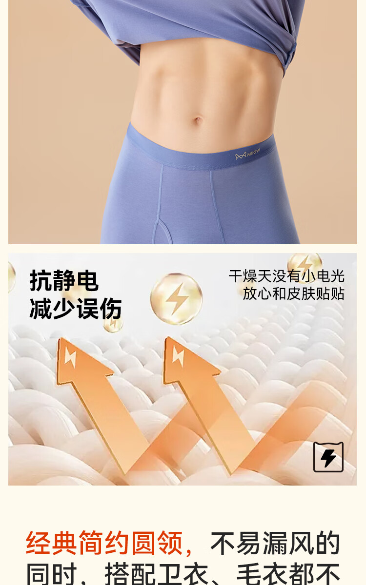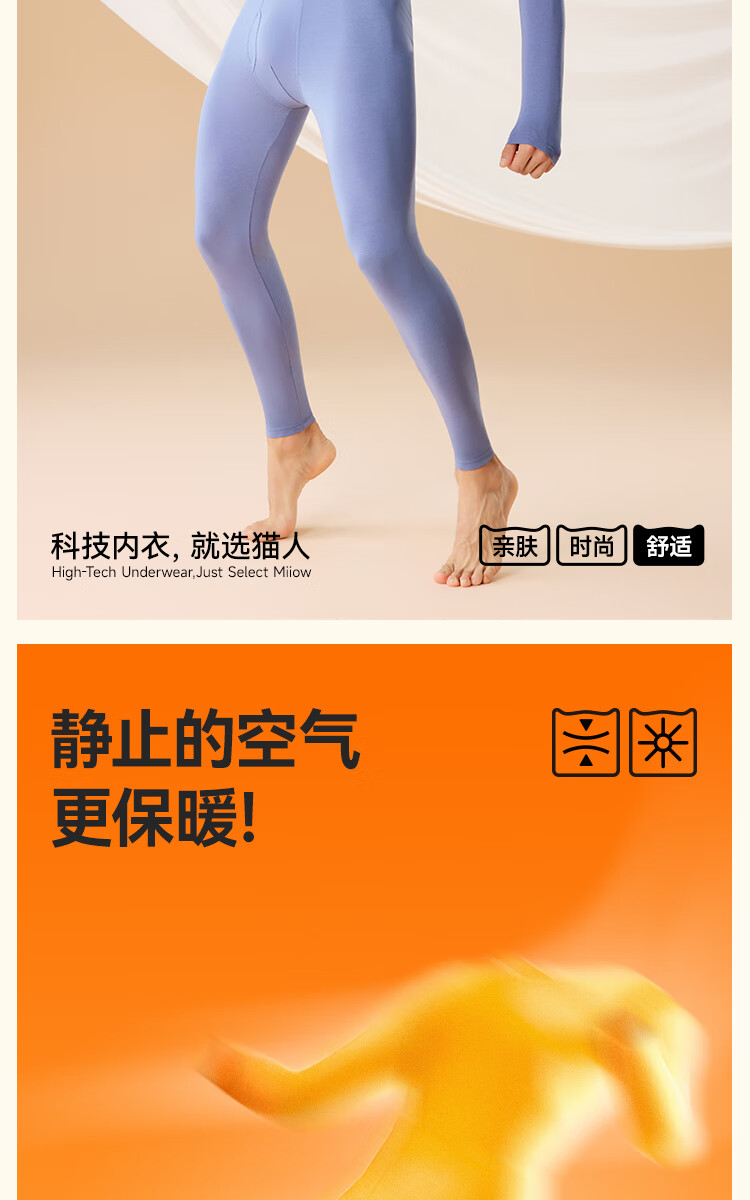 猫人(MiiOW)女士保暖内衣女生薄款秋裤保暖裤女抗菌单裤线裤衬裤秋冬打底裤女