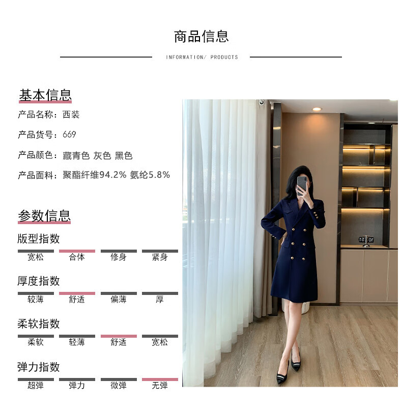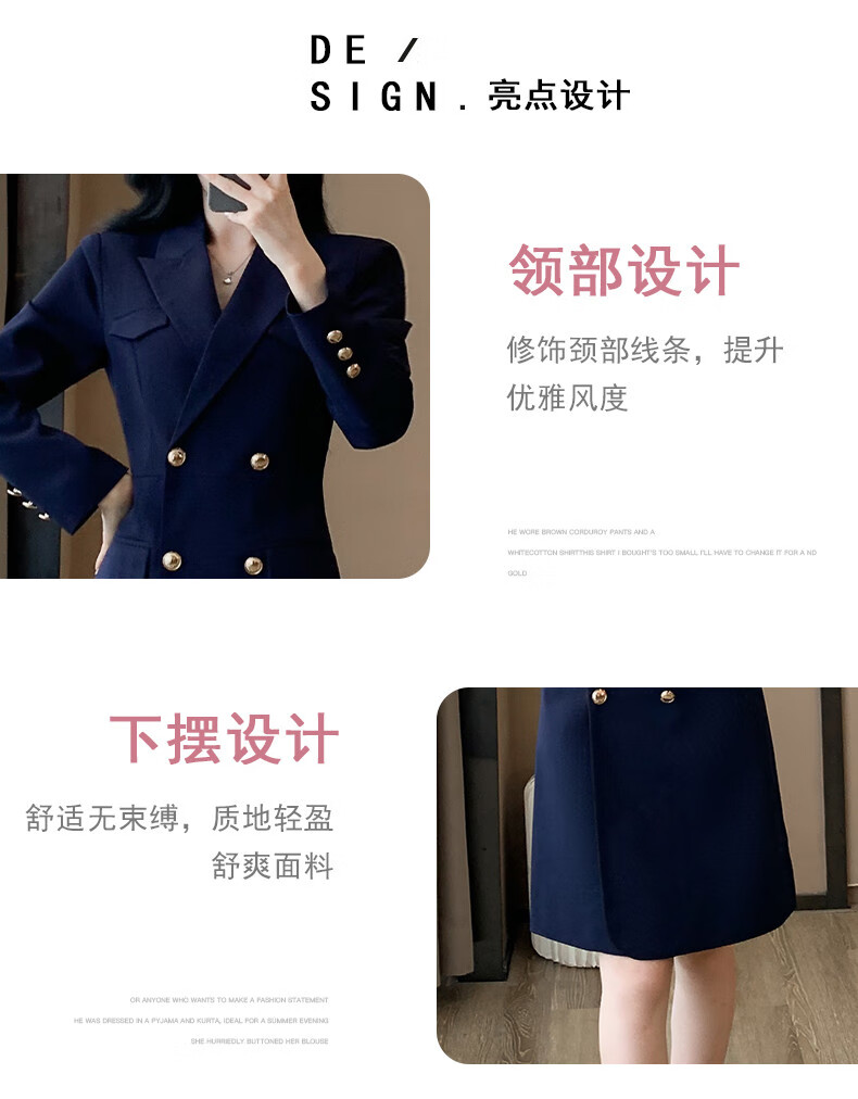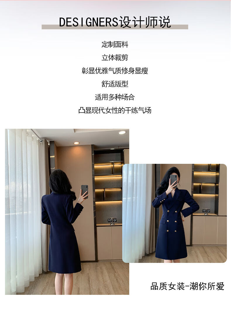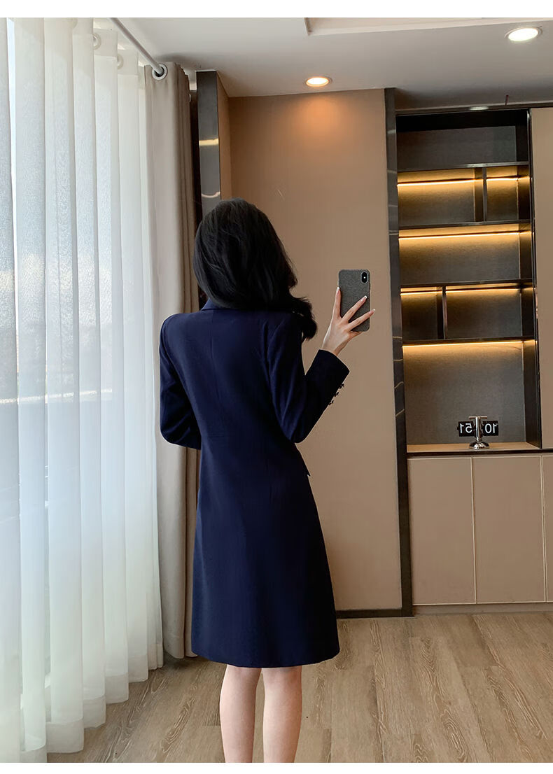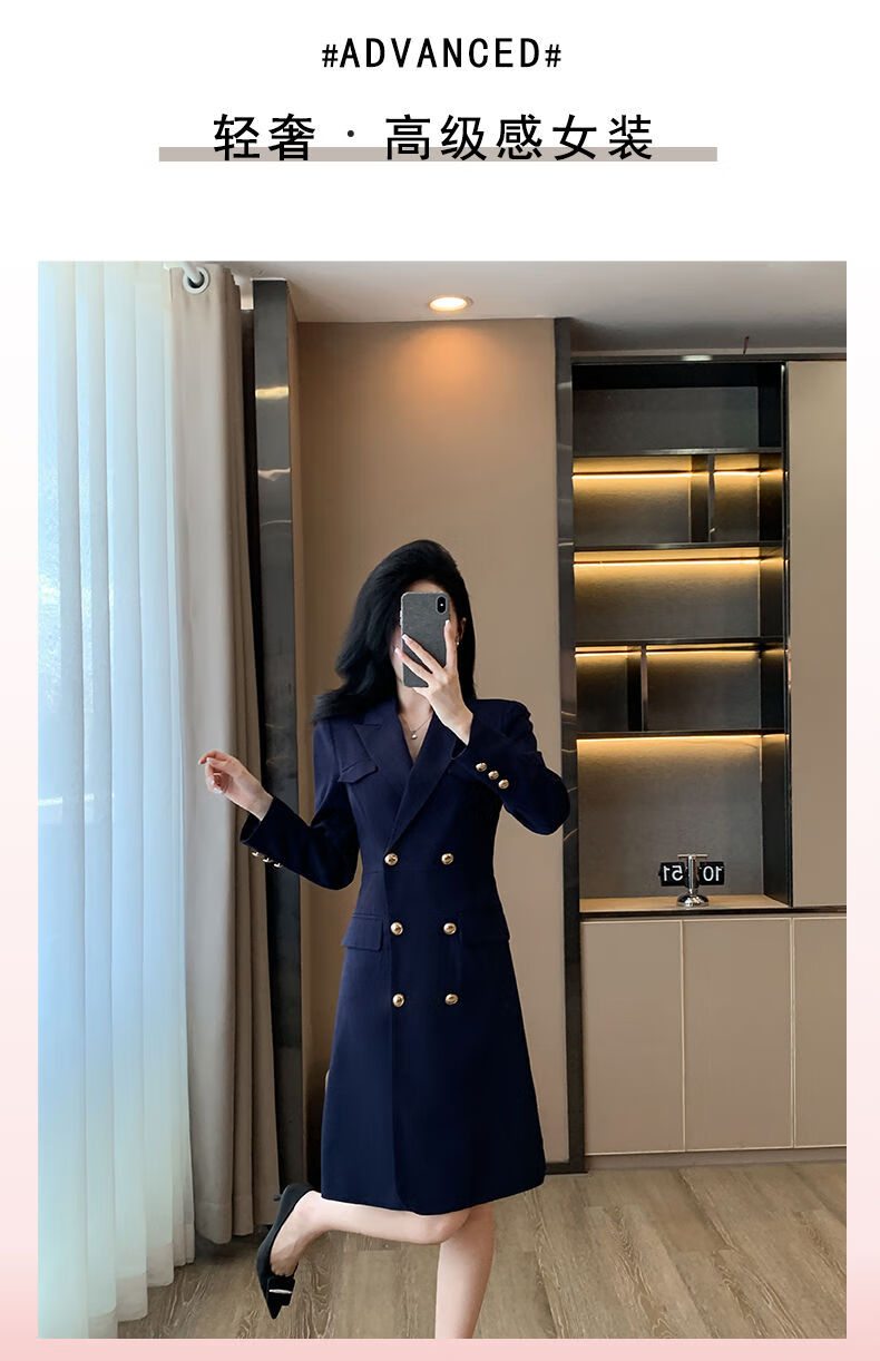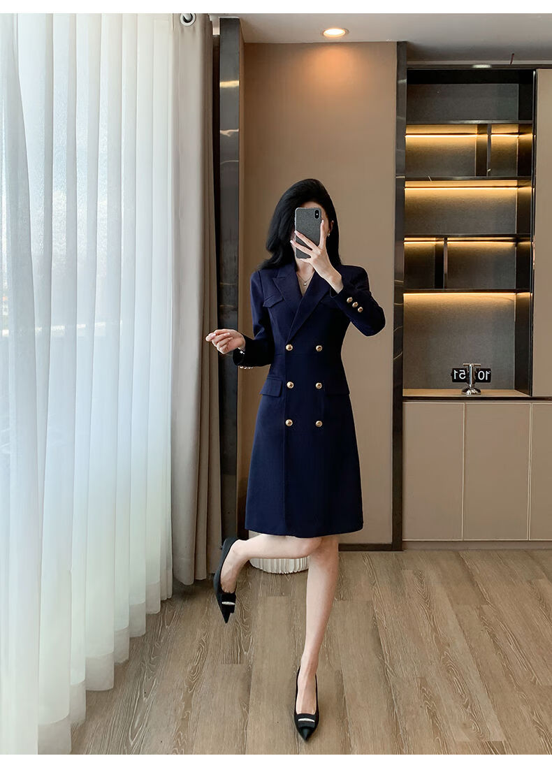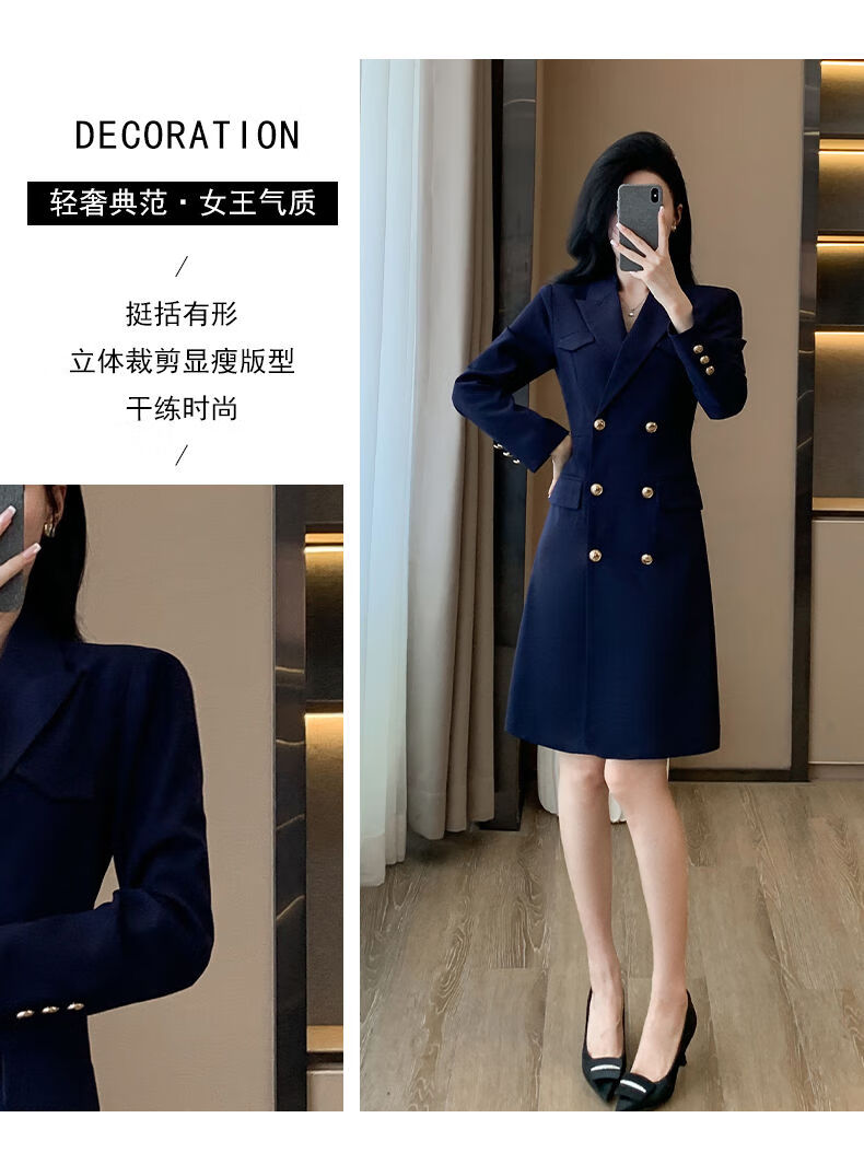 微胖气质连衣裙高级感秋冬高级感长袖西装连衣裙女春秋职业装气质 藏青色西装连衣裙 S