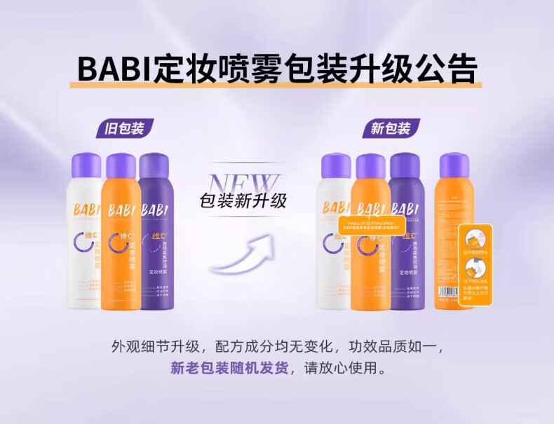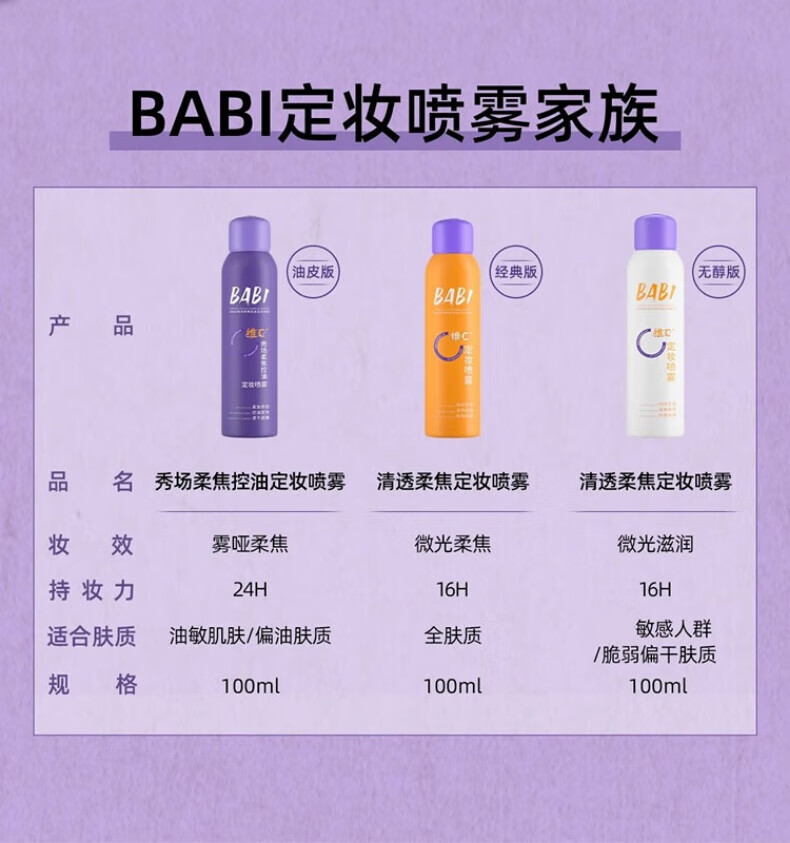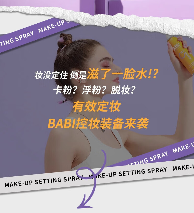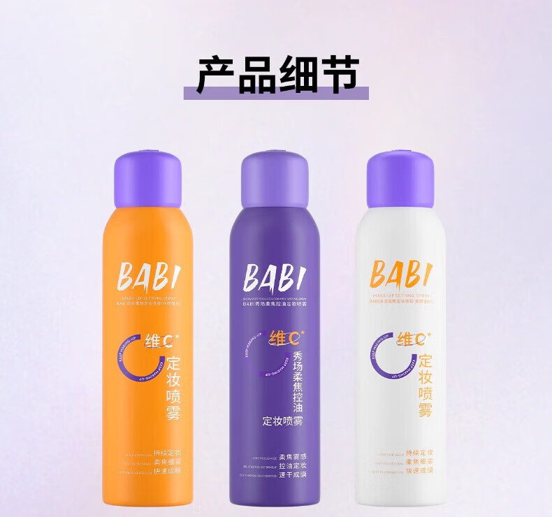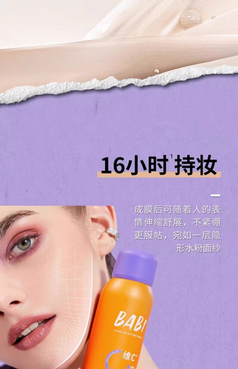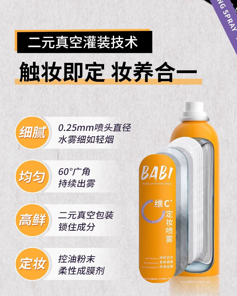 BABI清透柔焦定妆喷雾VC持妆快速成膜不易脱妆油皮维C轻盈锁妆女 隐形面纱 100ml