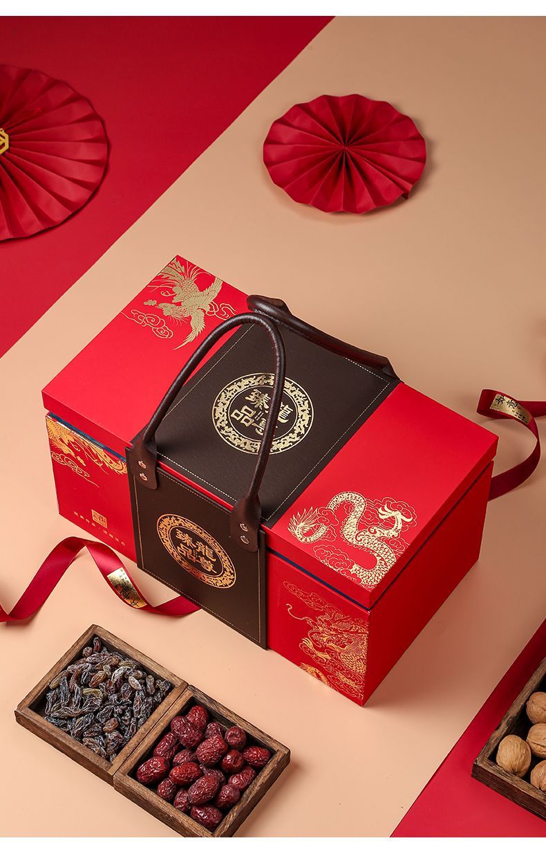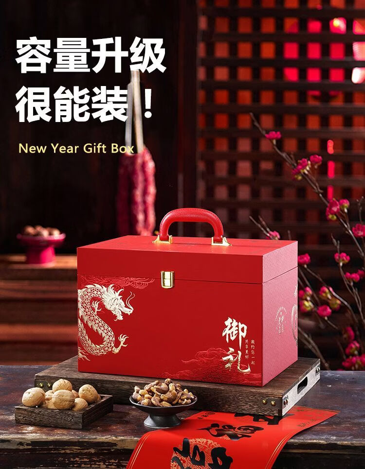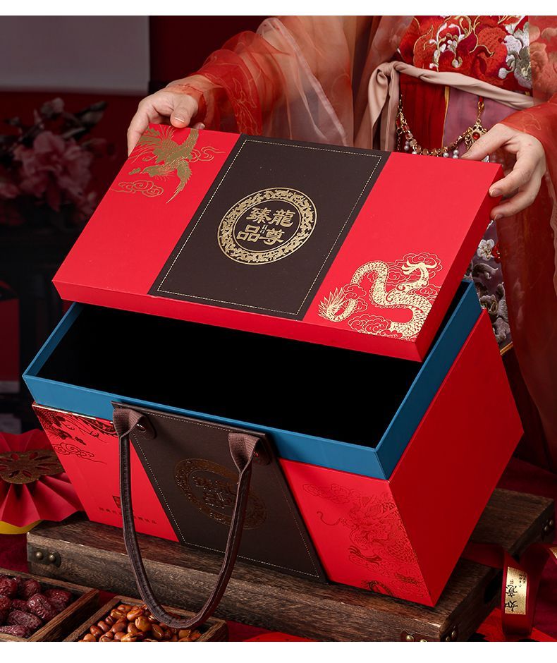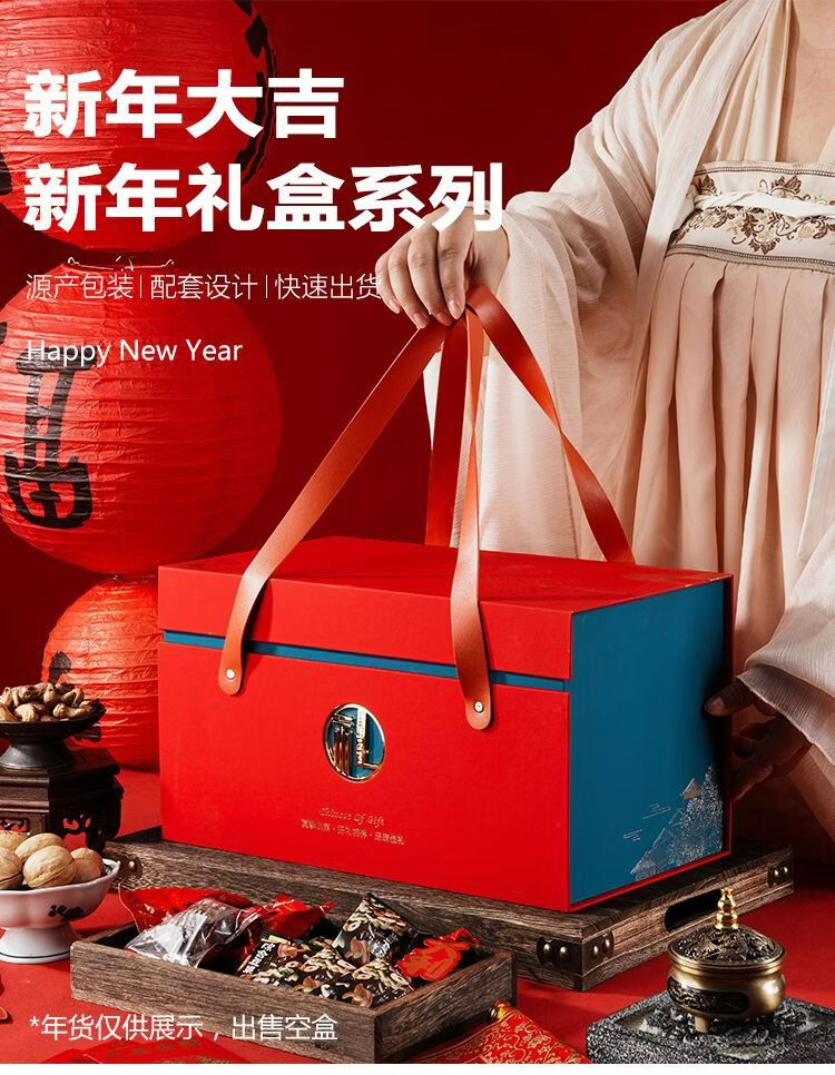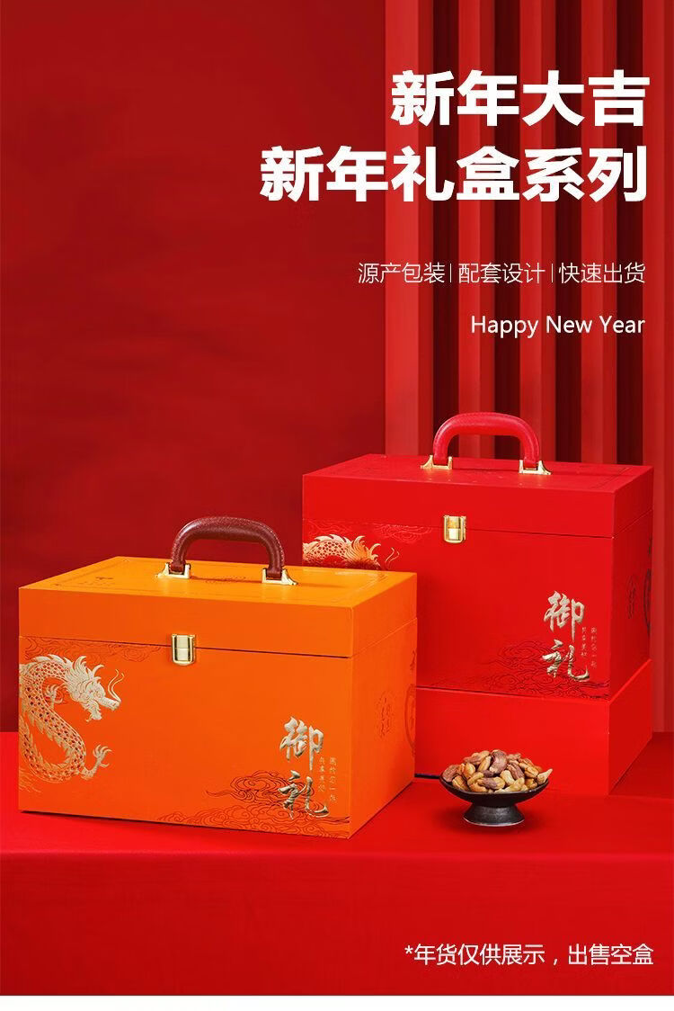 咏幻高端新年年货礼盒腊味坚果熟食生鲜大礼包礼品糕点礼盒空盒定制 中国礼年货盒红色空盒拿样1套)