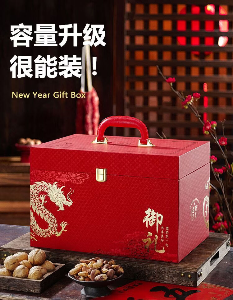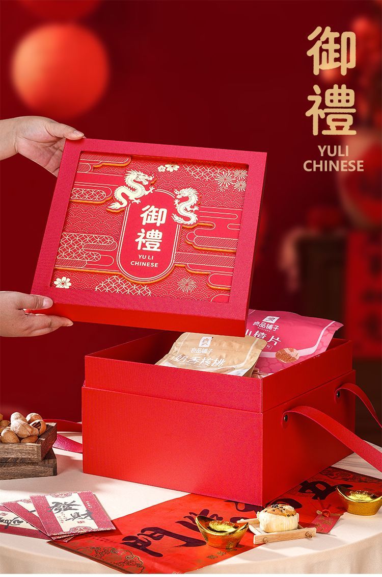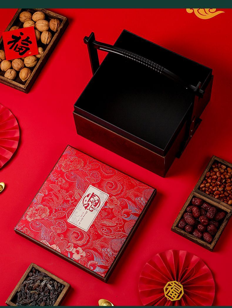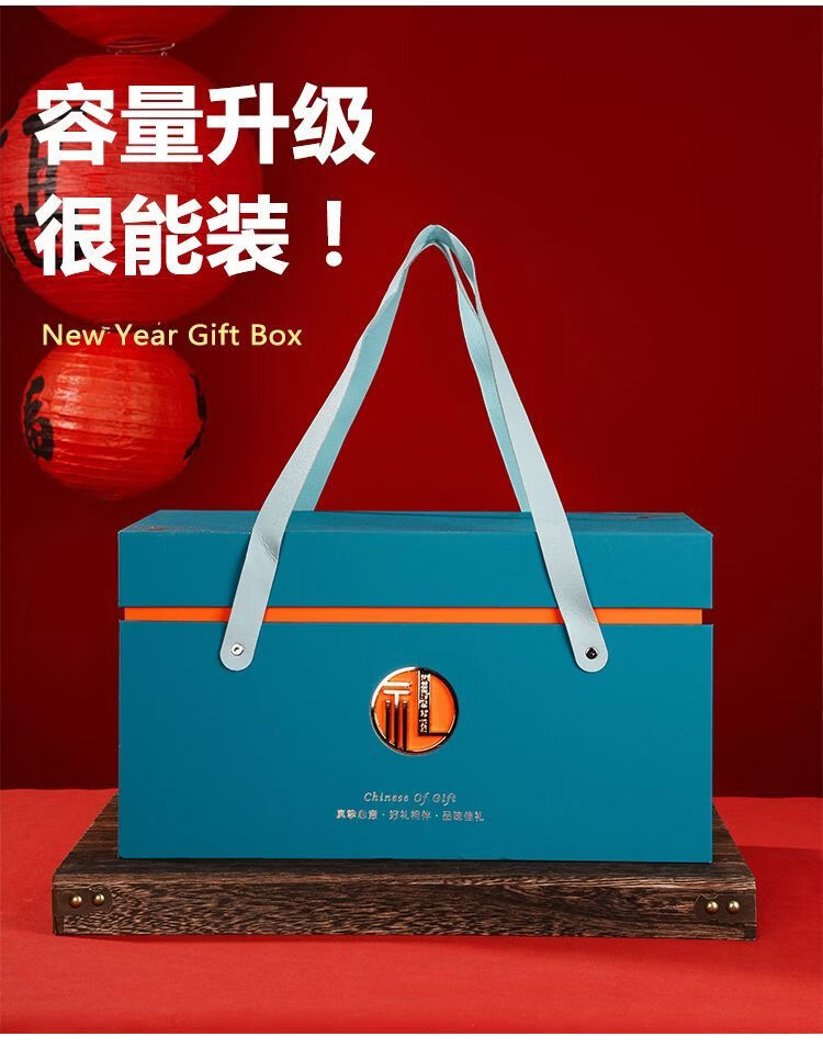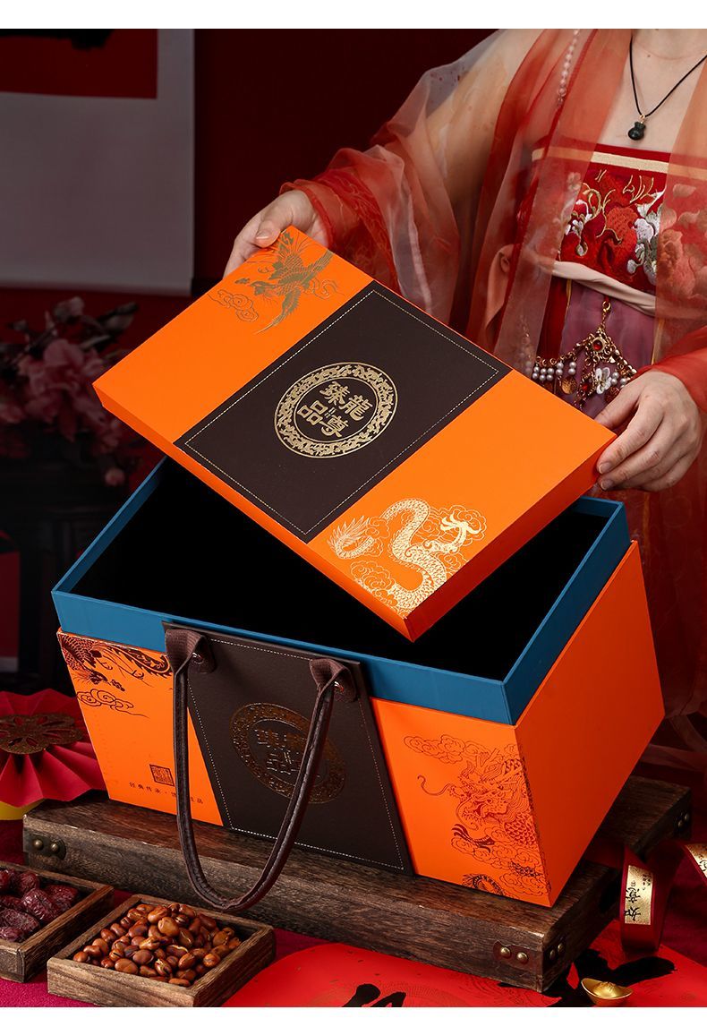 咏幻高端新年年货礼盒腊味坚果熟食生鲜大礼包礼品糕点礼盒空盒定制 中国礼年货盒红色空盒拿样1套)