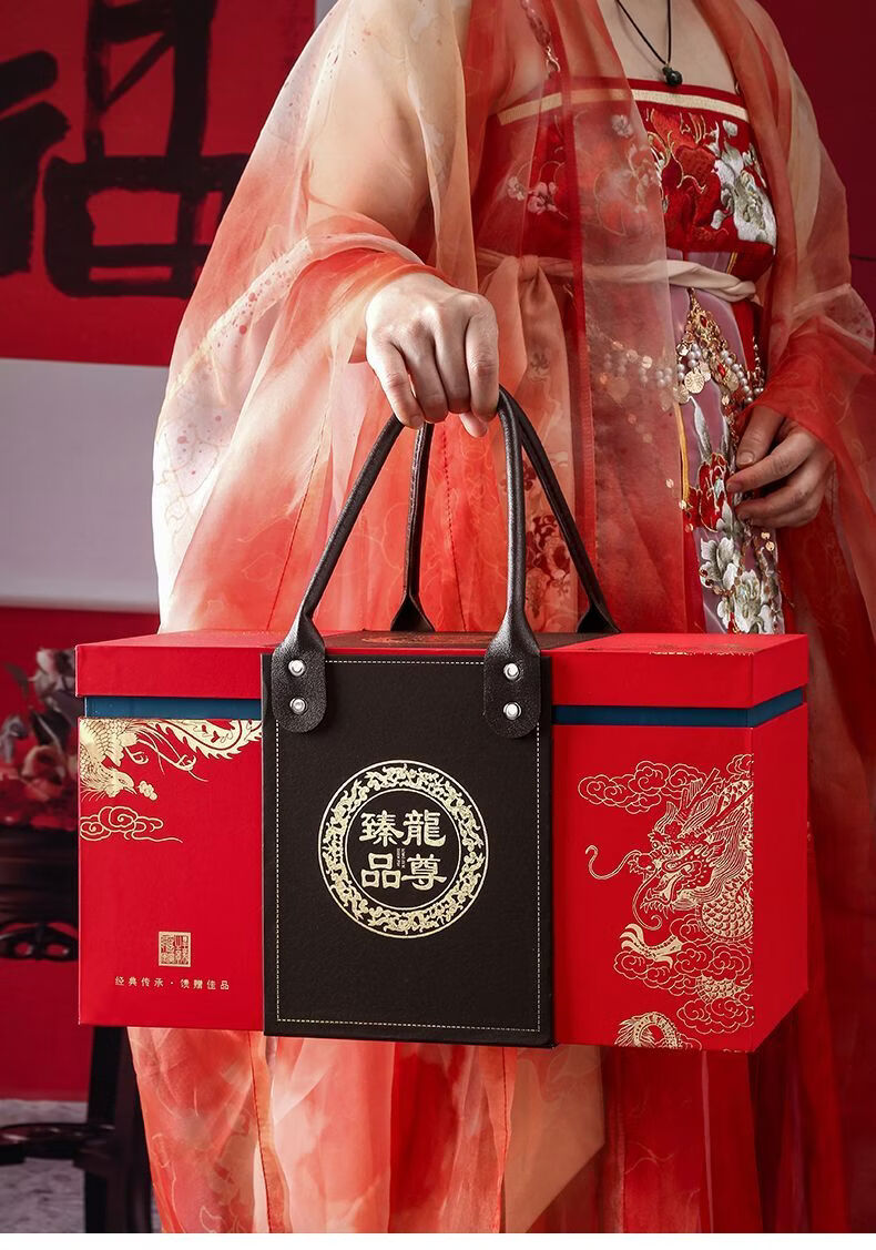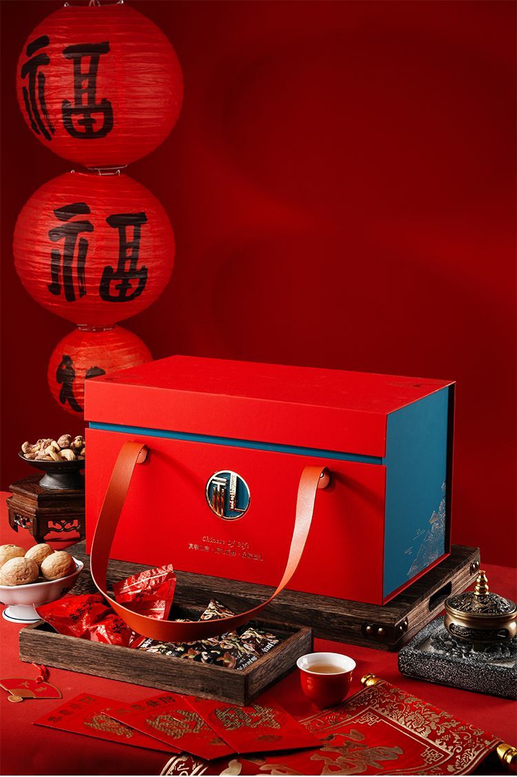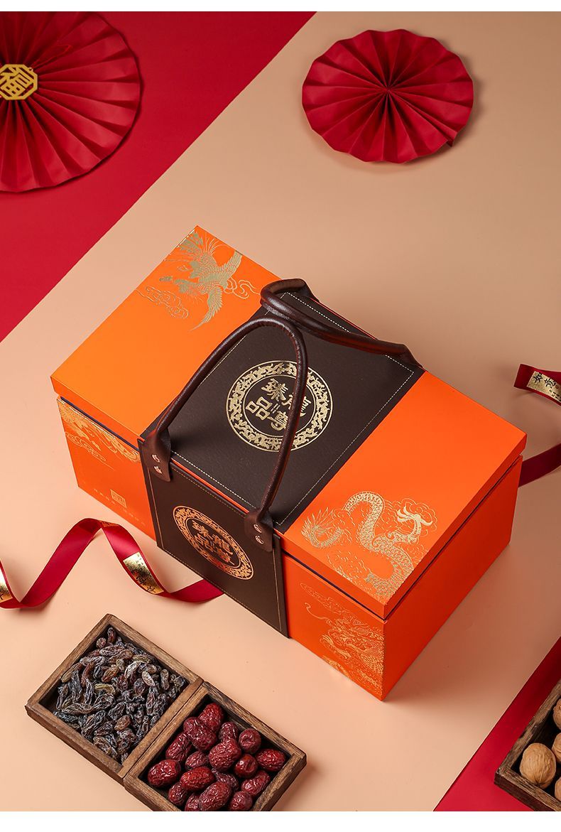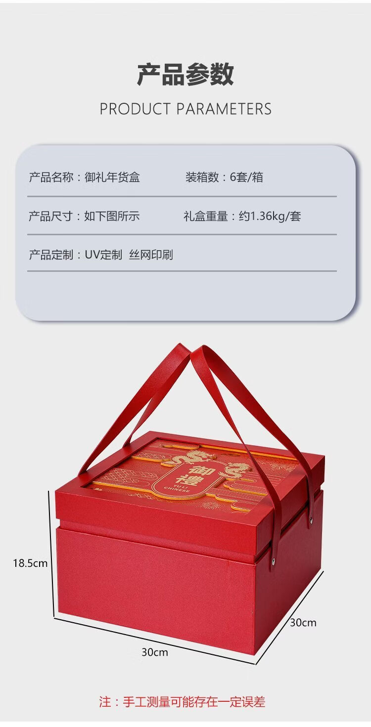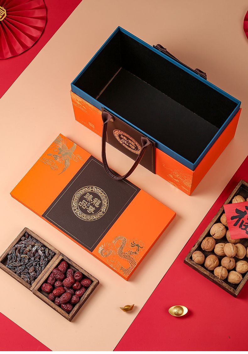 咏幻高端新年年货礼盒腊味坚果熟食生鲜大礼包礼品糕点礼盒空盒定制 中国礼年货盒红色空盒拿样1套)