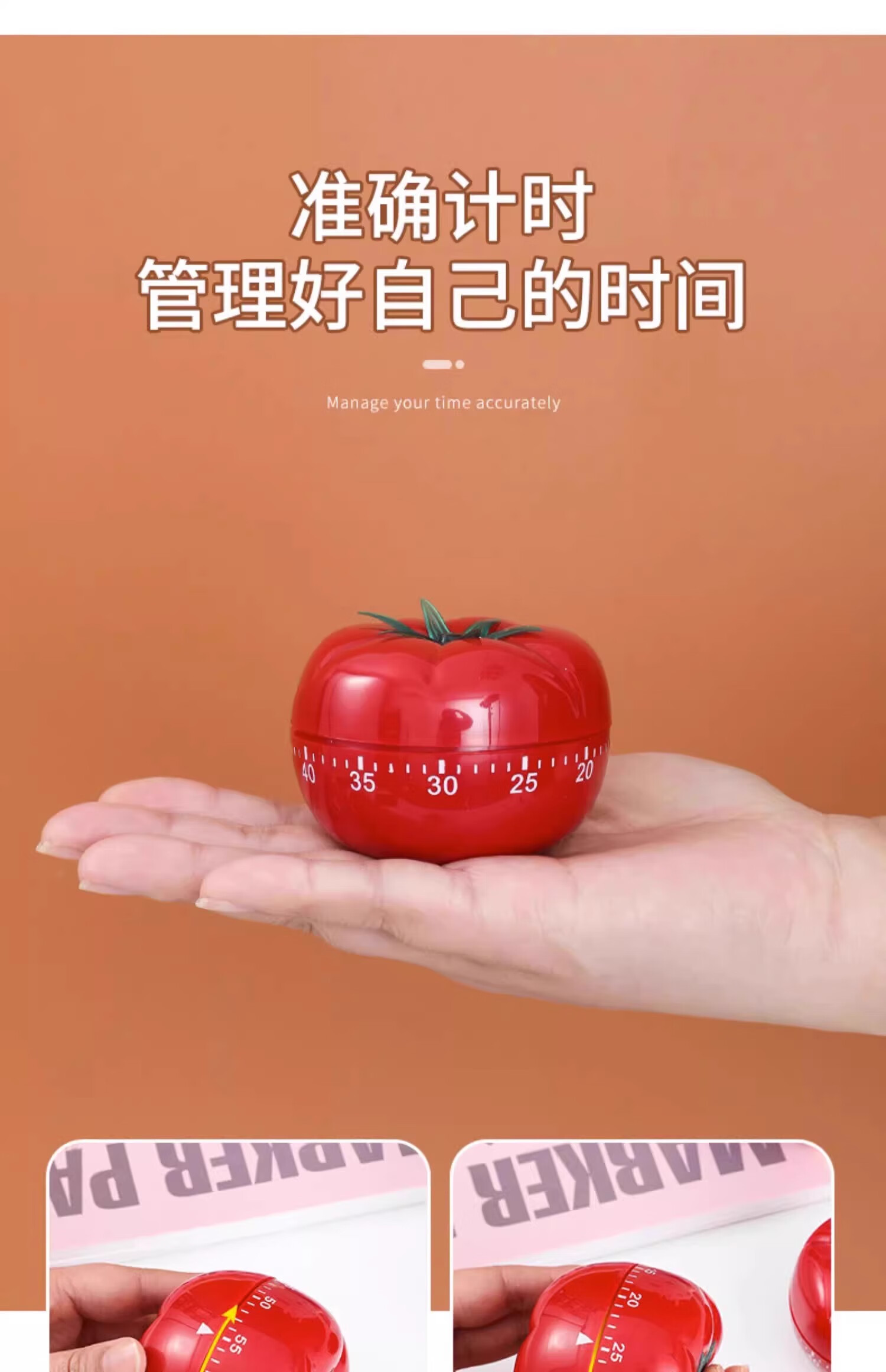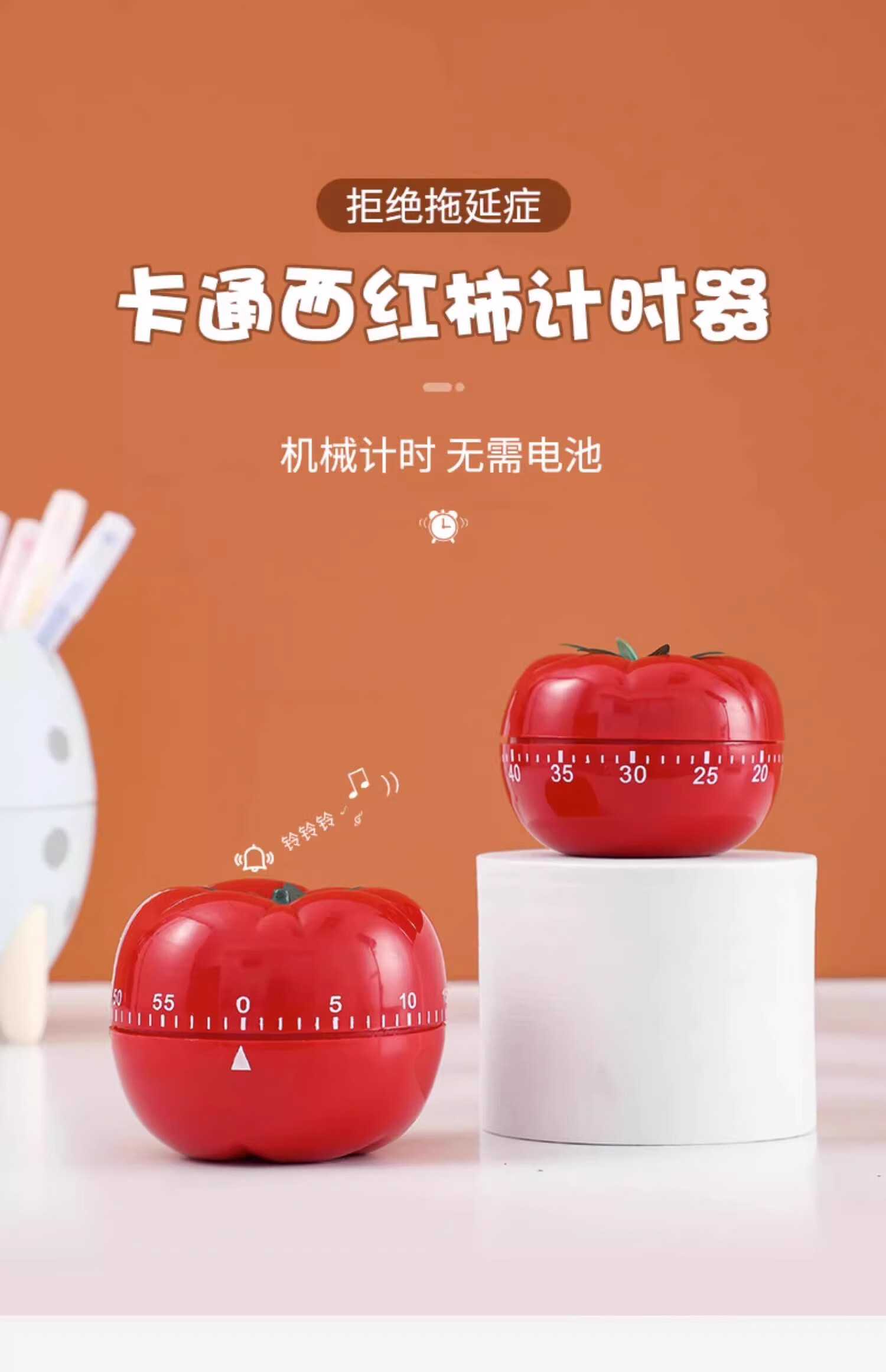 首力西红柿计时器学习闹钟小学生自律儿童专用定时厨房时间管理机械钟 【小号】西红柿计时器无需电池