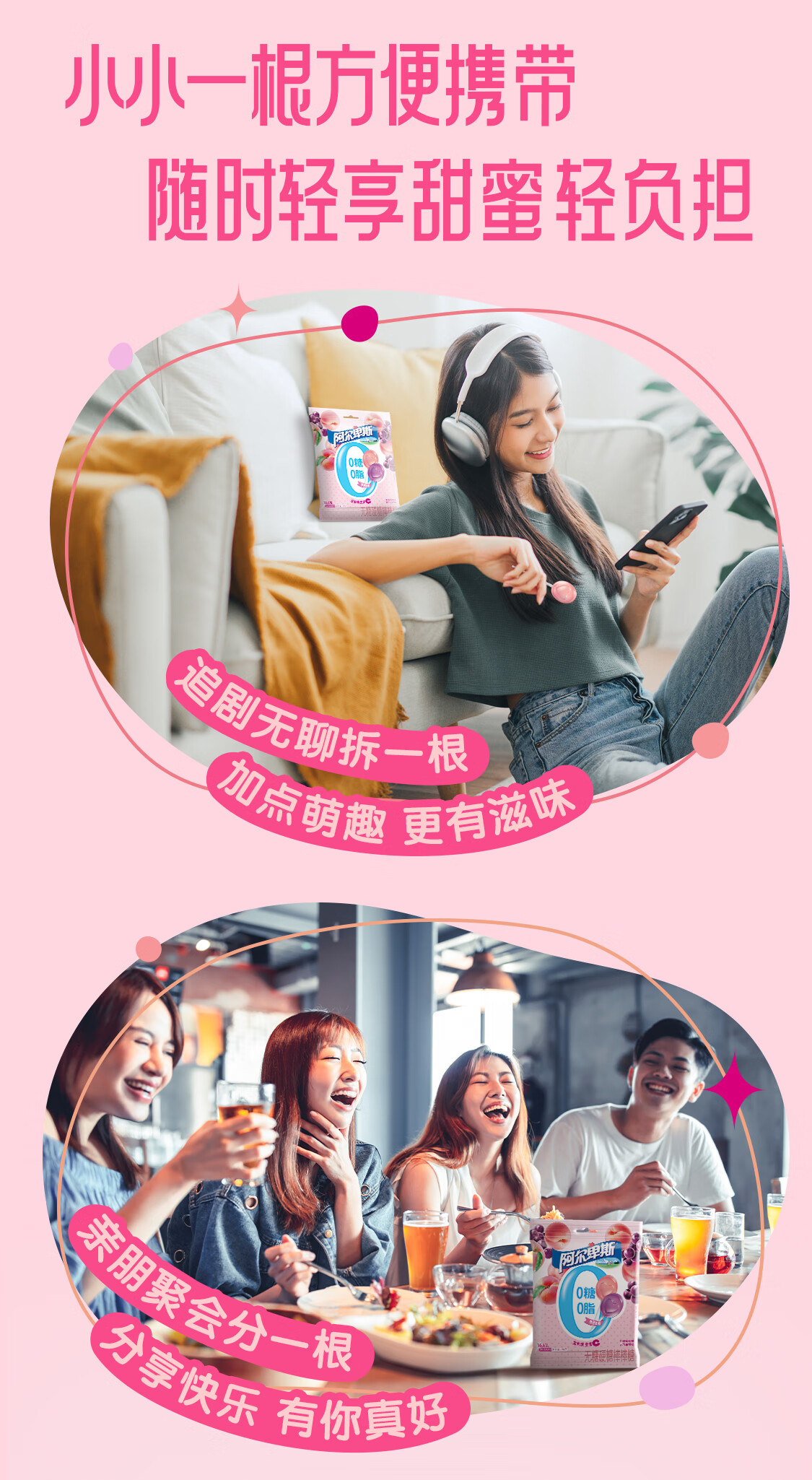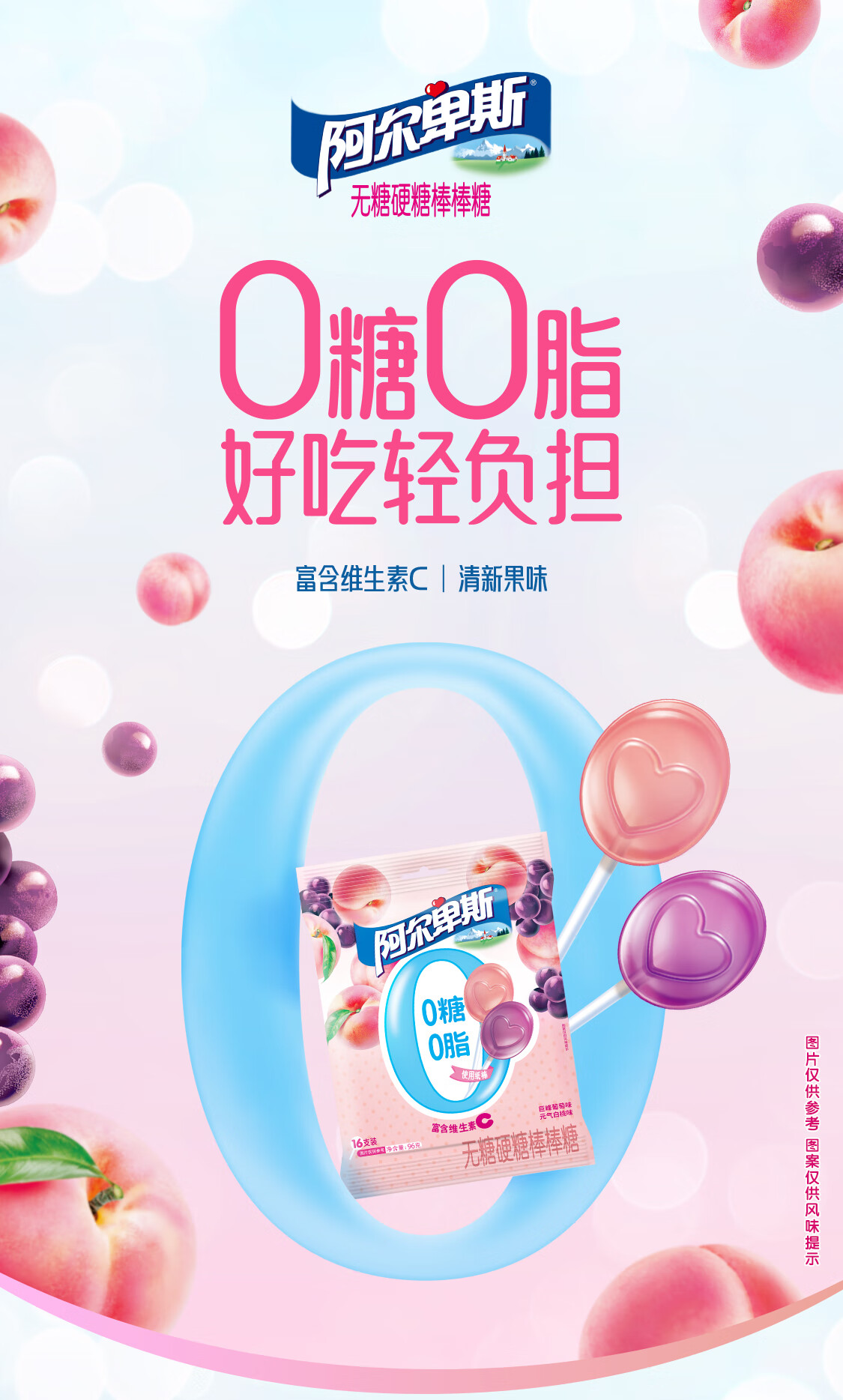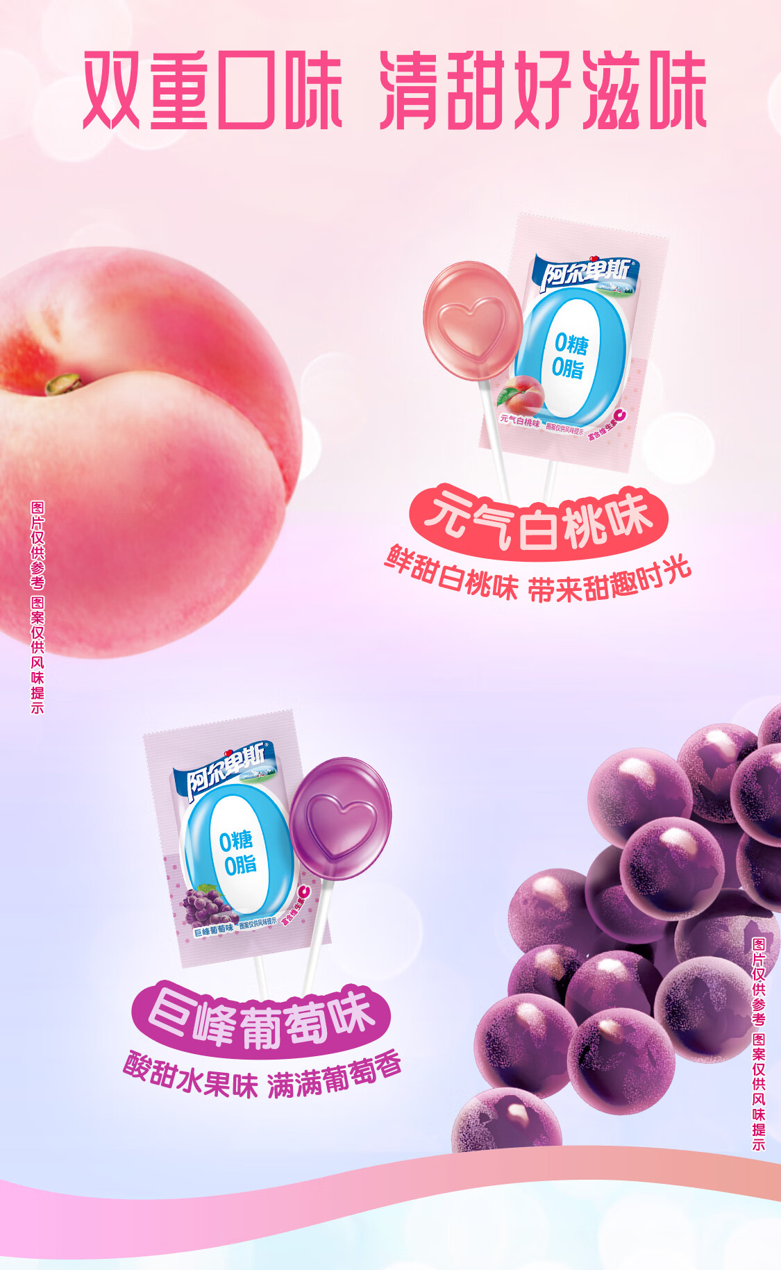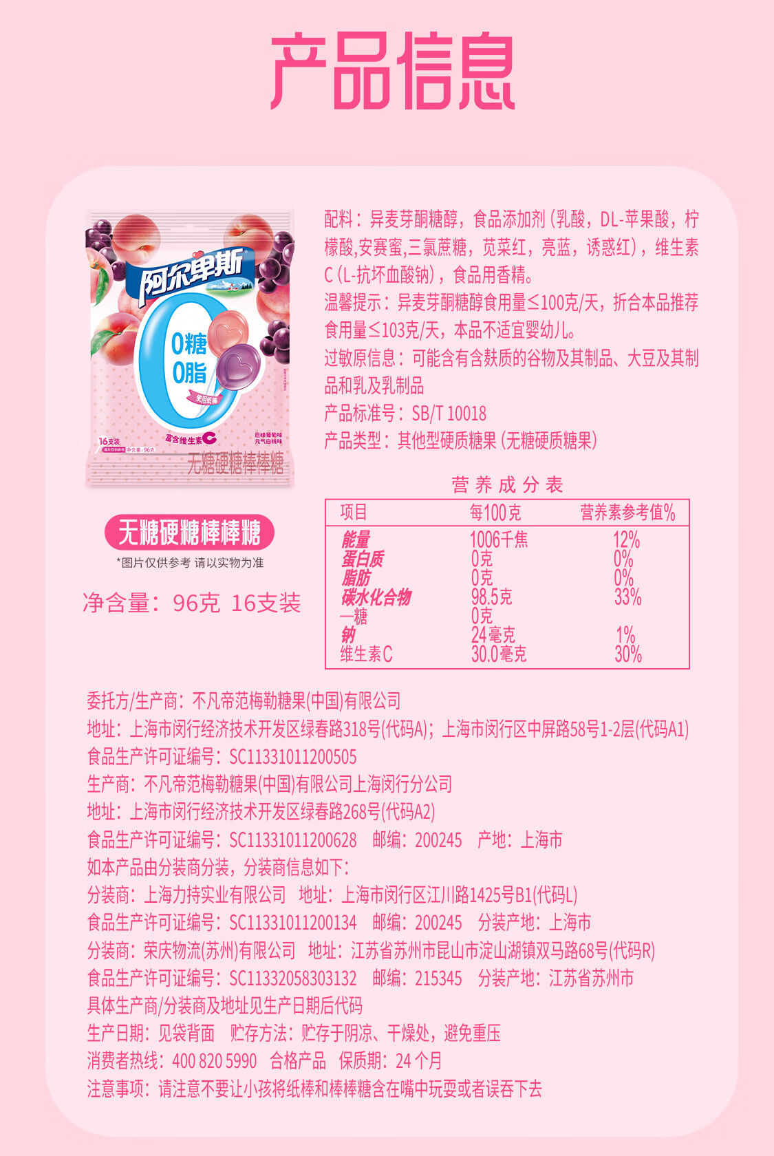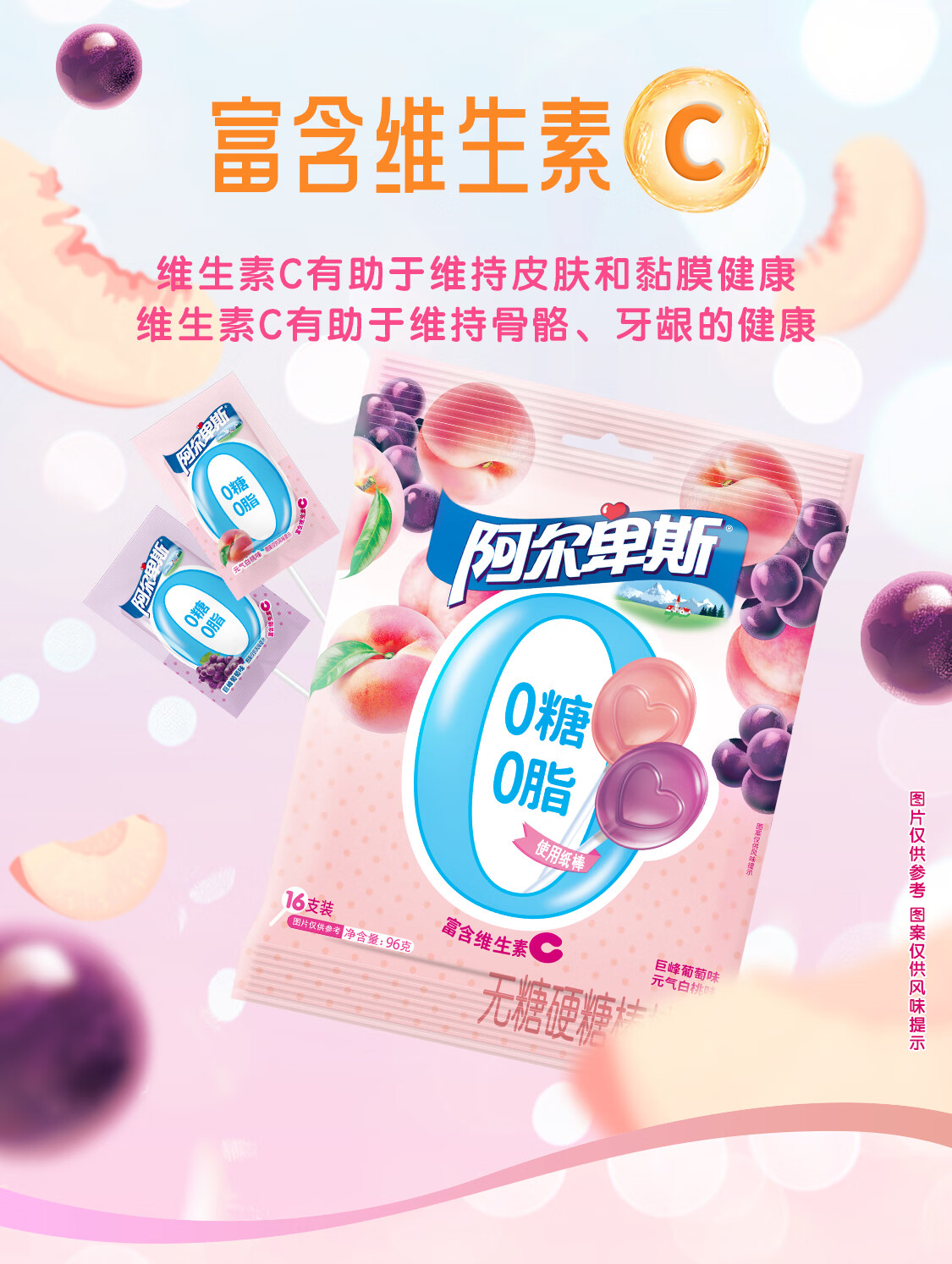 阿尔卑斯 白桃葡萄味无糖棒棒糖96g 16支 休闲零食儿童水果糖果开学礼物