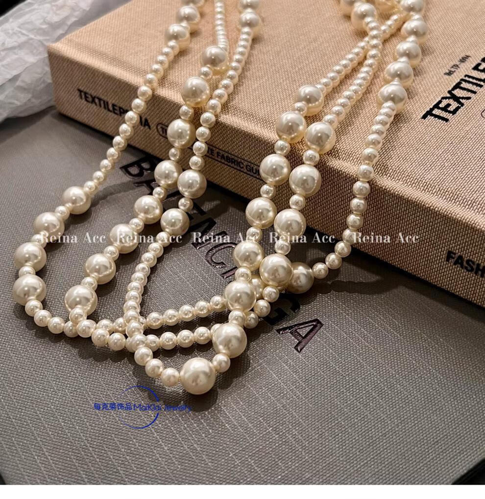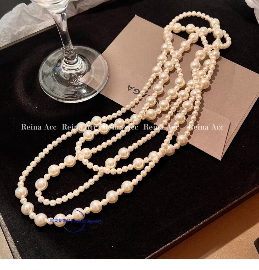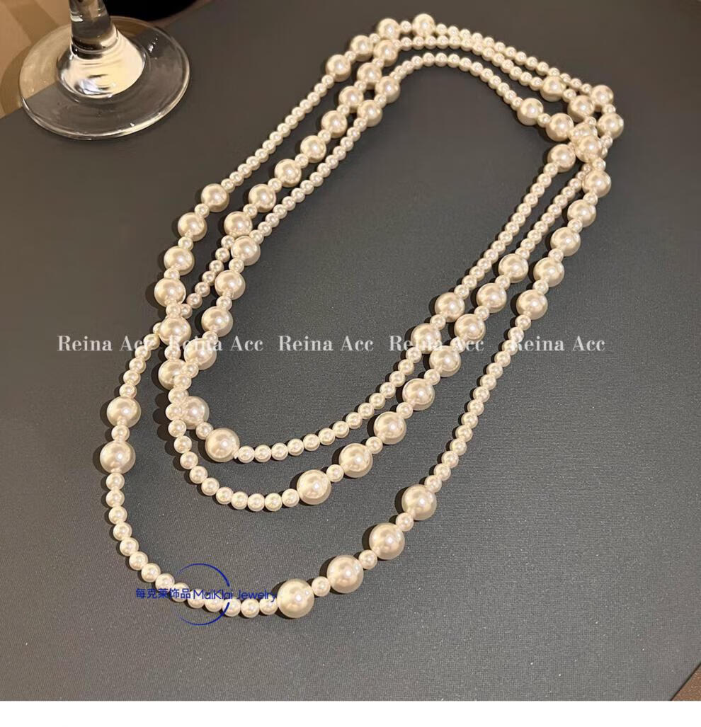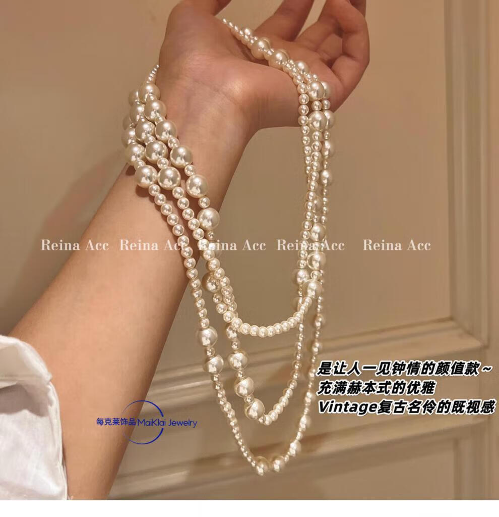 buhesyt 1998品质珍珠项链长款赫本风叠戴女毛衣链气质感轻奢小 珍珠长款项链(3层叠戴)