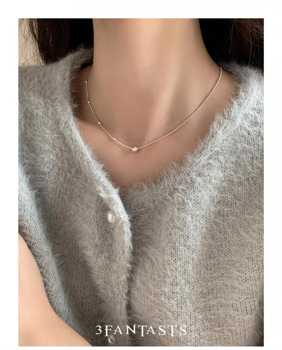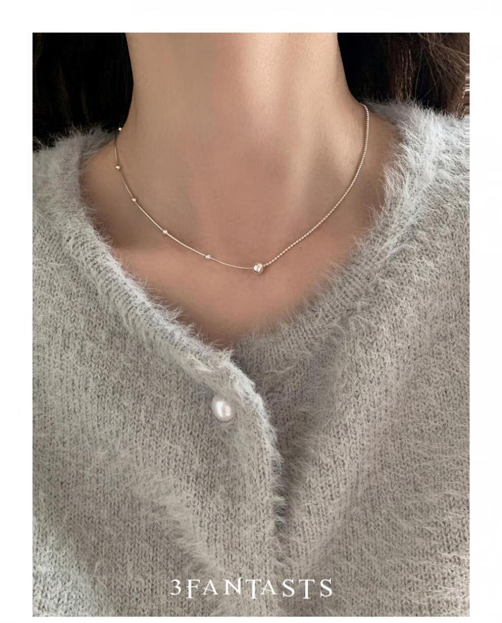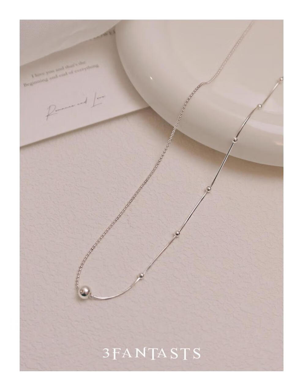 鸿颖s925纯银小银球蛇骨项链女款2024新款轻奢小众设计颈链锁骨链 小露珠项链【赠精美礼盒】