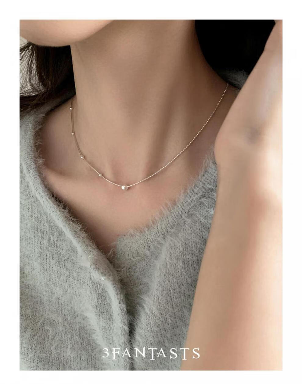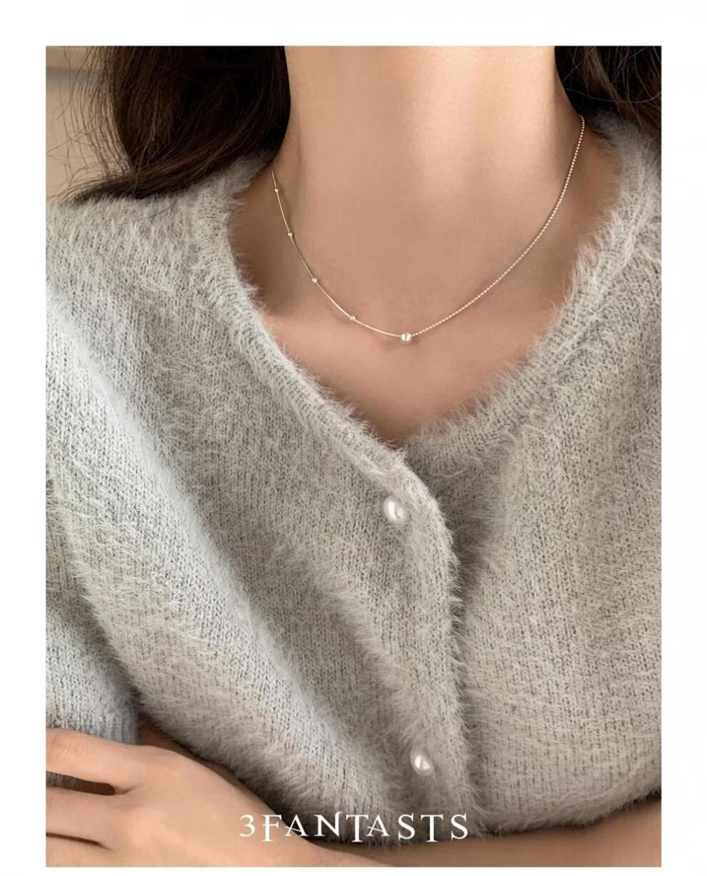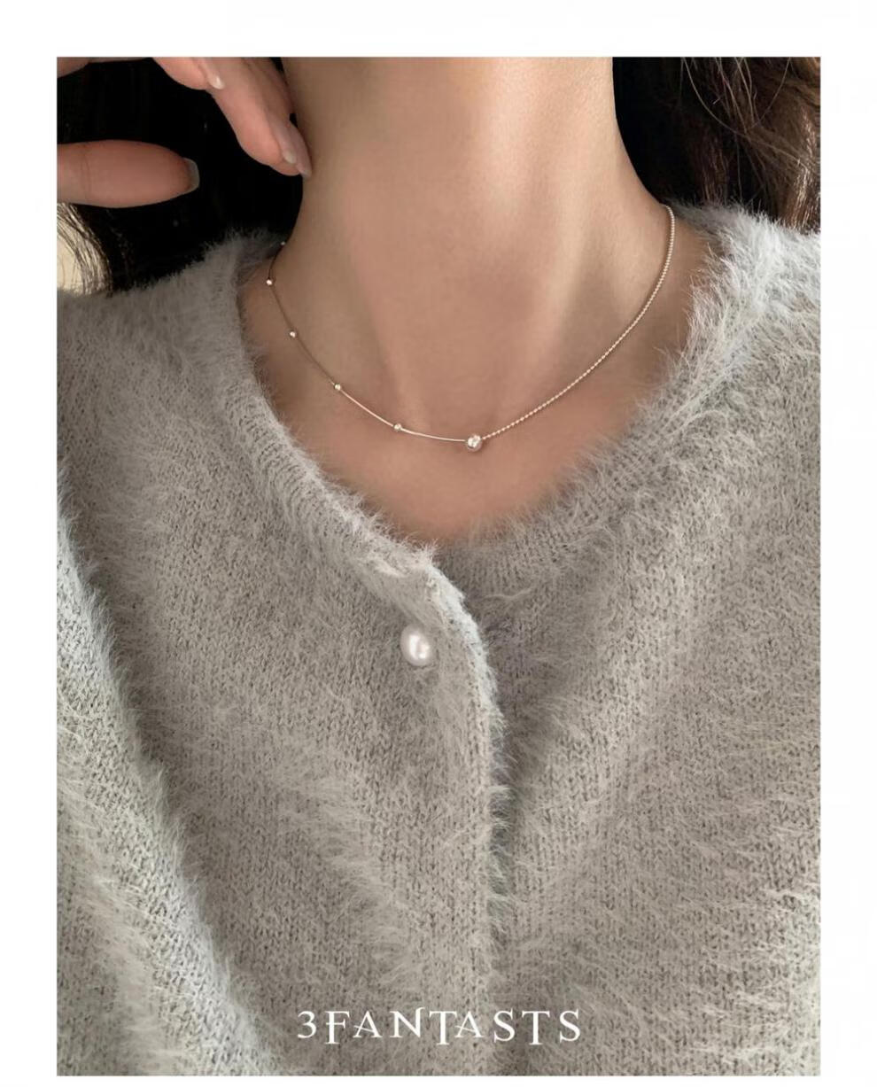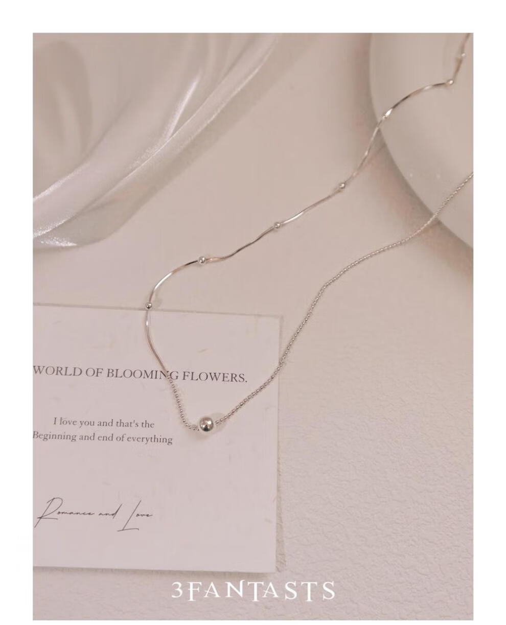 鸿颖s925纯银小银球蛇骨项链女款2024新款轻奢小众设计颈链锁骨链 小露珠项链【赠精美礼盒】