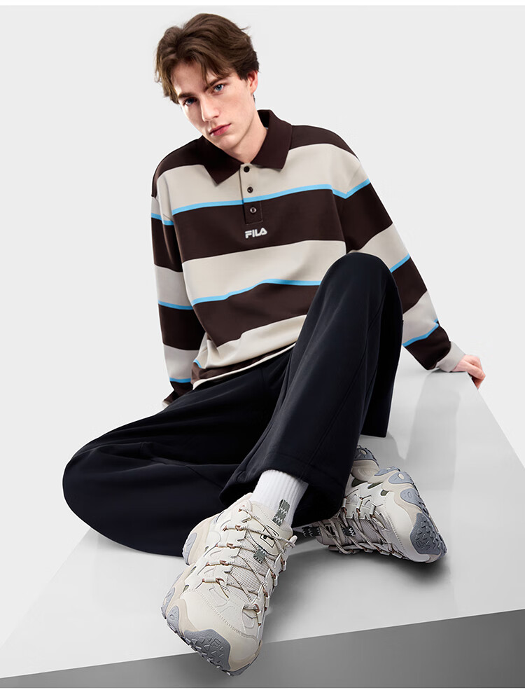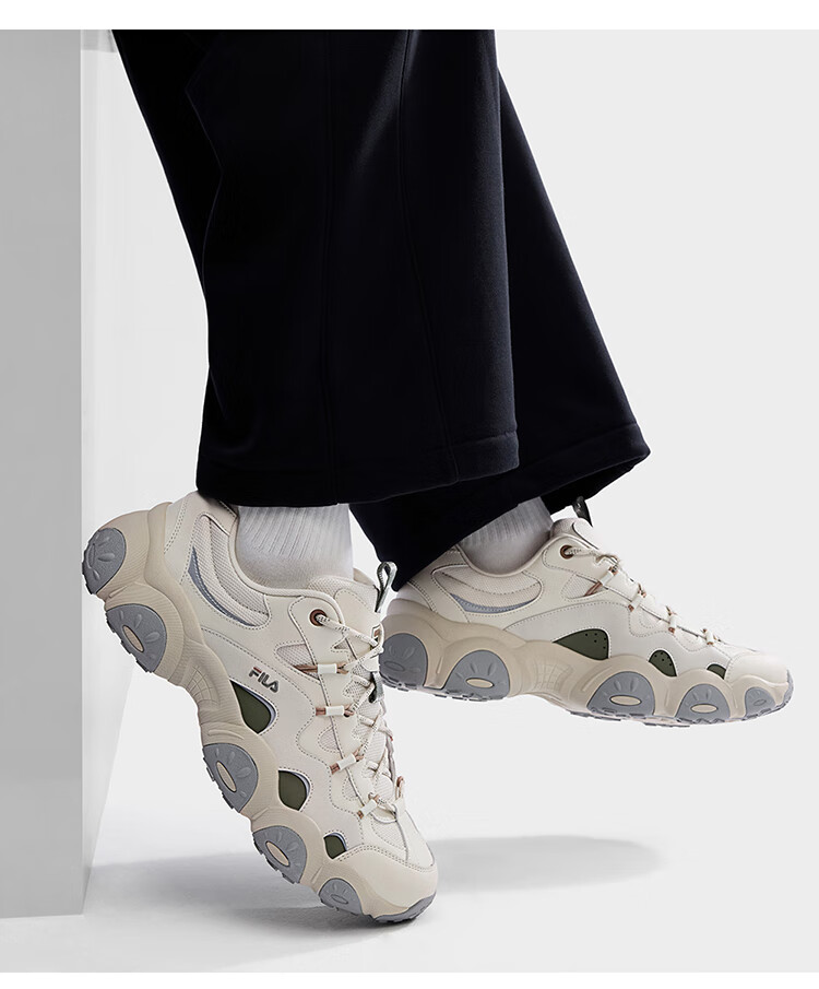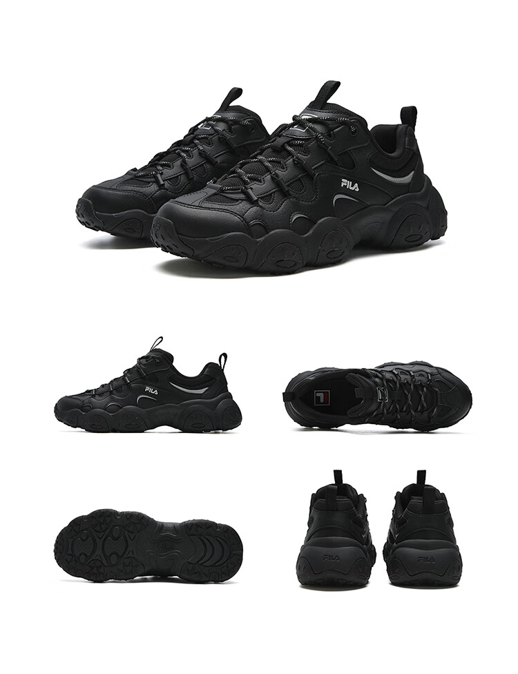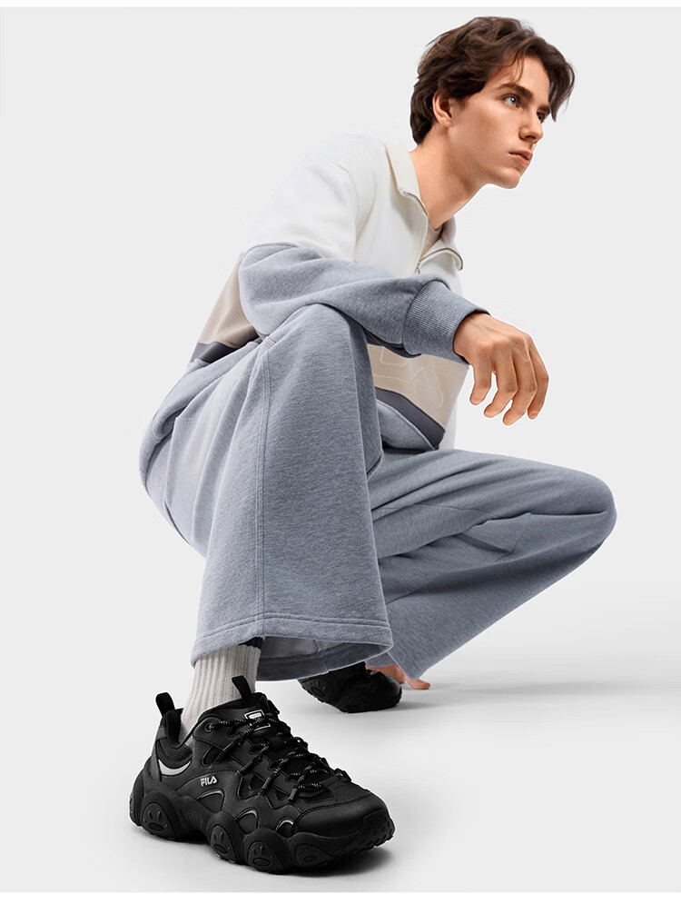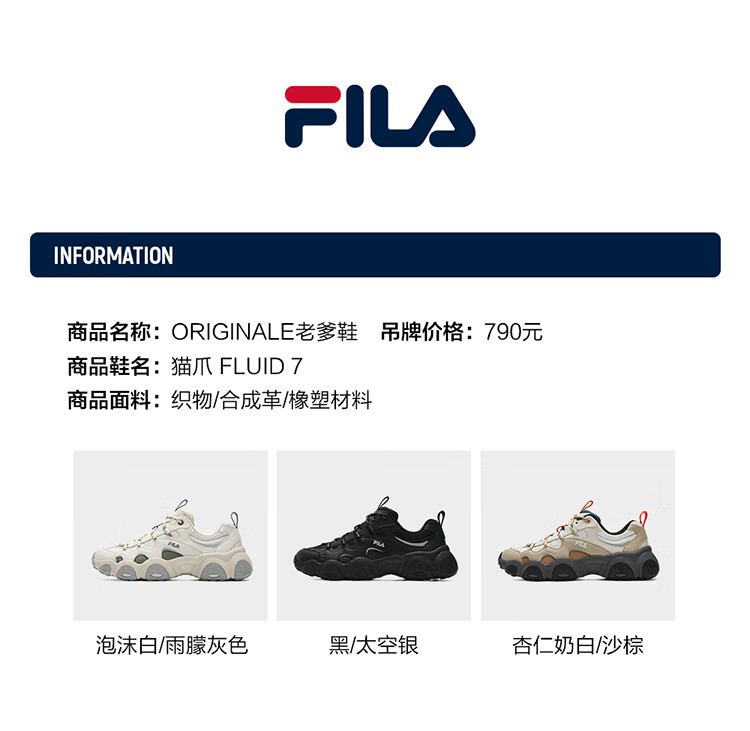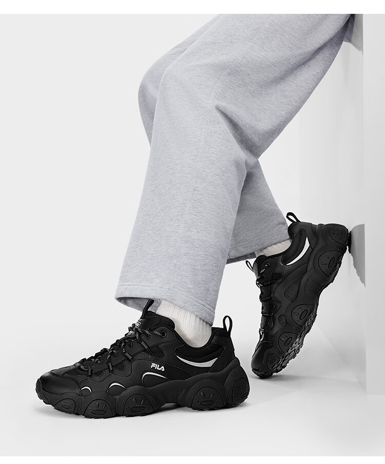 FILA 斐乐官方男鞋FLUID 7老爹鞋2026春季新款猫爪7代休闲鞋运动鞋 黑/太空银-BS 42