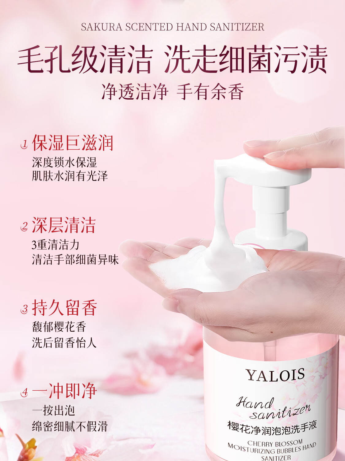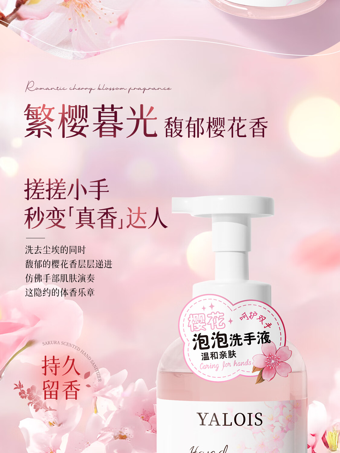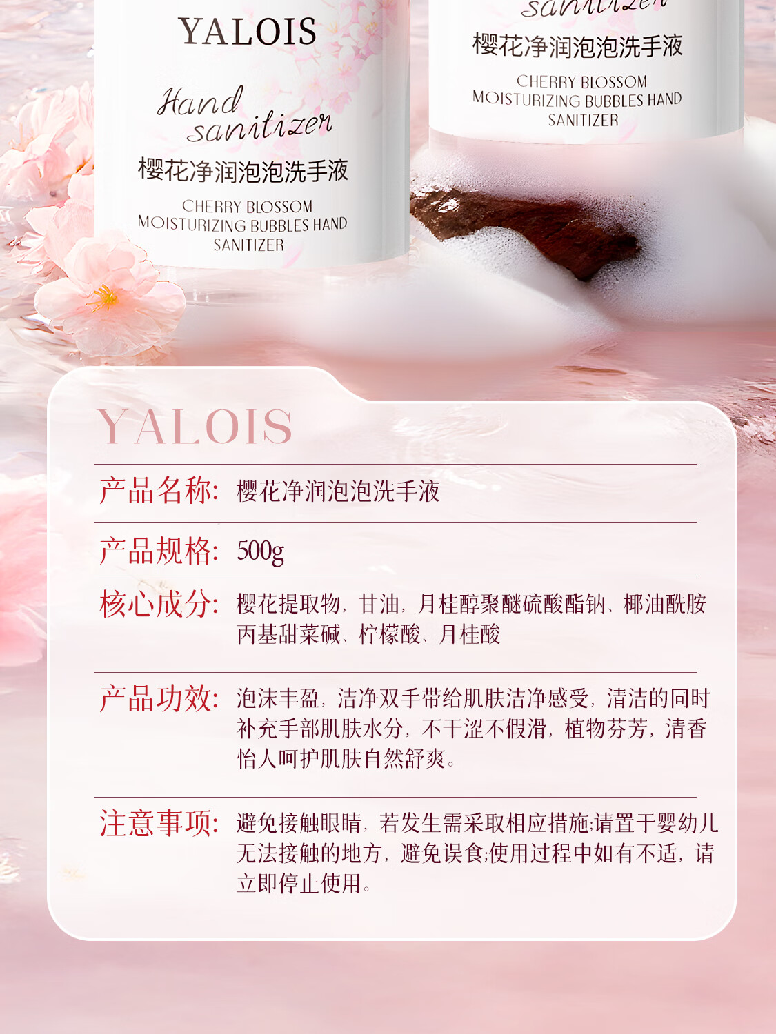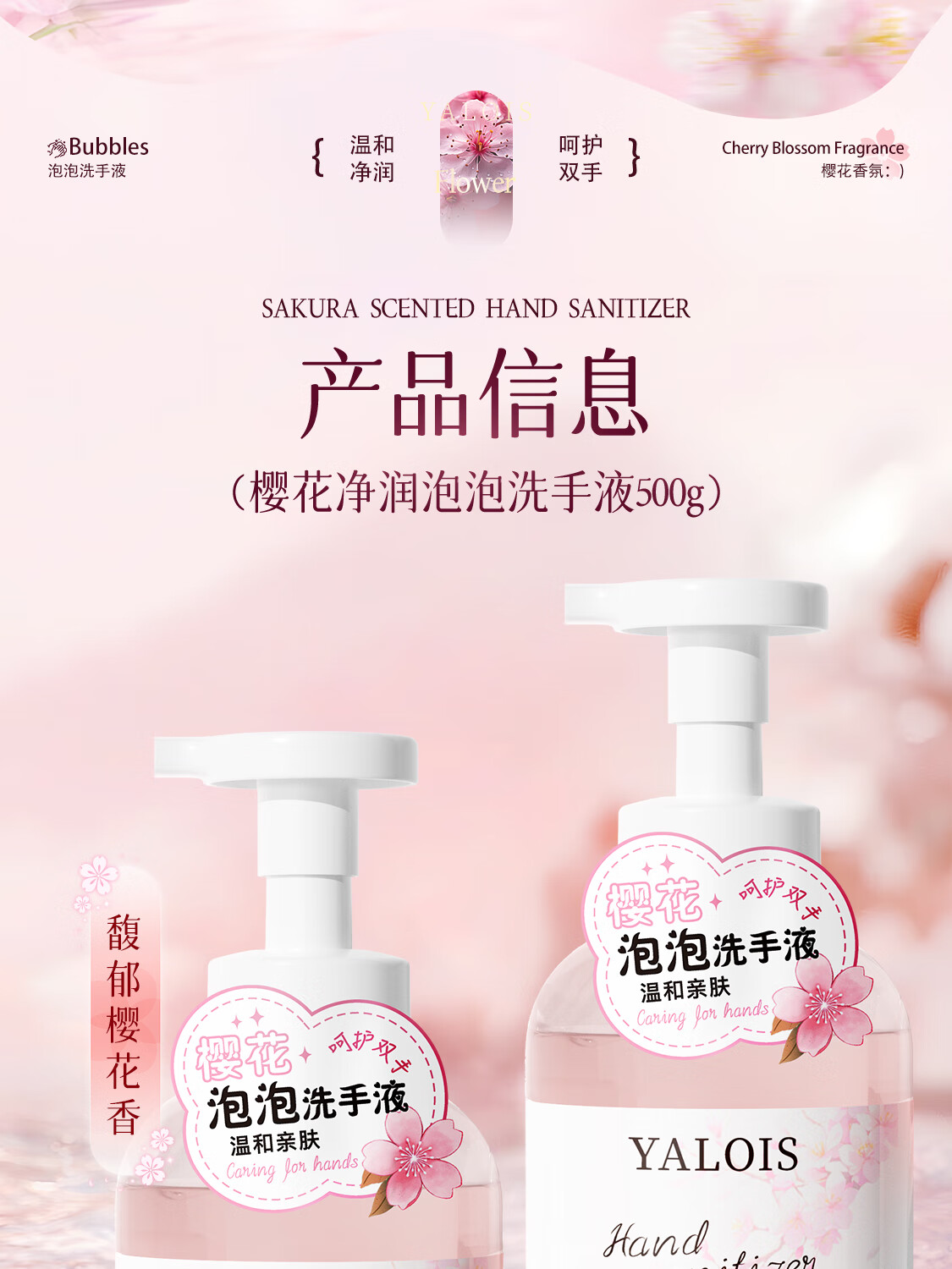 娅洛思樱花净润泡泡洗手液500ml抑菌杀菌儿童泡沫型洗手液便携补充装