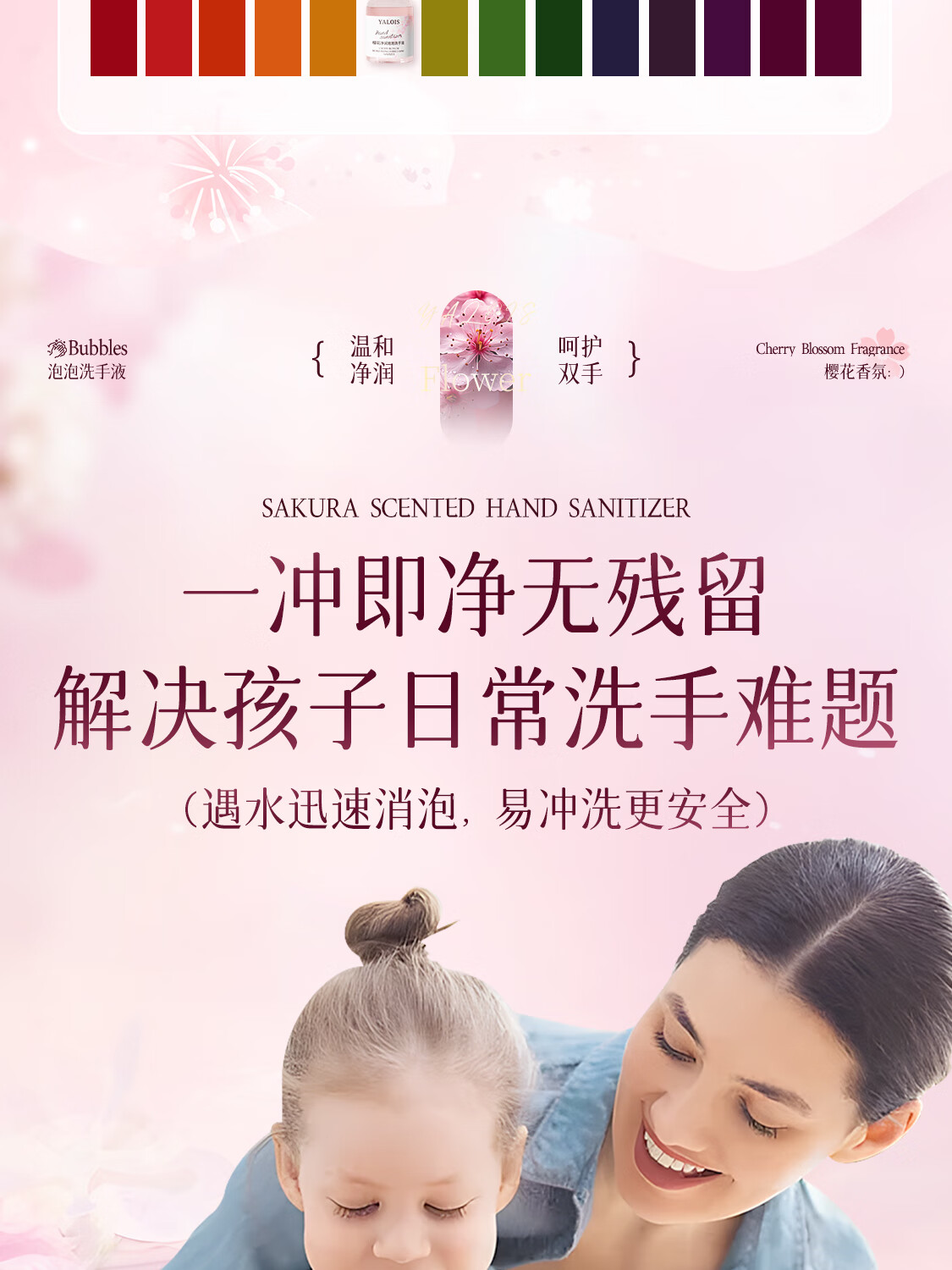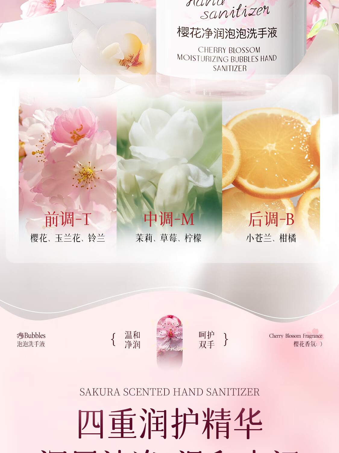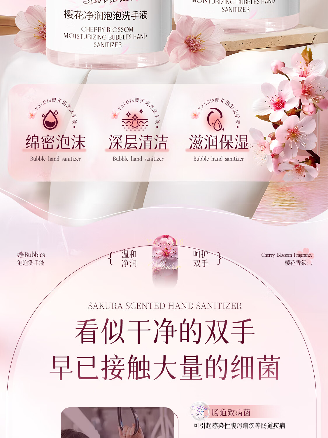 娅洛思樱花净润泡泡洗手液500ml抑菌杀菌儿童泡沫型洗手液便携补充装