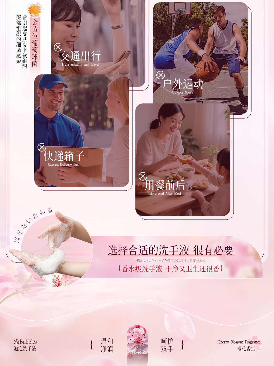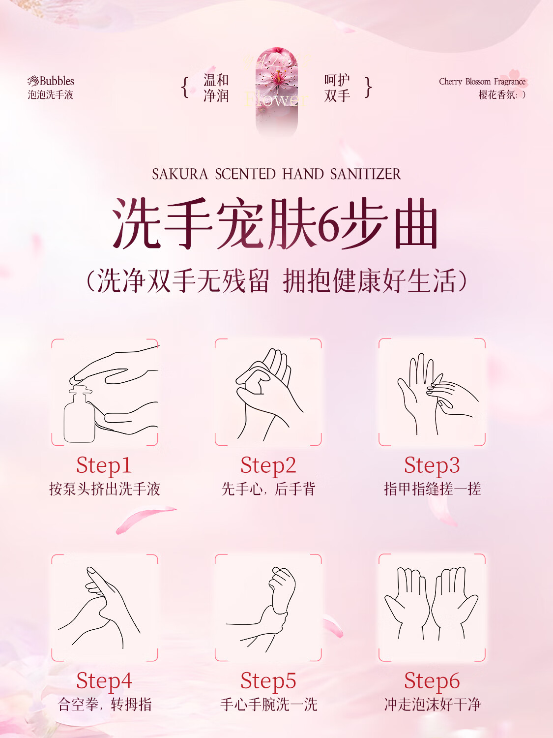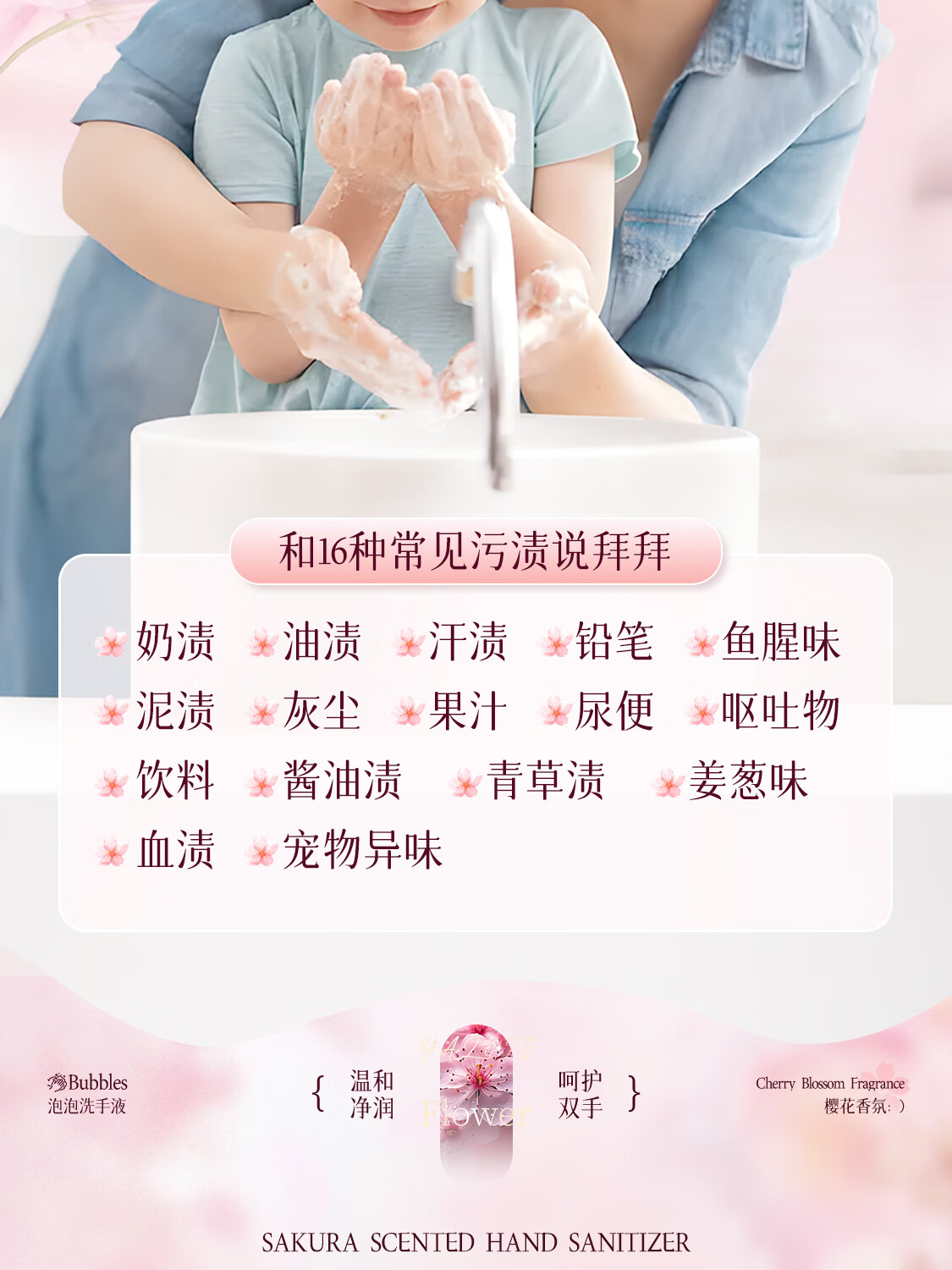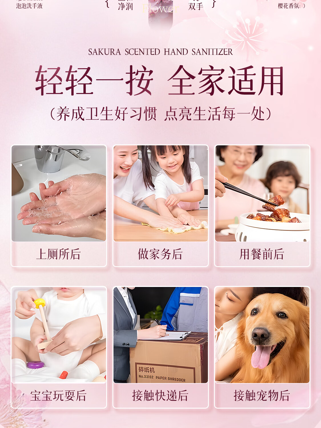 娅洛思樱花净润泡泡洗手液500ml抑菌杀菌儿童泡沫型洗手液便携补充装