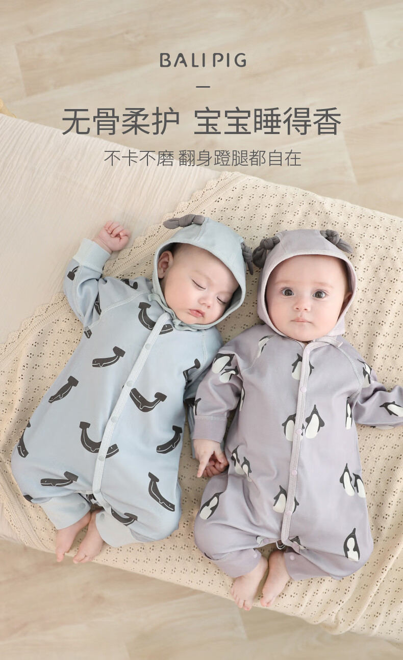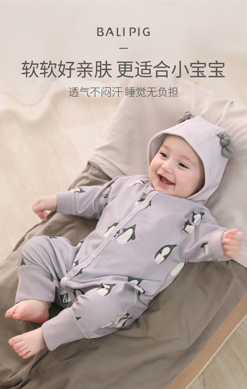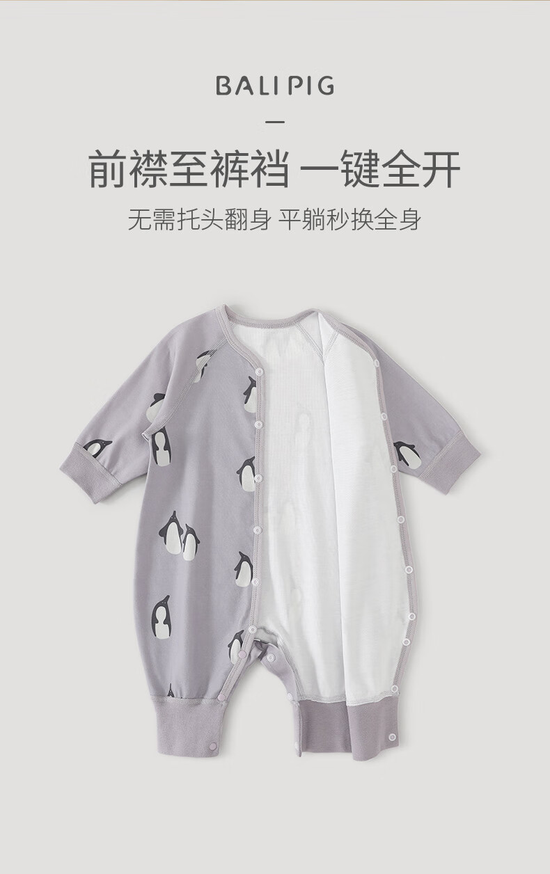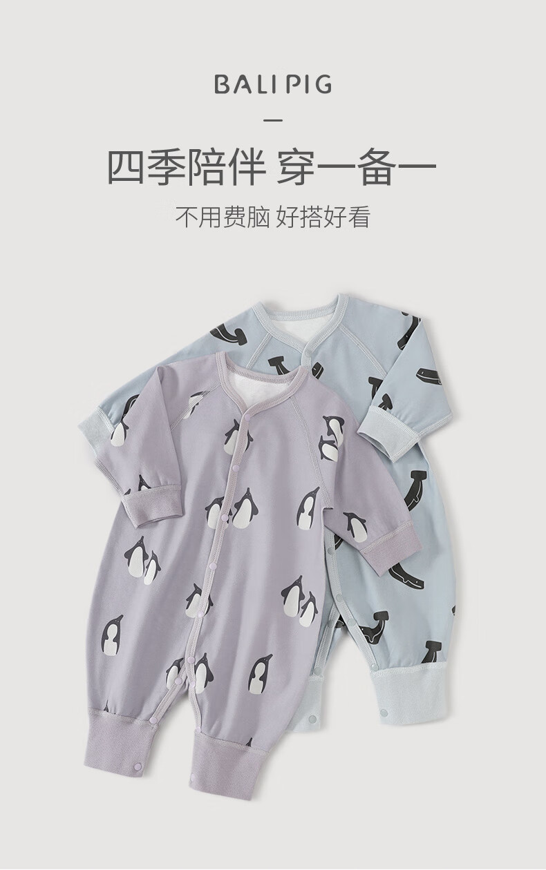 巴厘小猪婴儿衣服春秋a类纯棉初生儿哈衣爬爬服秋季宝宝睡衣新生儿连体衣 企鹅茄子 80cm