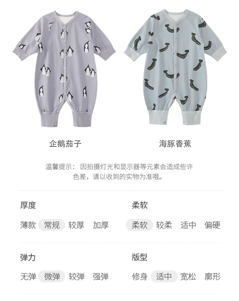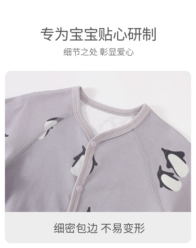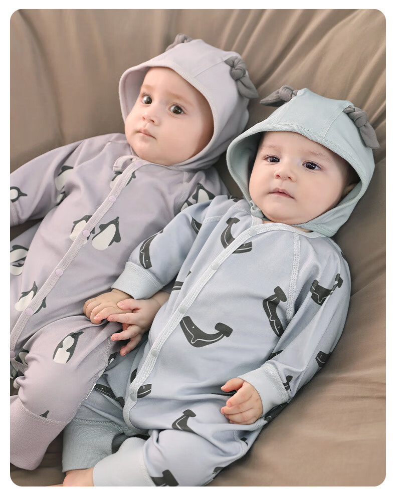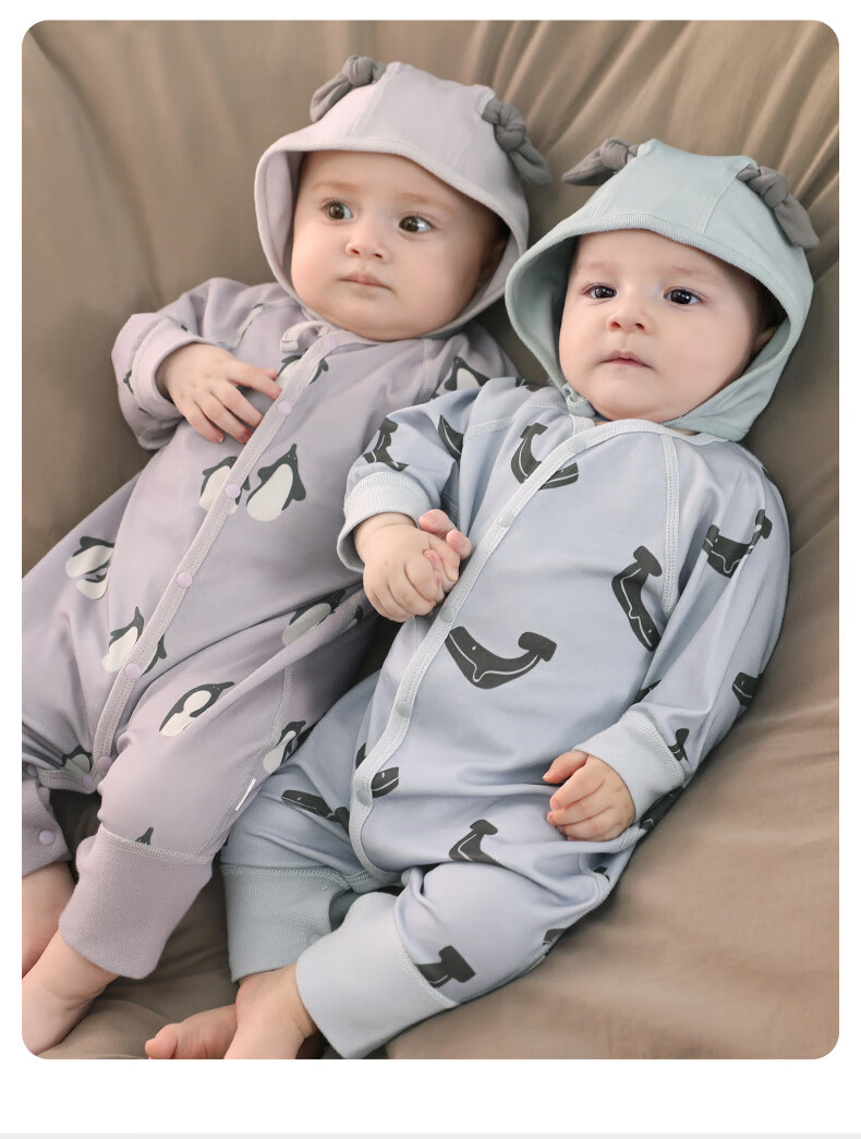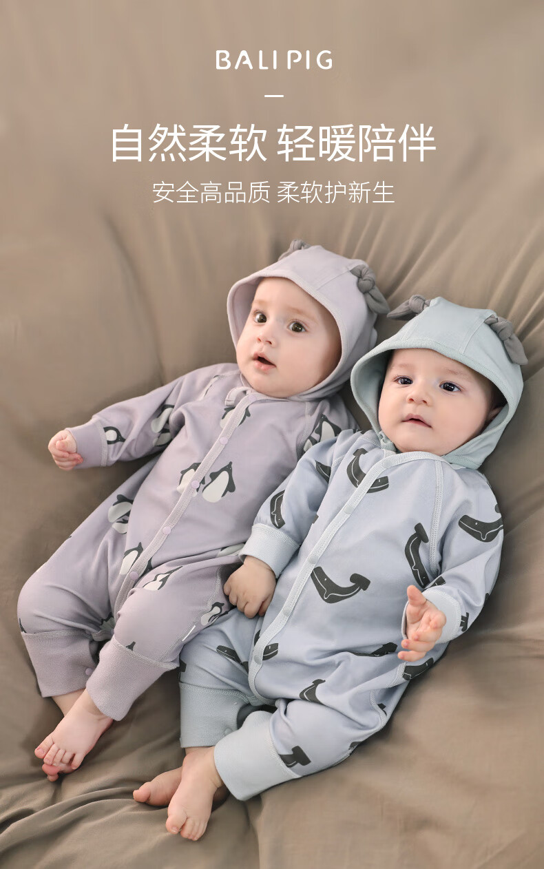 巴厘小猪婴儿衣服春秋a类纯棉初生儿哈衣爬爬服秋季宝宝睡衣新生儿连体衣 企鹅茄子 80cm