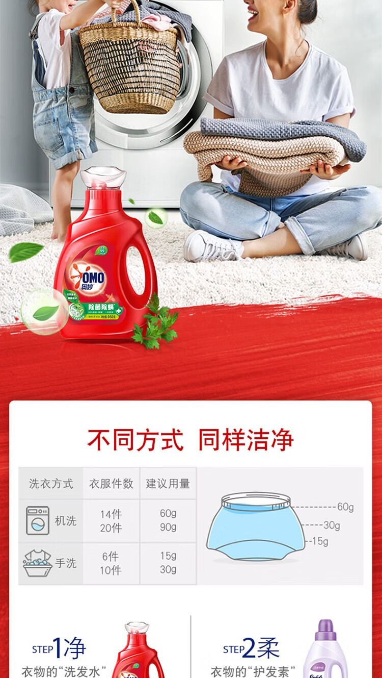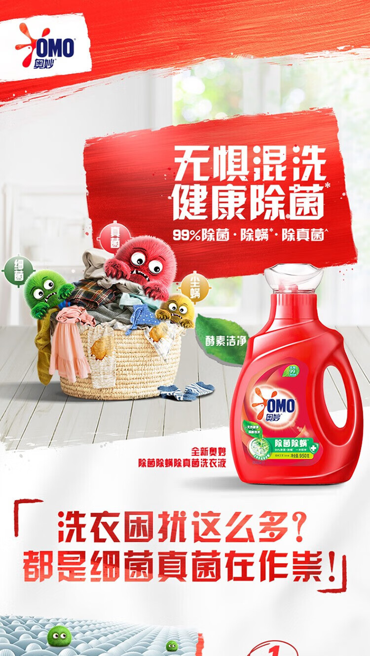 奥妙(OMO)除菌除螨洗衣液天然酵素去污洁净长效抑菌易漂洗家用实惠装 【除菌除螨】洗衣液950g