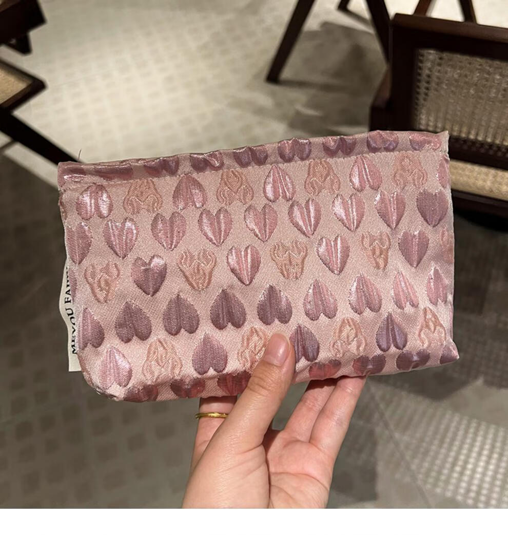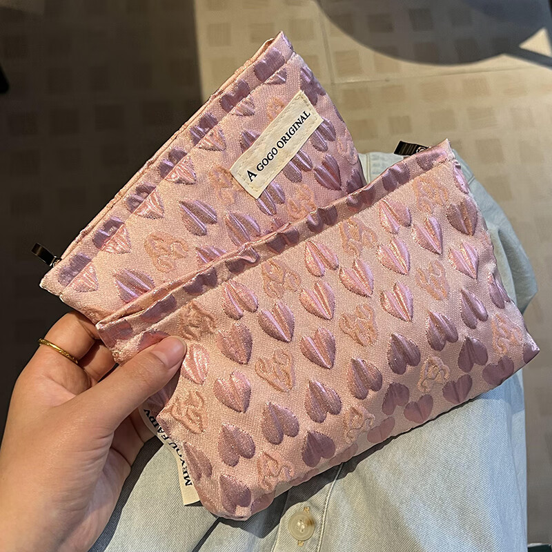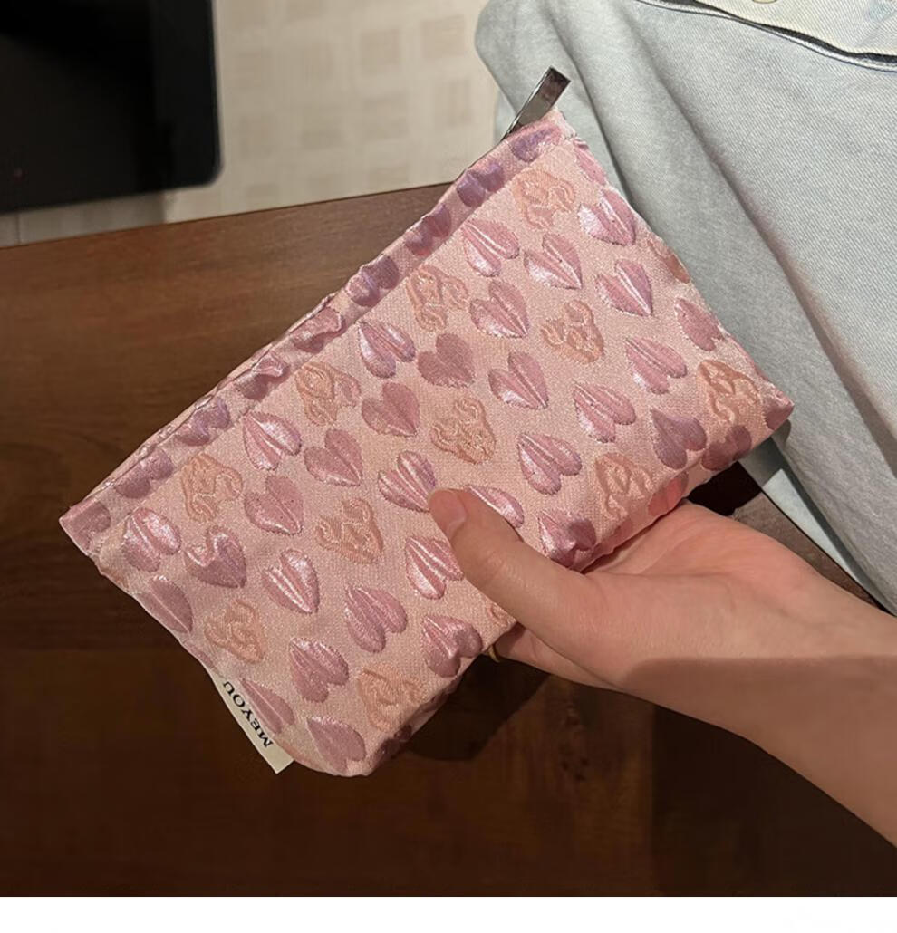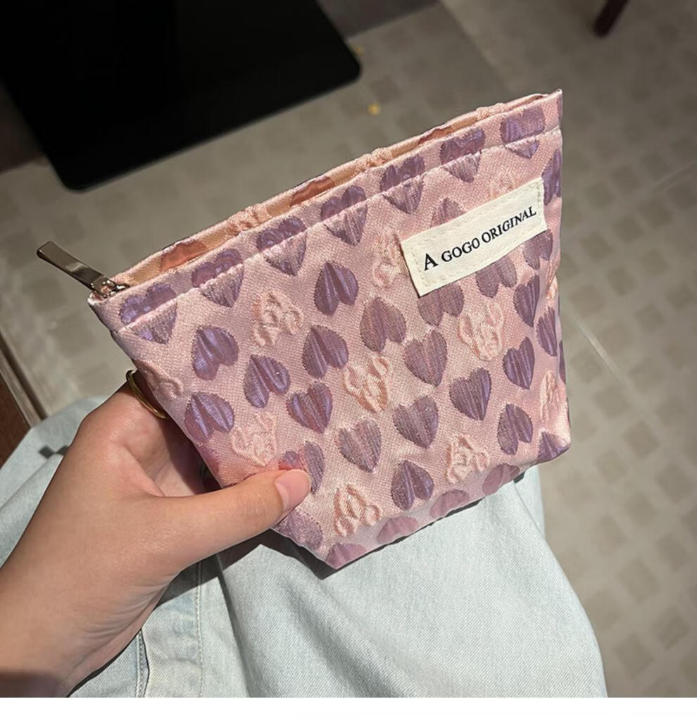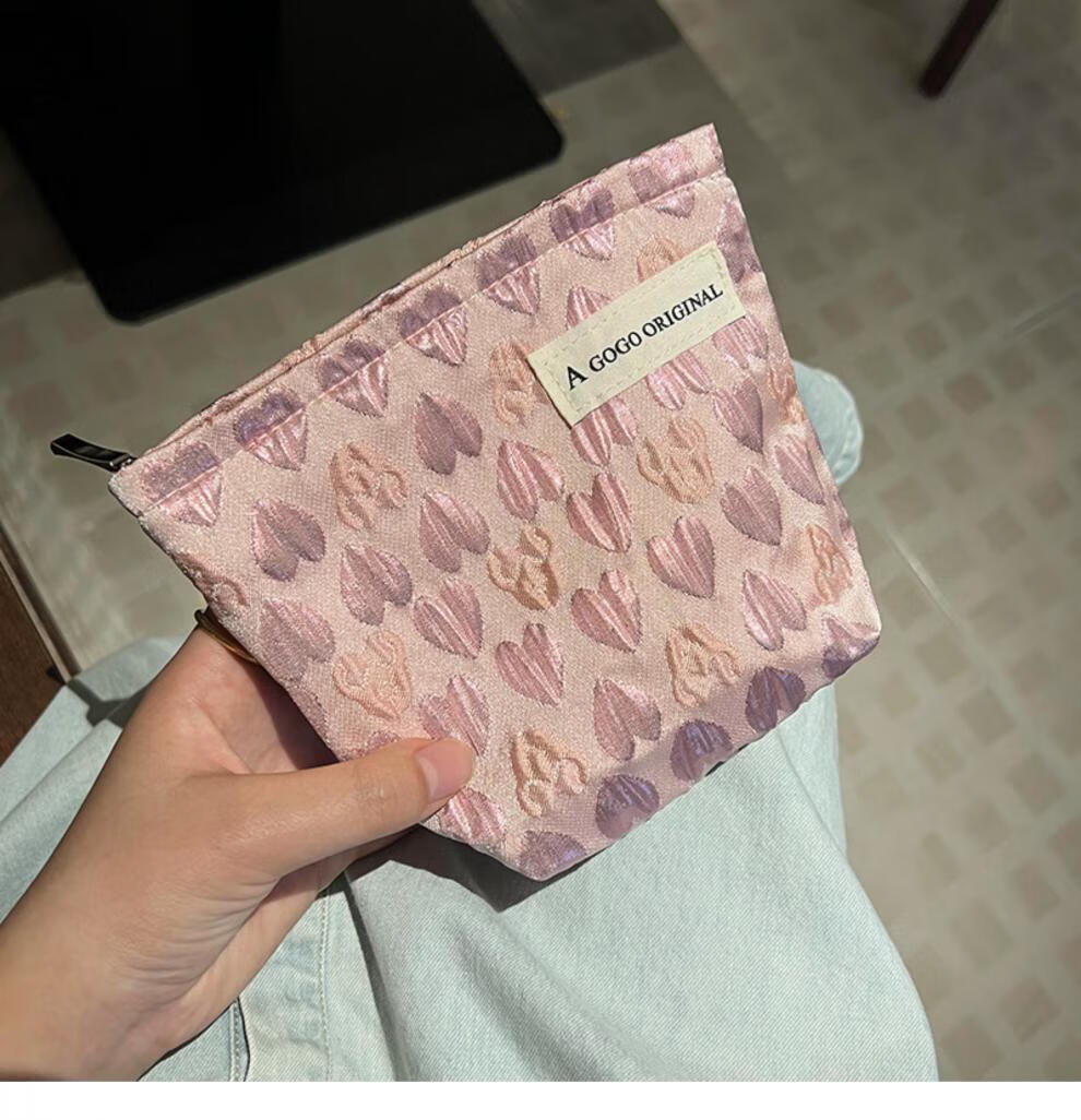 OIMGins小众甜美立体爱心小号化妆包便携补妆小包收纳袋内胆包口红包 方形.黑色爱心