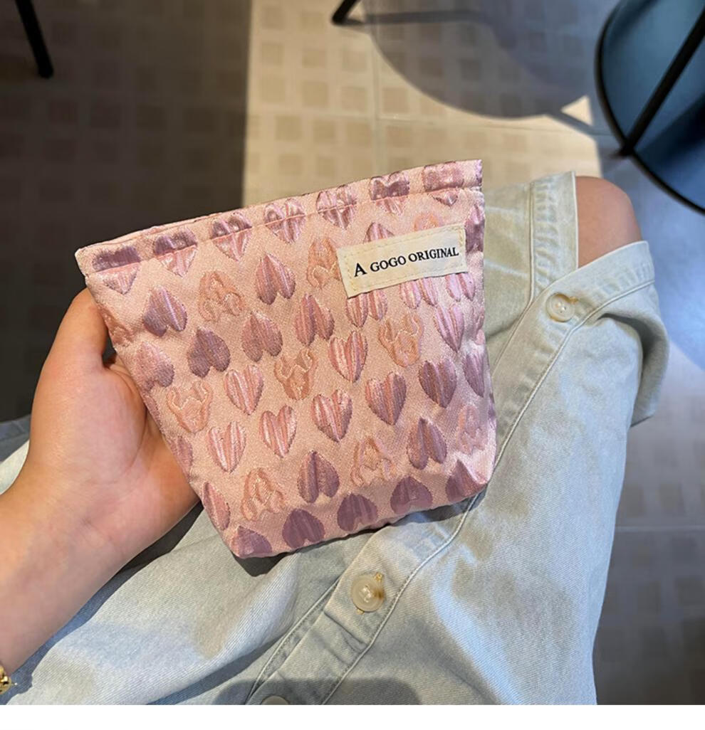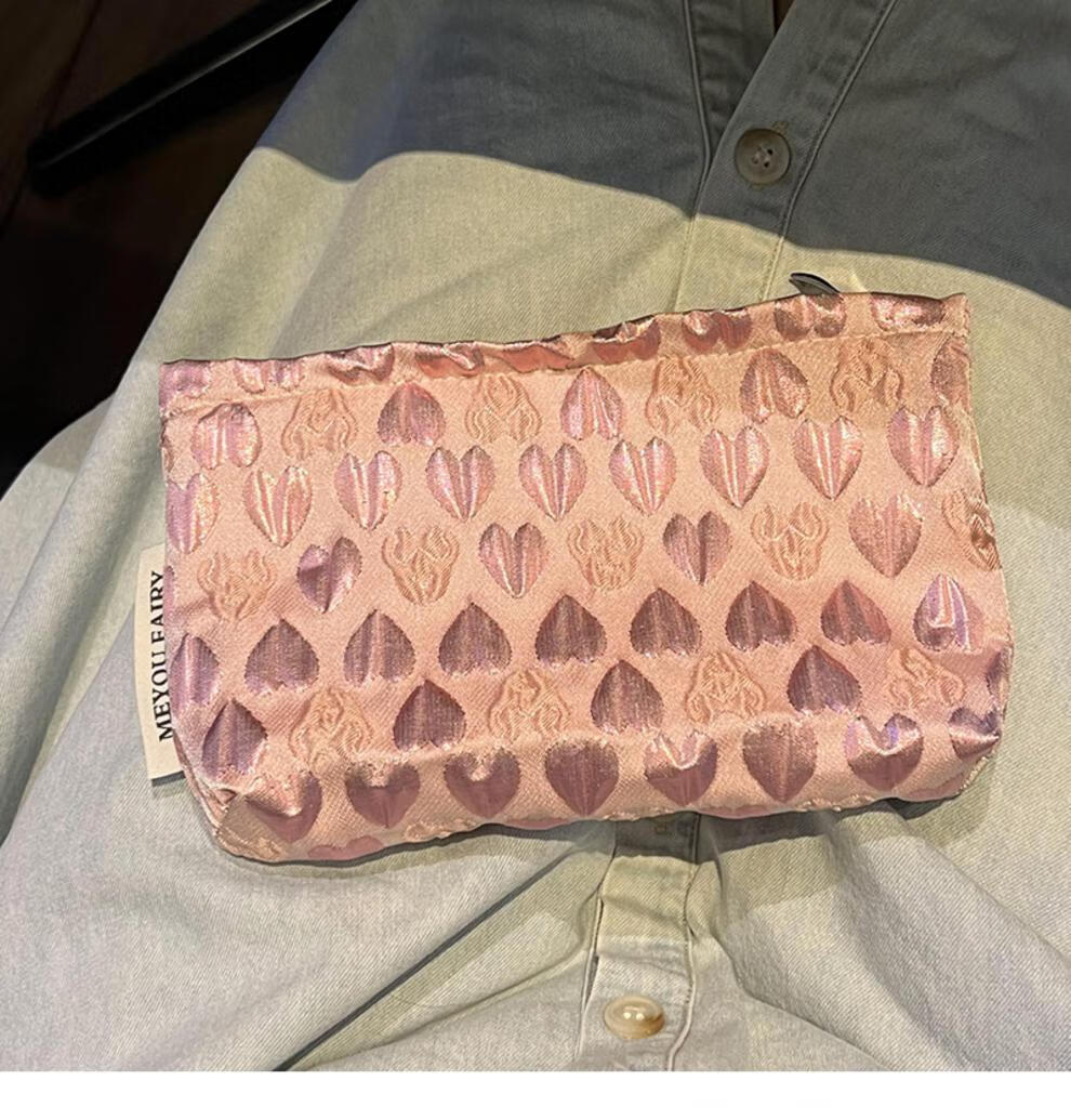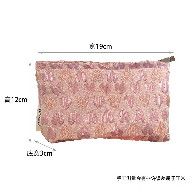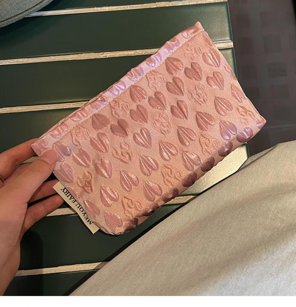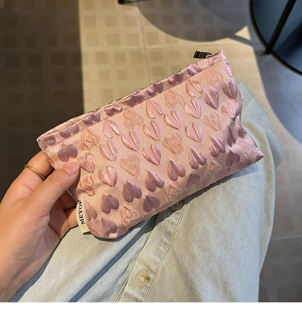 OIMGins小众甜美立体爱心小号化妆包便携补妆小包收纳袋内胆包口红包 方形.黑色爱心