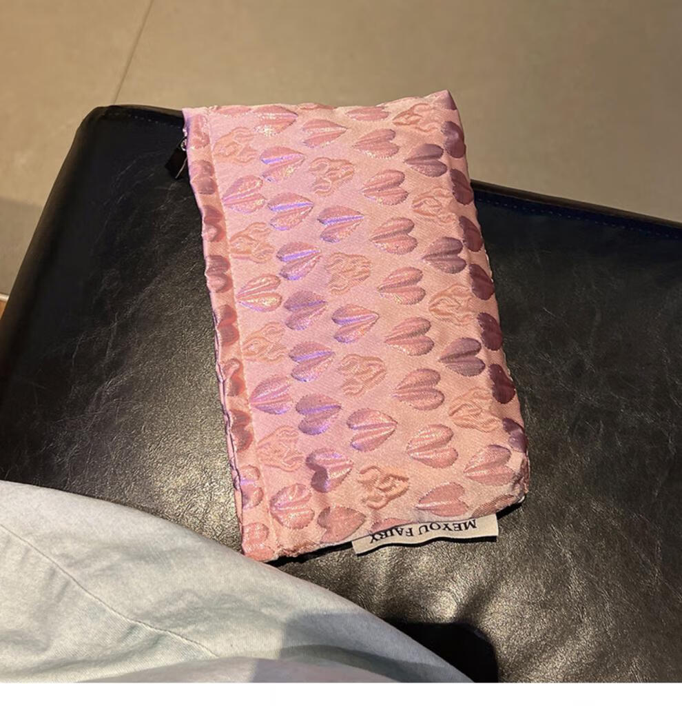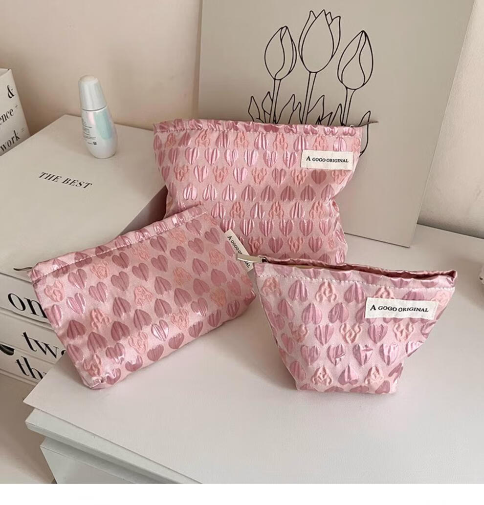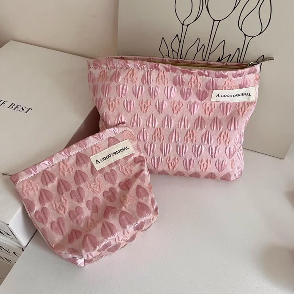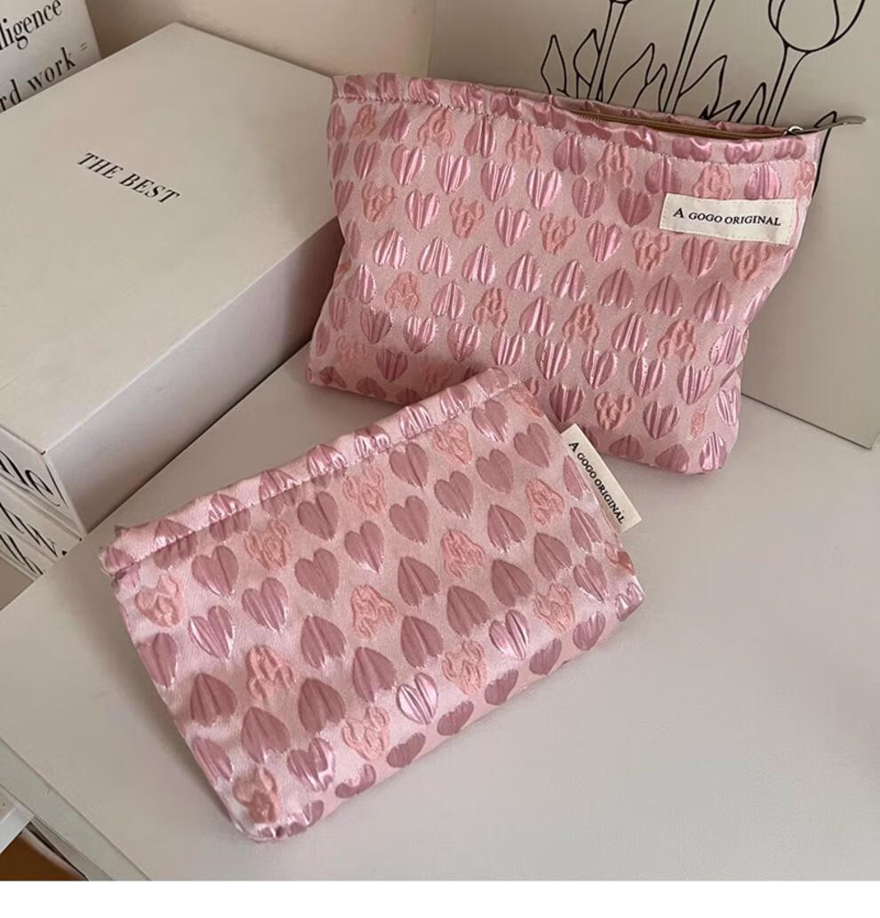 OIMGins小众甜美立体爱心小号化妆包便携补妆小包收纳袋内胆包口红包 方形.黑色爱心